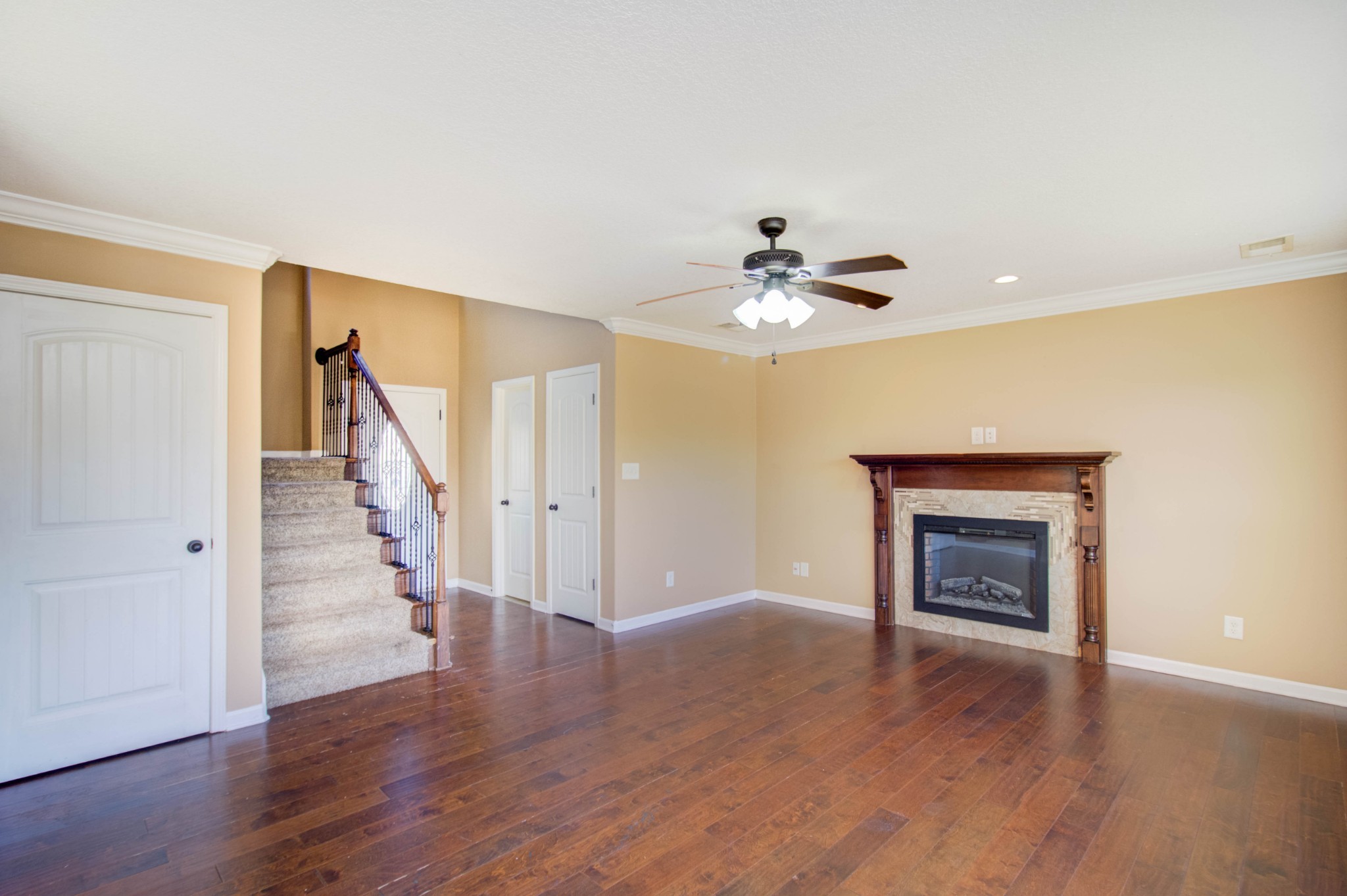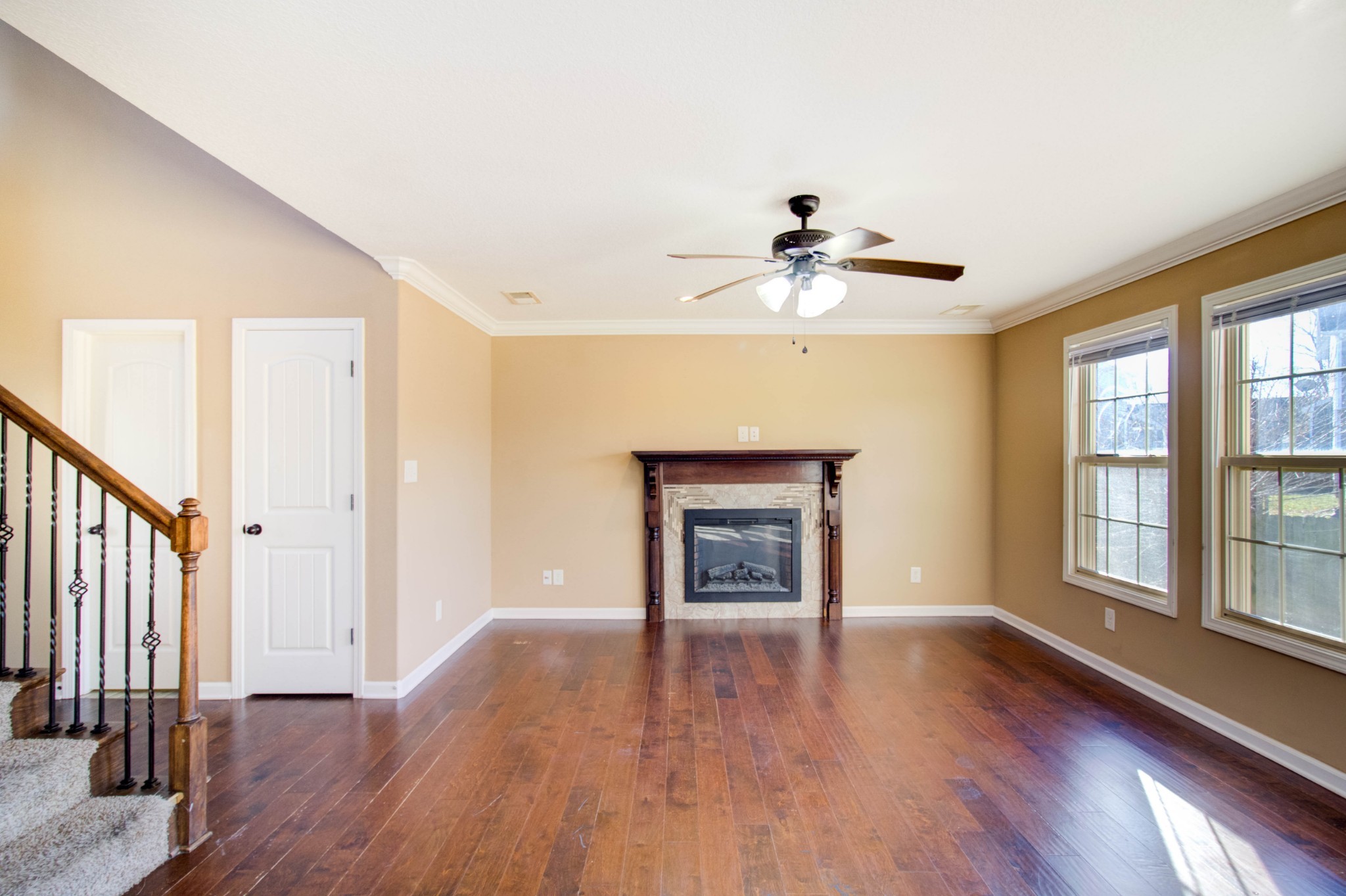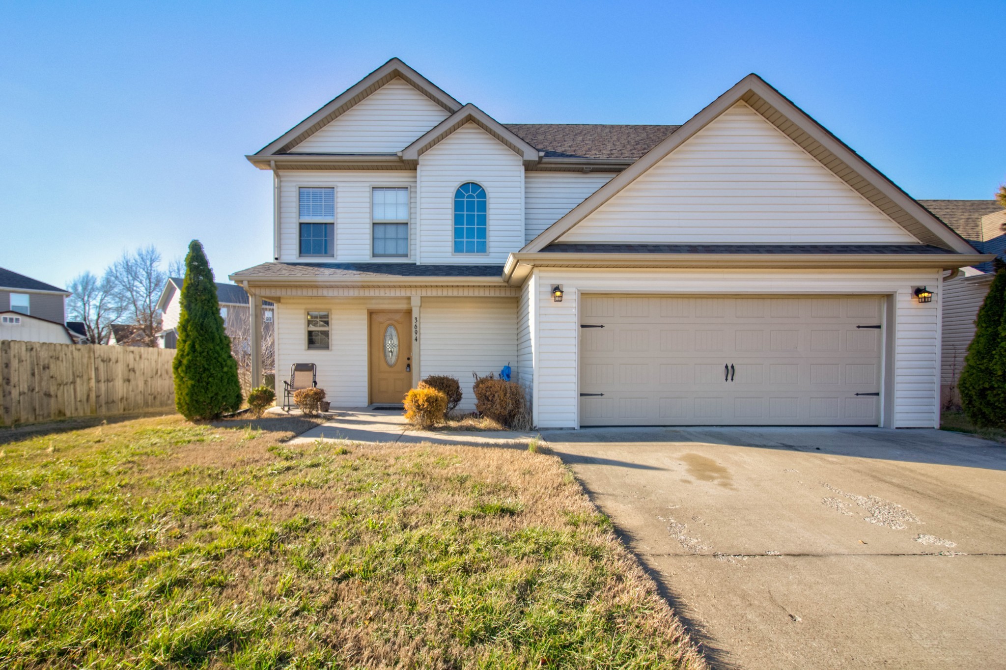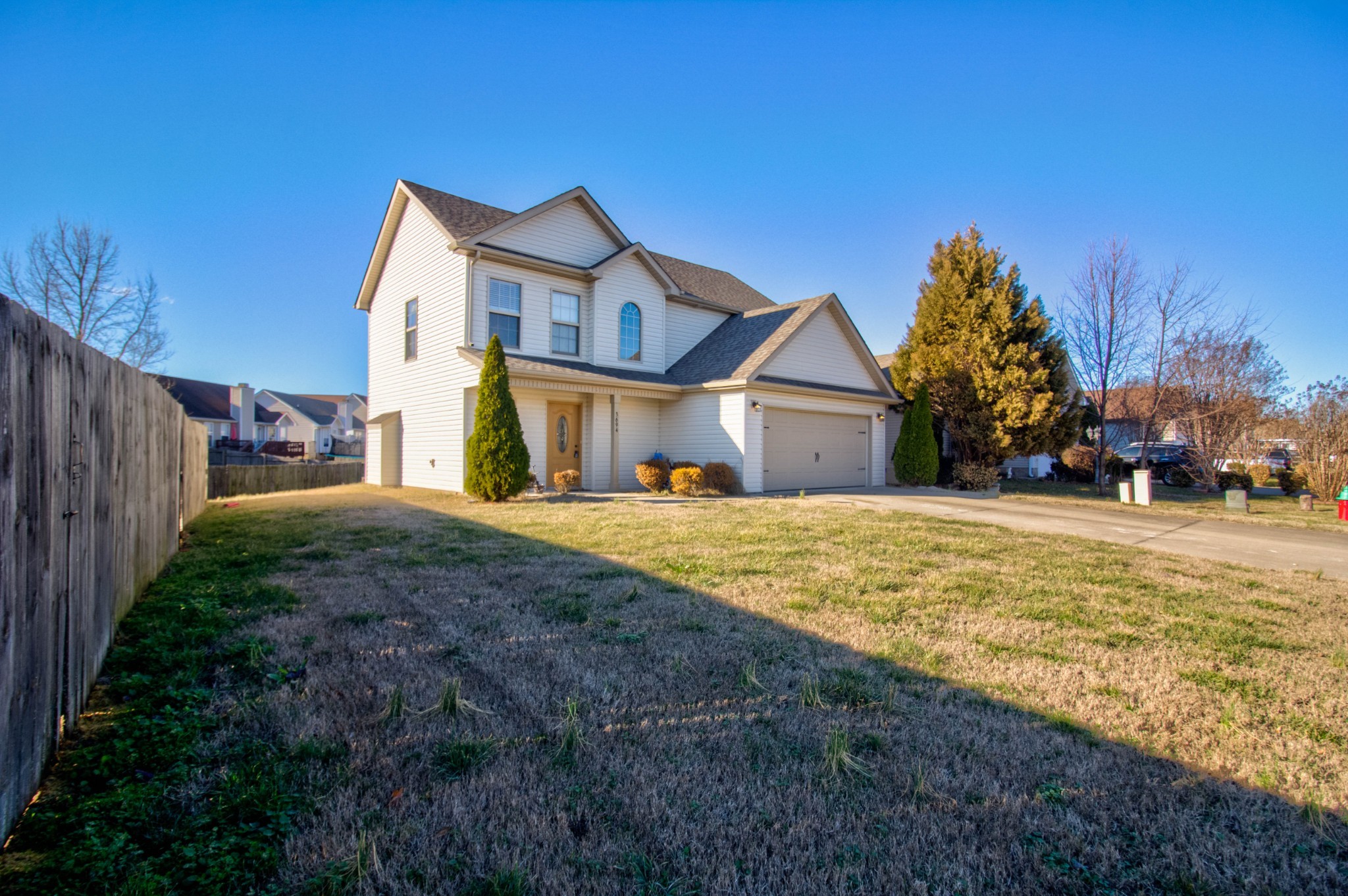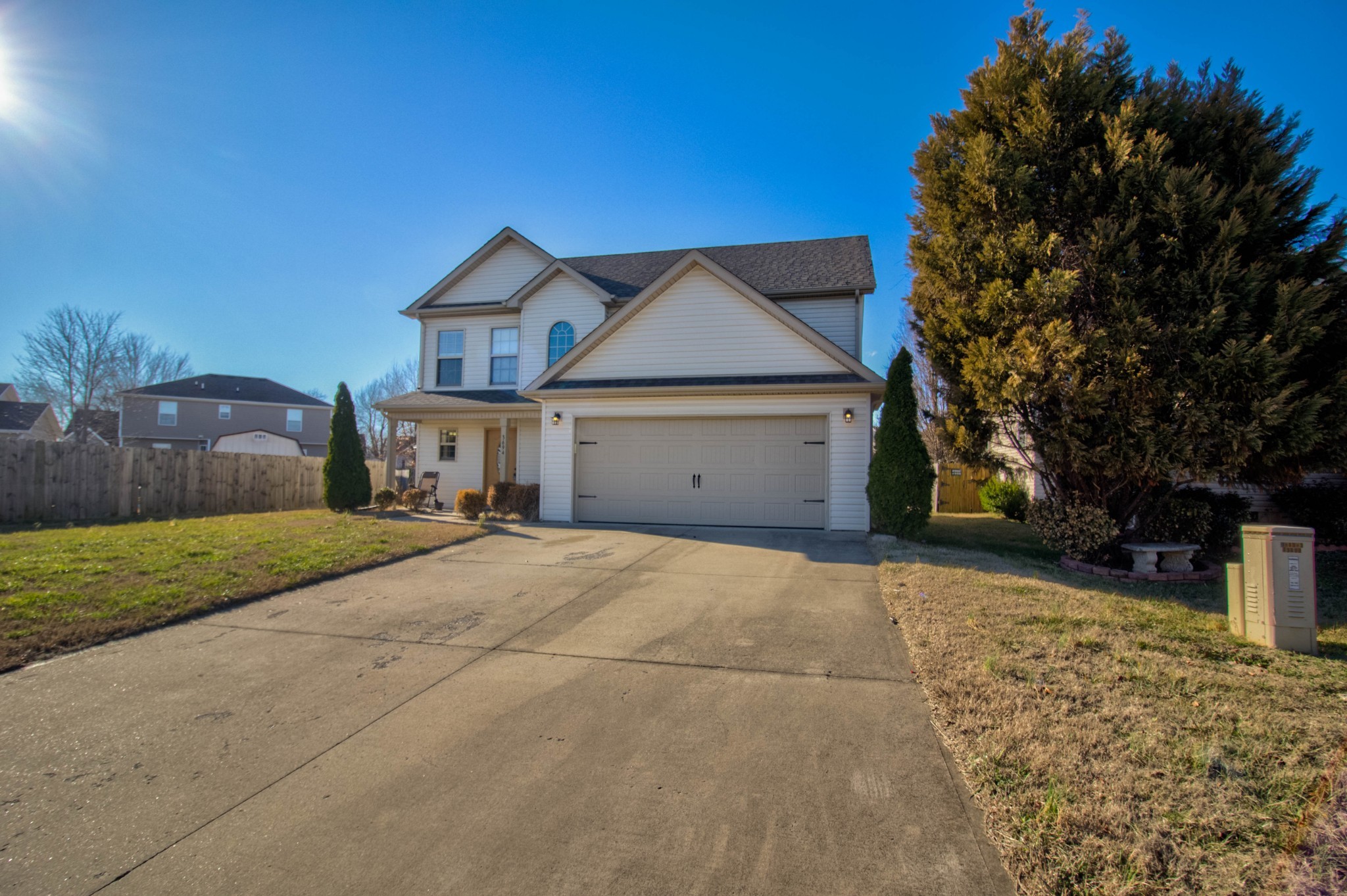 This beautiful three bedroom, two and a half bath home is located within minutes of I-24! The living area boasts an electric fireplace with tile surround, perfect for those chilly winter days, and large windows providing plenty of natural light. The kitchen is stunning with its dark cherry cabinets, a tiled backsplash, and a spacious pantry. The covered back patio perfect for those sunny afternoons and summer BBQs with friends and family. Upstairs you will find a spacious owners suite with trey ceilings, a large walk in closet. The main bathroom features double vanities and a separate tub and shower. Two additional bedrooms with walk in closets provide plenty of space