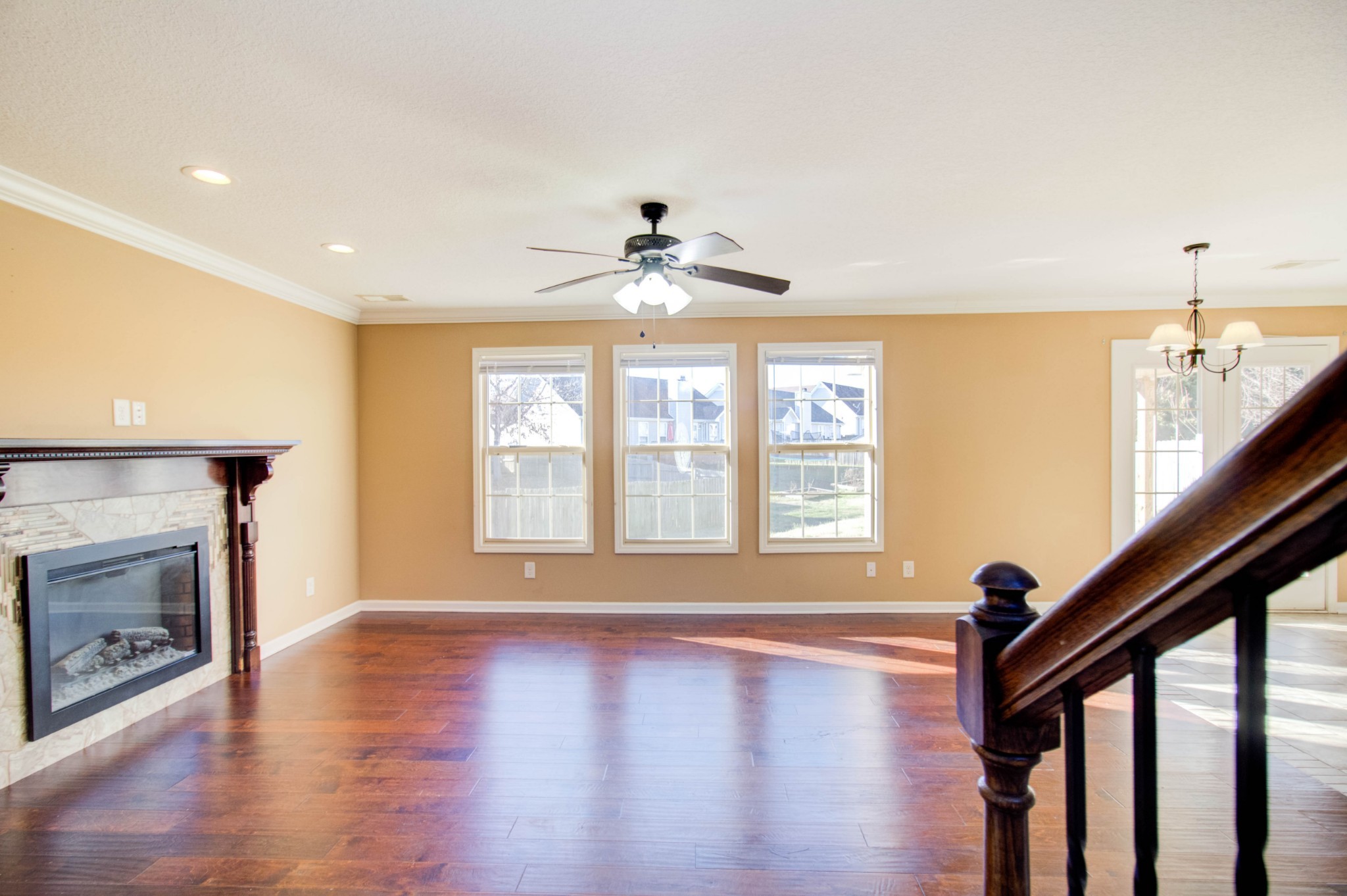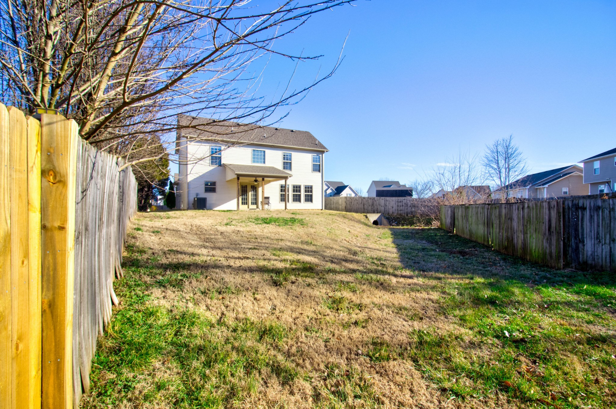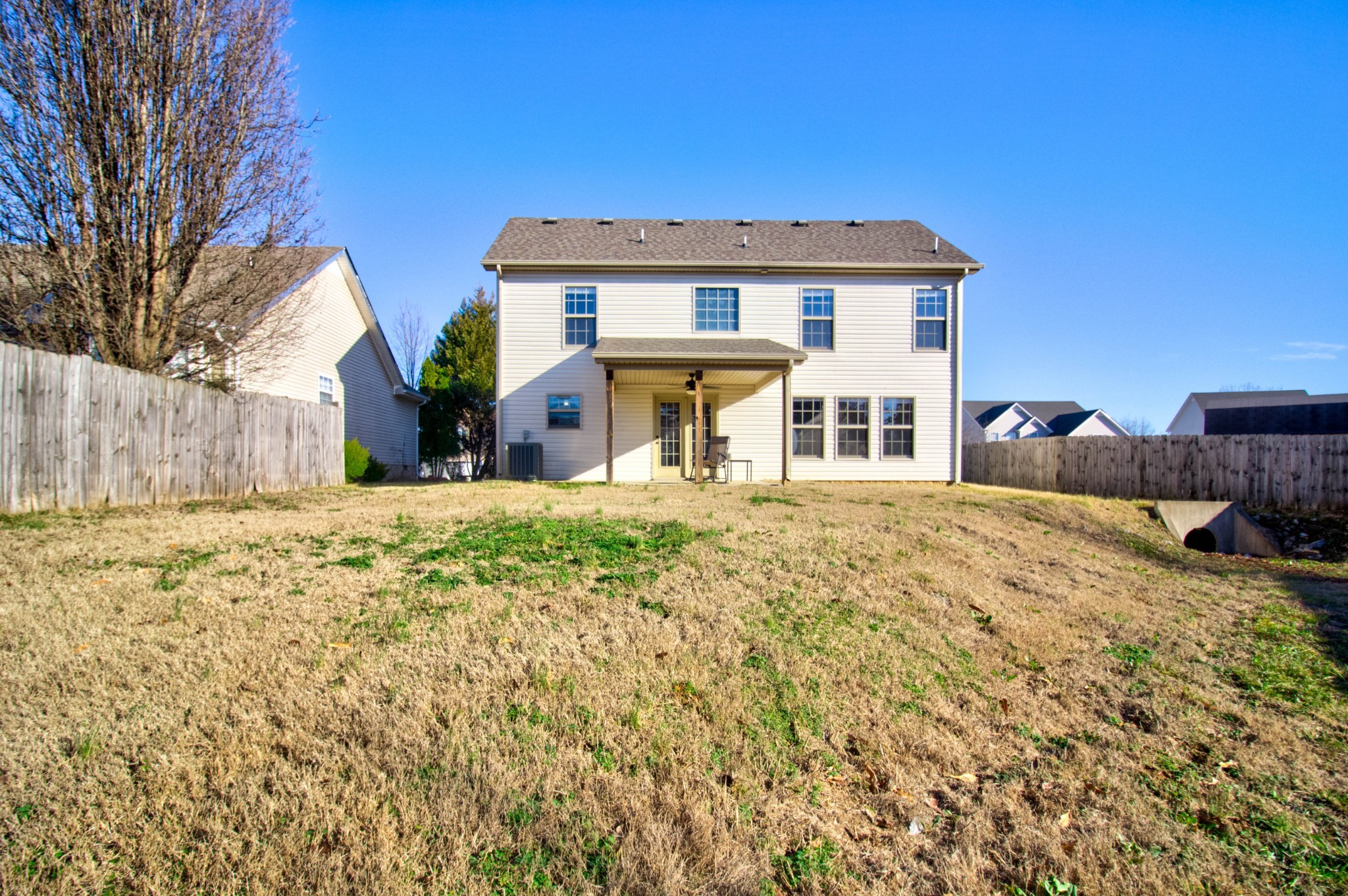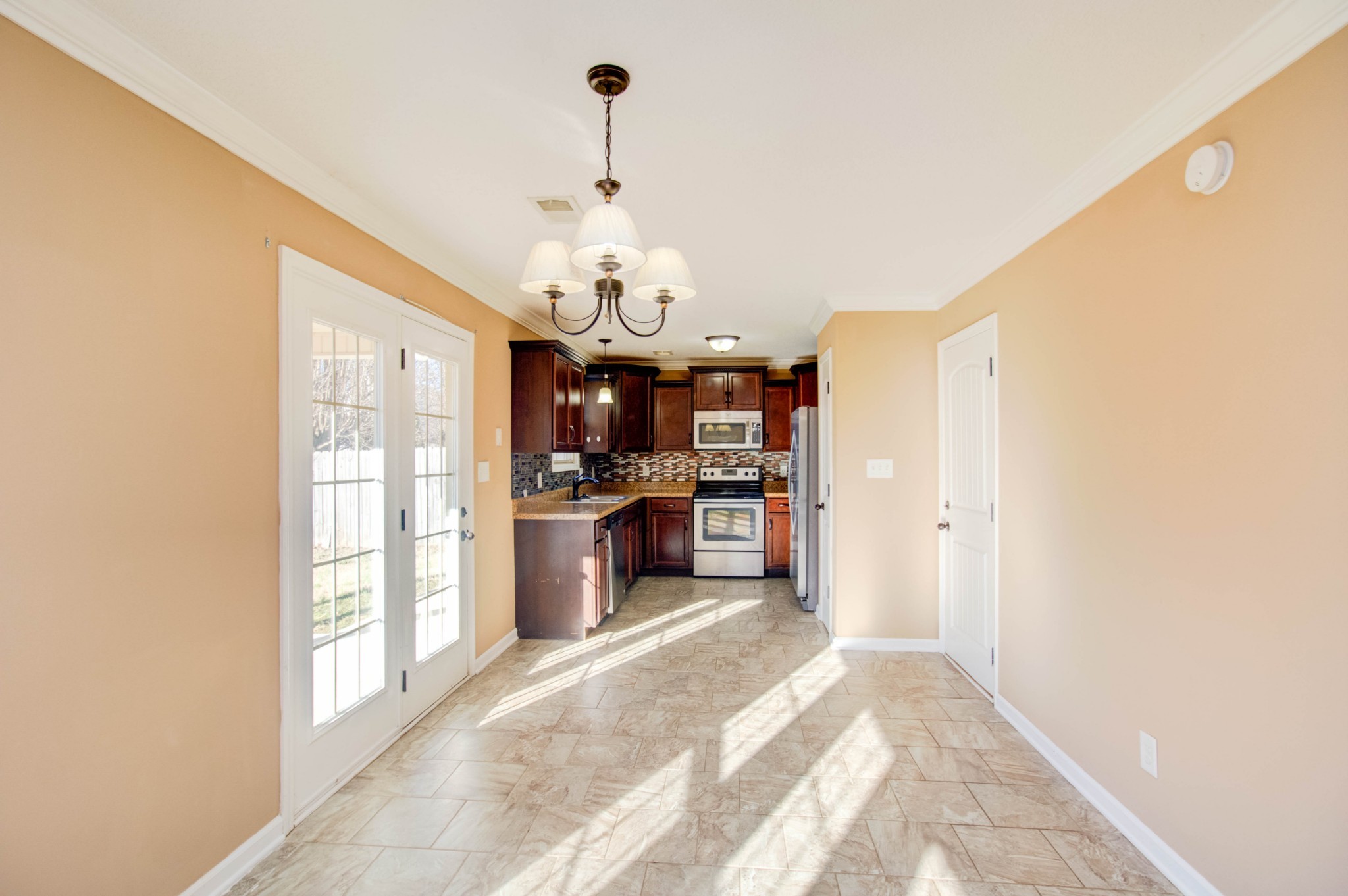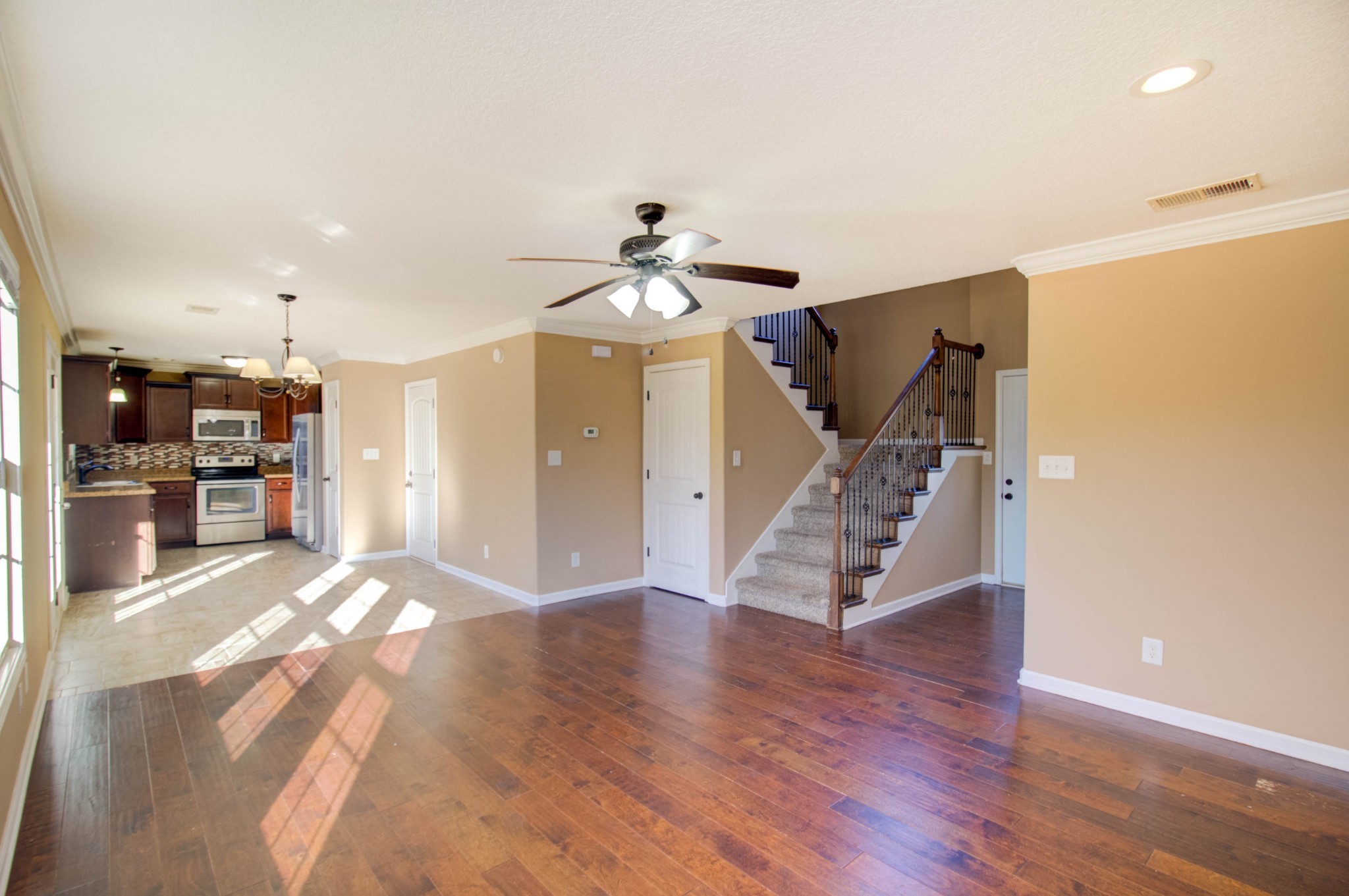 This beautiful three bedroom, two and a half bath home is located within minutes of I-24! The living area boasts an electric fireplace with tile surround, perfect for those chilly winter days, and large windows providing plenty of natural light. The kitchen is stunning with its dark cherry cabinets, a tiled backsplash, and a spacious pantry. The covered back patio perfect for those sunny afternoons and summer BBQs with friends and family. Upstairs you will find a spacious owners suite with trey ceilings, a large walk in closet. The main bathroom features double vanities and a separate tub and shower. Two additional bedrooms with walk in closets provide plenty of space