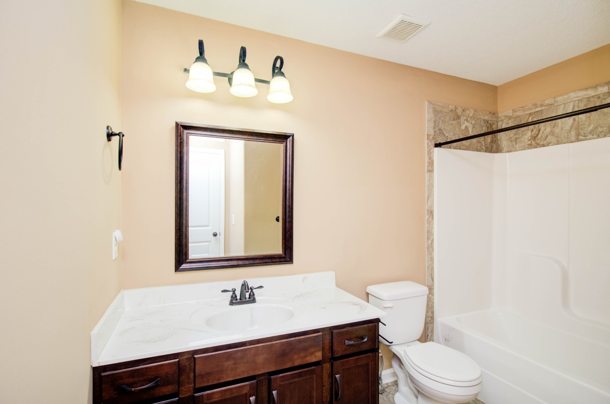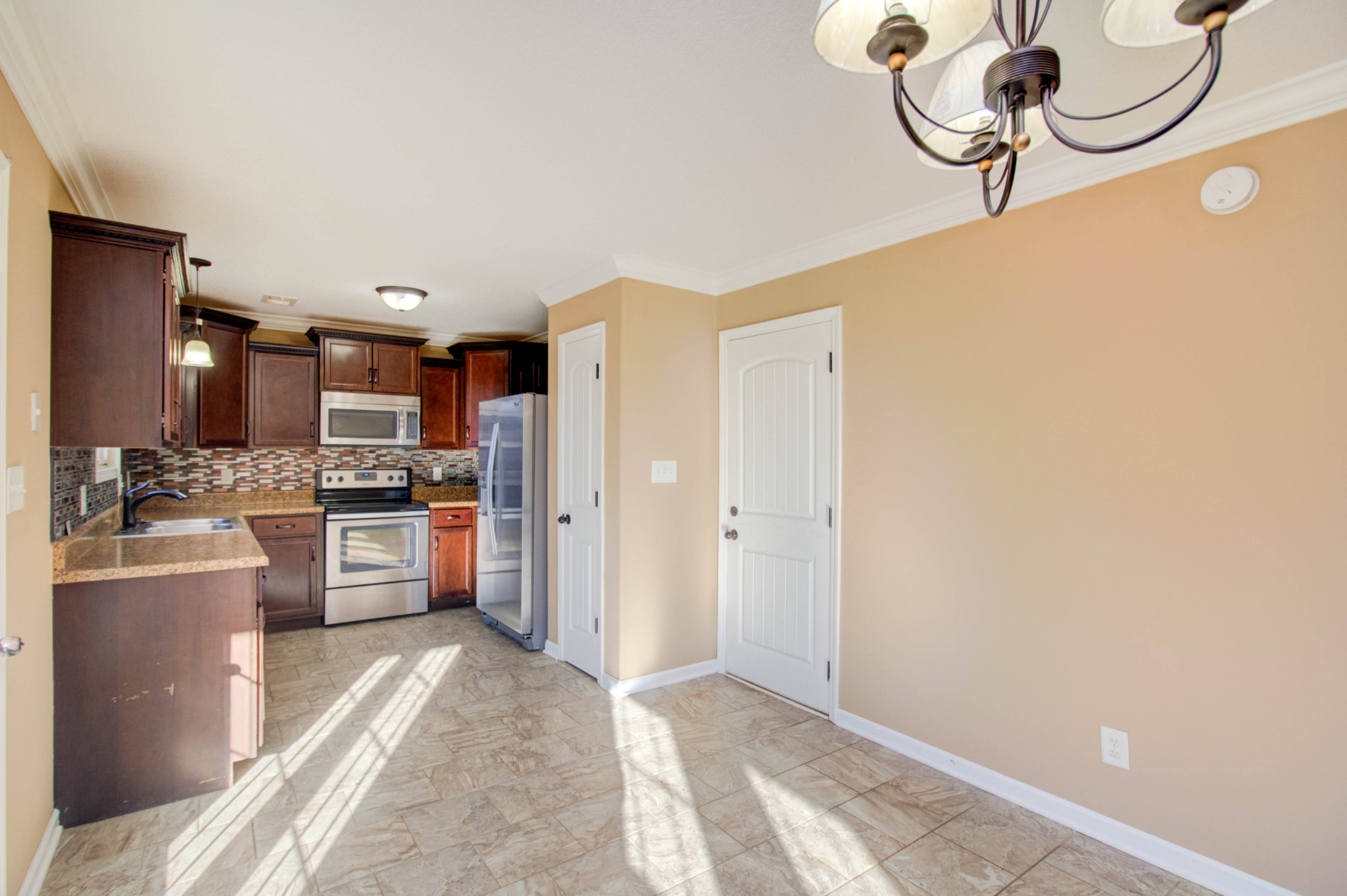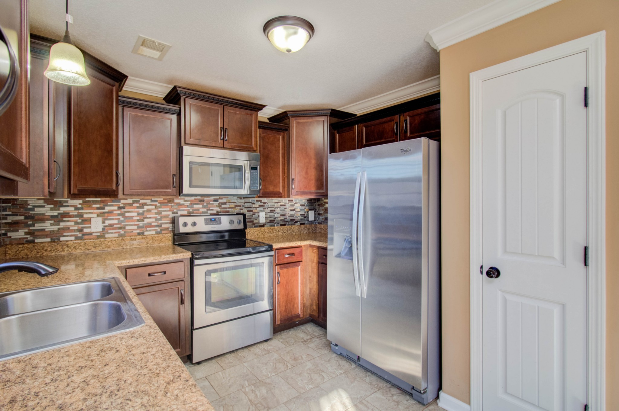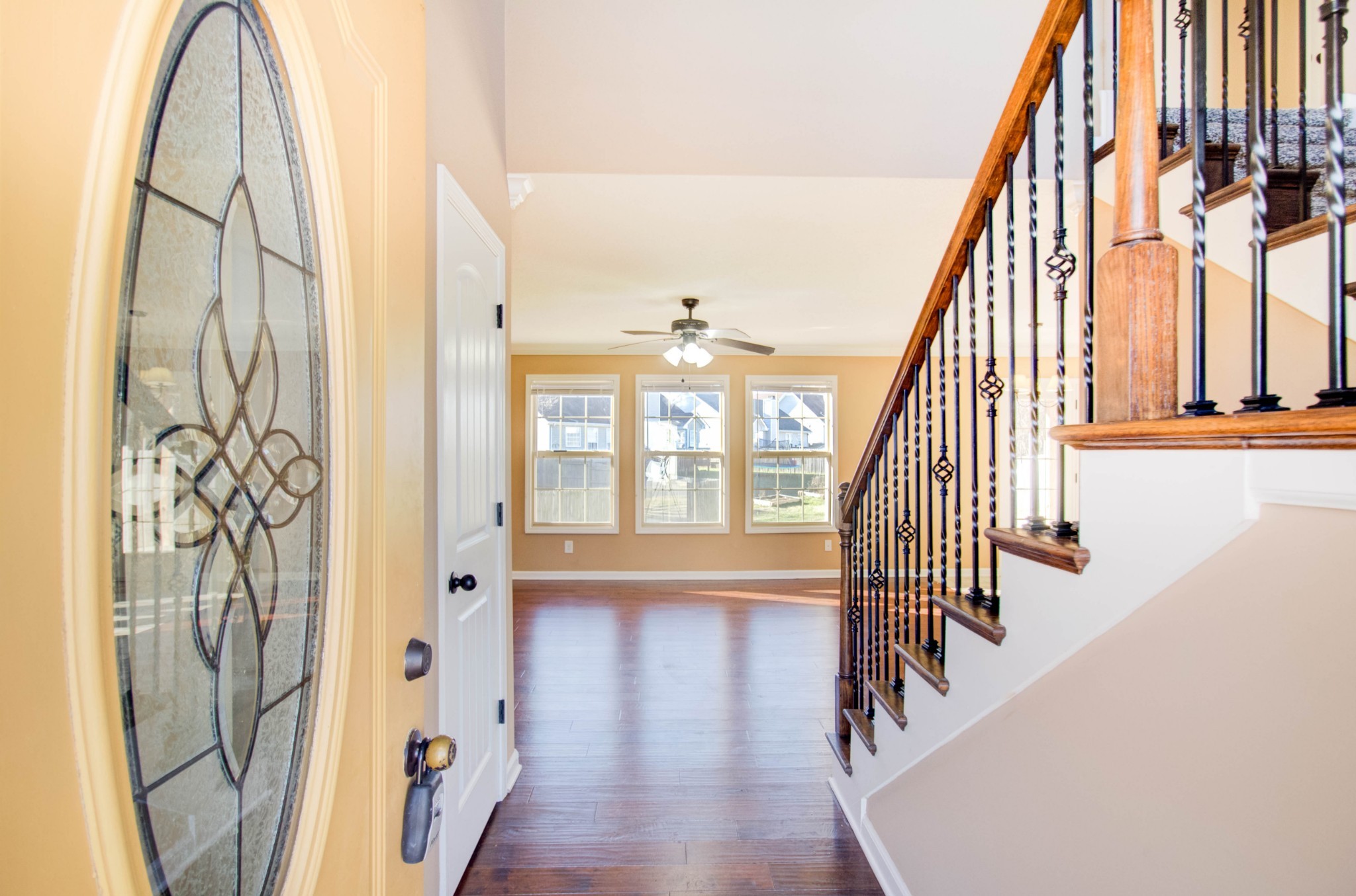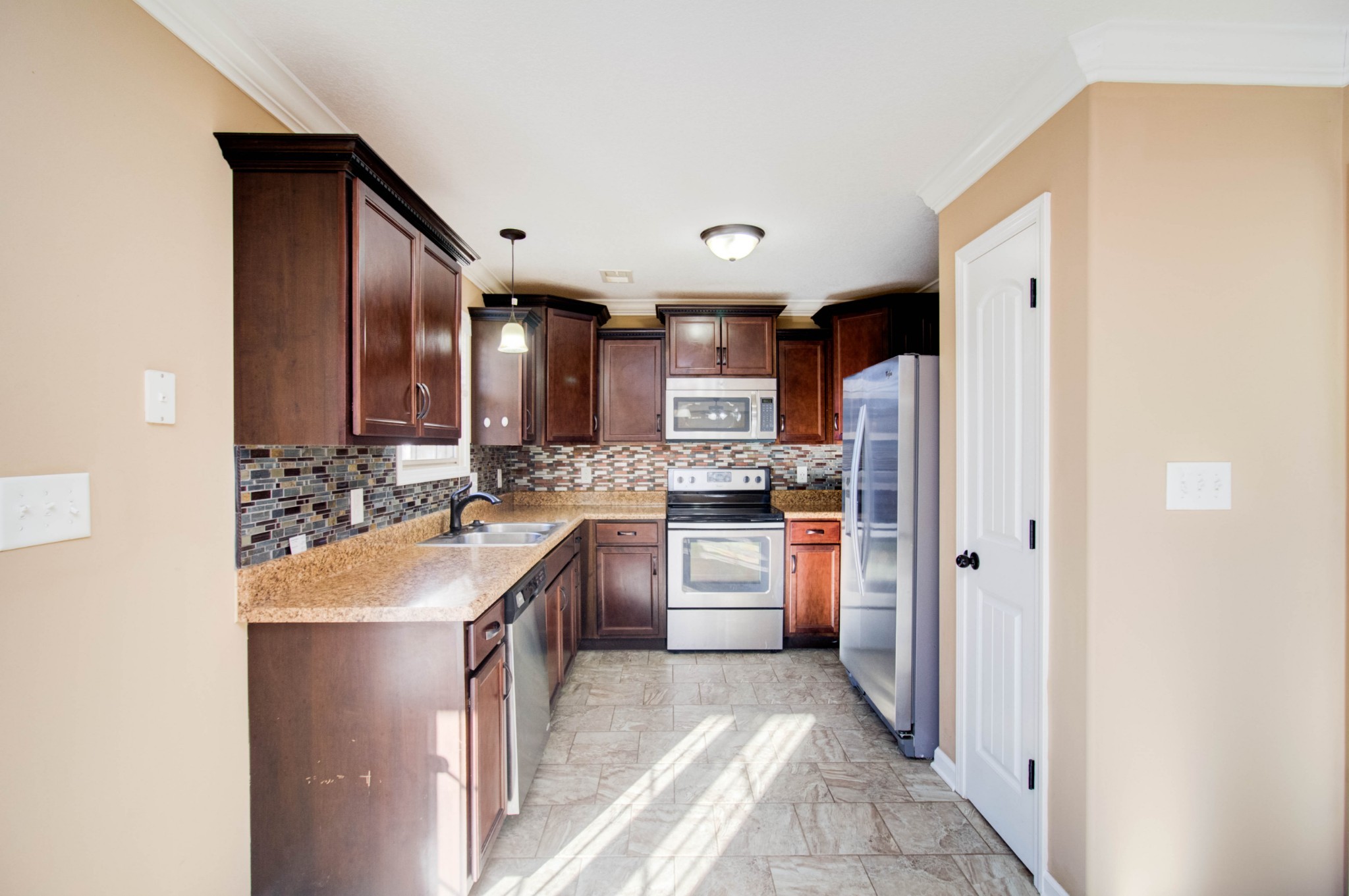 This beautiful three bedroom, two and a half bath home is located within minutes of I-24! The living area boasts an electric fireplace with tile surround, perfect for those chilly winter days, and large windows providing plenty of natural light. The kitchen is stunning with its dark cherry cabinets, a tiled backsplash, and a spacious pantry. The covered back patio perfect for those sunny afternoons and summer BBQs with friends and family. Upstairs you will find a spacious owners suite with trey ceilings, a large walk in closet. The main bathroom features double vanities and a separate tub and shower. Two additional bedrooms with walk in closets provide plenty of space