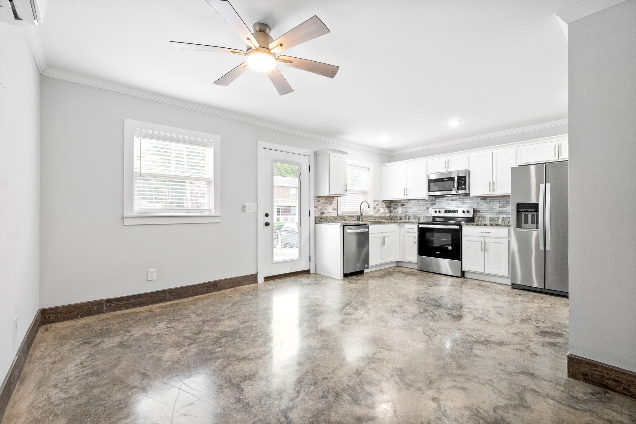 **1ST 2 WEEKS FREE RENT!** Amazing 1900's renovated apartment in Downtown Clarksville features large open floor plan w/ raised ceilings & beautiful windows that have been updated & allow natural light to flow into the unit. Each unit is outfitted w/ central heat & air, modernized lg ceiling fans, mounted flat screen smart T.V. in the living room/bedroom, fully functioning kitchen w/ stainless steel appliance, granite counters, & beautiful backsplash. Bathroom features a fully tiled shower & granite countertops.