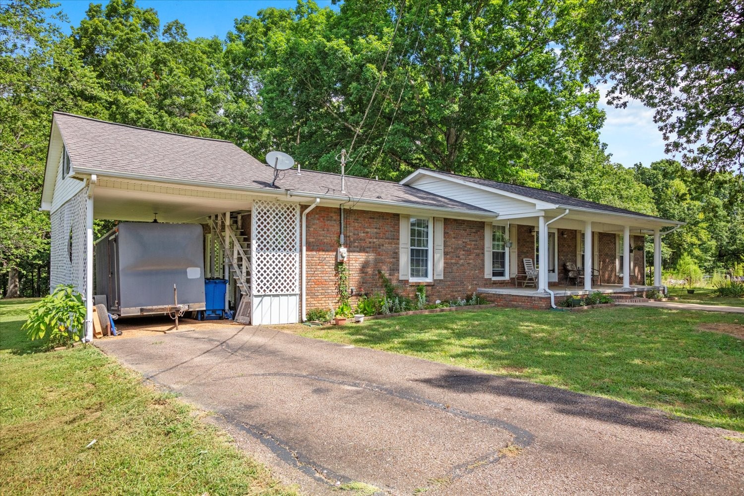 Welcome to your dream home nestled on a sprawling 6-acre lot! This charming ranch-style brick house, originally built in 1976 offers a perfect blend of classic charm and modern convenience. Surrounded by mature shade trees and featuring a convenient circle driveway, this property is a serene oasis. Inside, you'll find a spacious layout with 3 comfortable bedrooms and 2 full baths. The cozy den is perfect for relaxing or entertaining guests. The kitchen comes fully equipped, with all appliances included, making your move-in seamless and hassle-free. Located just 30 minutes from Florence, AL, and 35 minutes from Lawrenceburg, this home provides easy access to nearby amenities while offering the tranquility of country living. Don't miss out on this rare gem—schedule your viewing today!