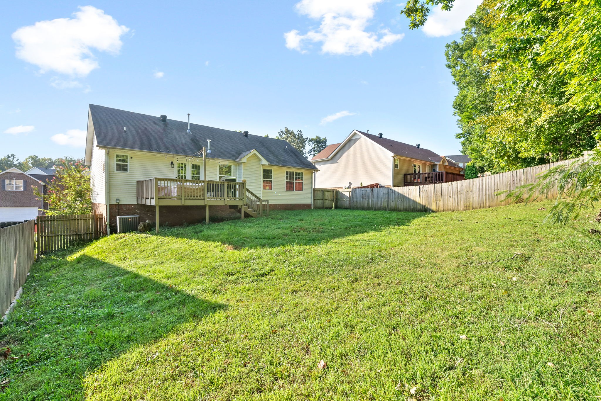 This spacious 4-bedroom, 2-bathroom home in Clarksville, TN, offers a blend of comfort and functionality. The inviting living room features a cozy fireplace, perfect for gathering with family and friends. The finished basement includes a large recreation room and an additional bedroom, ideal for entertainment or guests. High ceilings enhance the open living spaces, while the back deck provides a great spot for relaxation. With a 2-car garage and a fully fenced yard, and trees providing privacy this home is ready to welcome its new owners. Don’t miss out on this opportunity!
