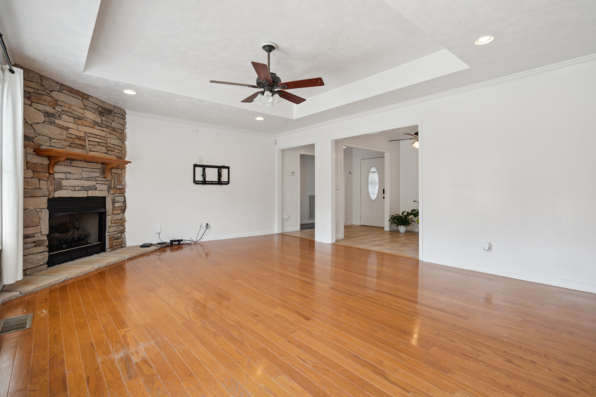 Embrace the perfect blend of relaxation and adventure in this beautiful home backing up to the Red River West Fork, if you like to fish or kayak you need to check out this split bedroom ranch style home nestled in a peaceful cul-de-sac, this residence boasts an open floor plan with stunning hardwood floors throughout, complemented by a cozy stone fireplace. The kitchen and bath feature elegant ceramic tiles, while the dedicated laundry room adds convenience. Stainless steel appliances, dishwasher and refrigerator are only 6 months old. HVAC only 4 years old for added peace of mind! The primary bedroom offers a true retreat with dual vanities, two walk-in closets, a separate shower, and a luxurious soaker tub. Entertain guests on your spacious 16x16 deck overlooking a large, privacy fenced backyard, complete with a new 16x12 storage building. Whether you enjoy fishing, kayaking, or simply unwinding at home, this property is your perfect escape.