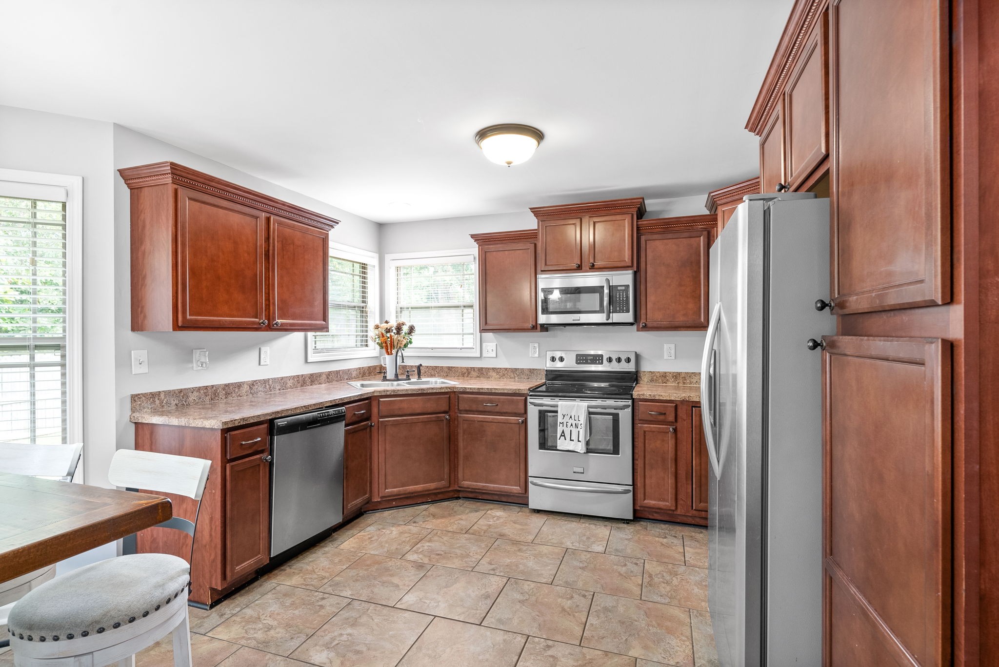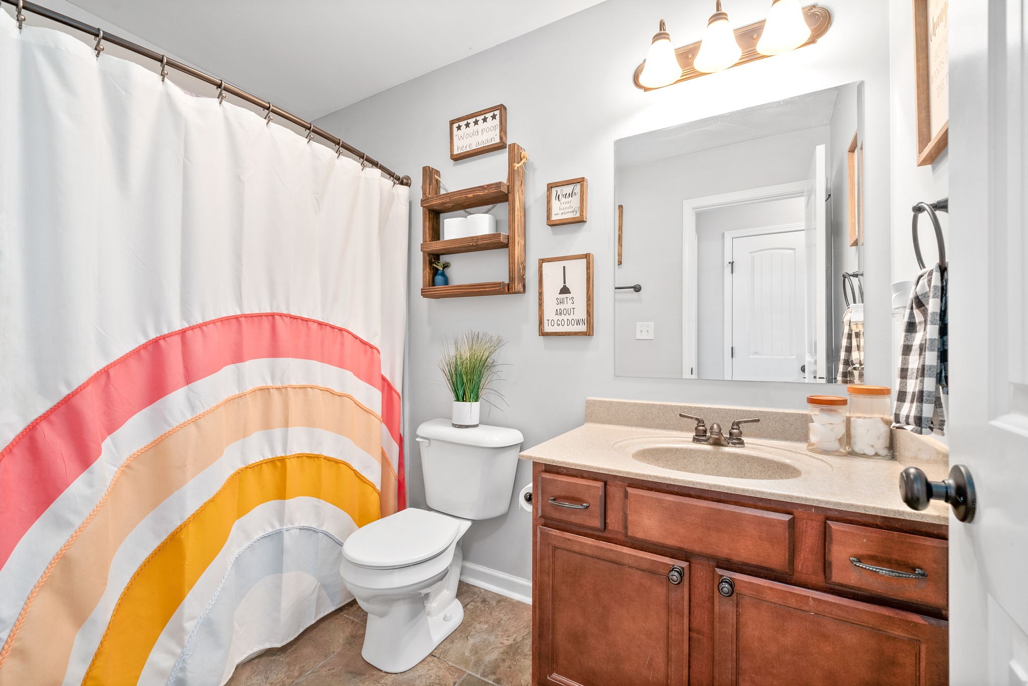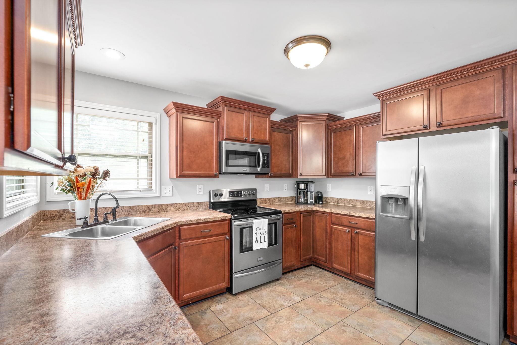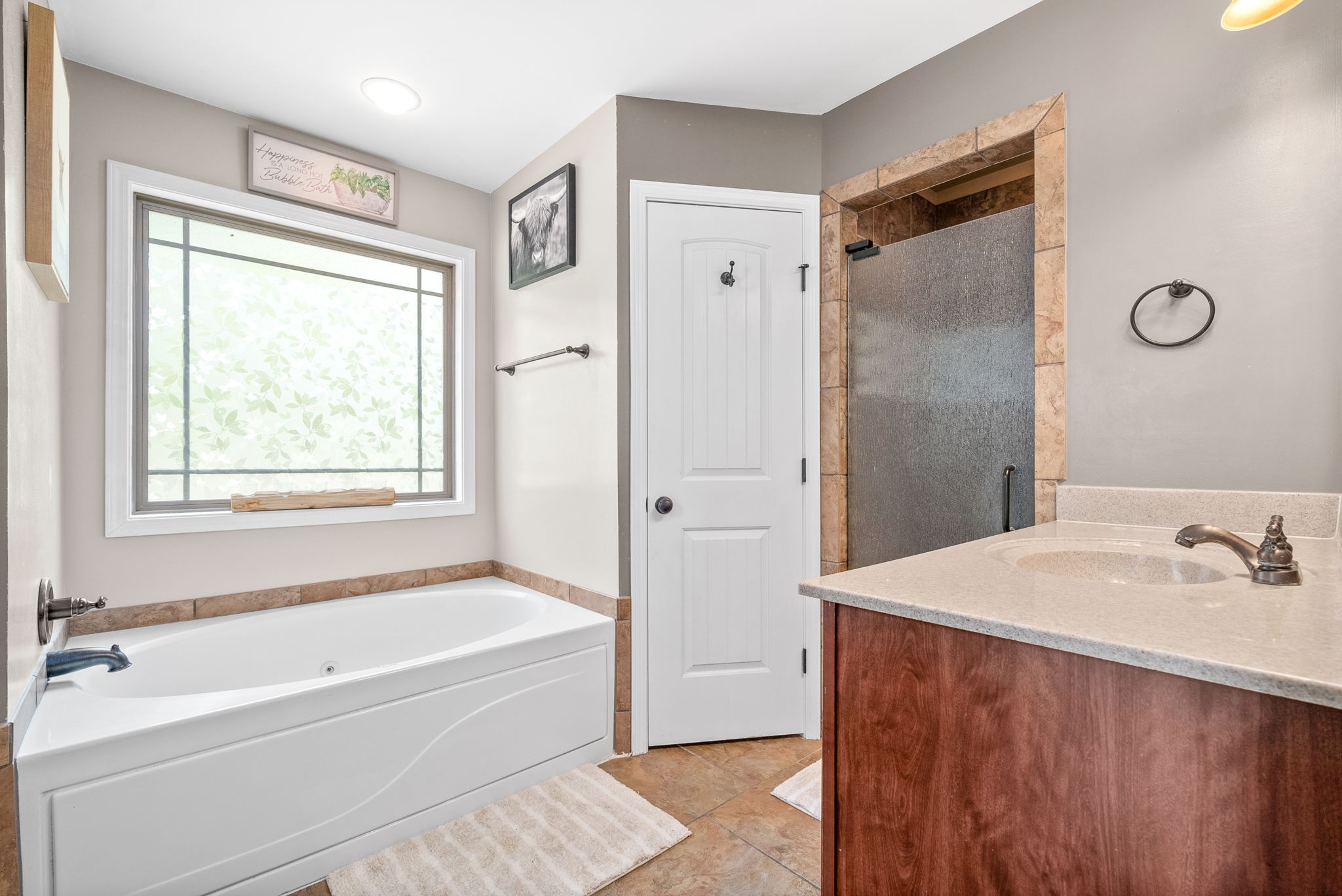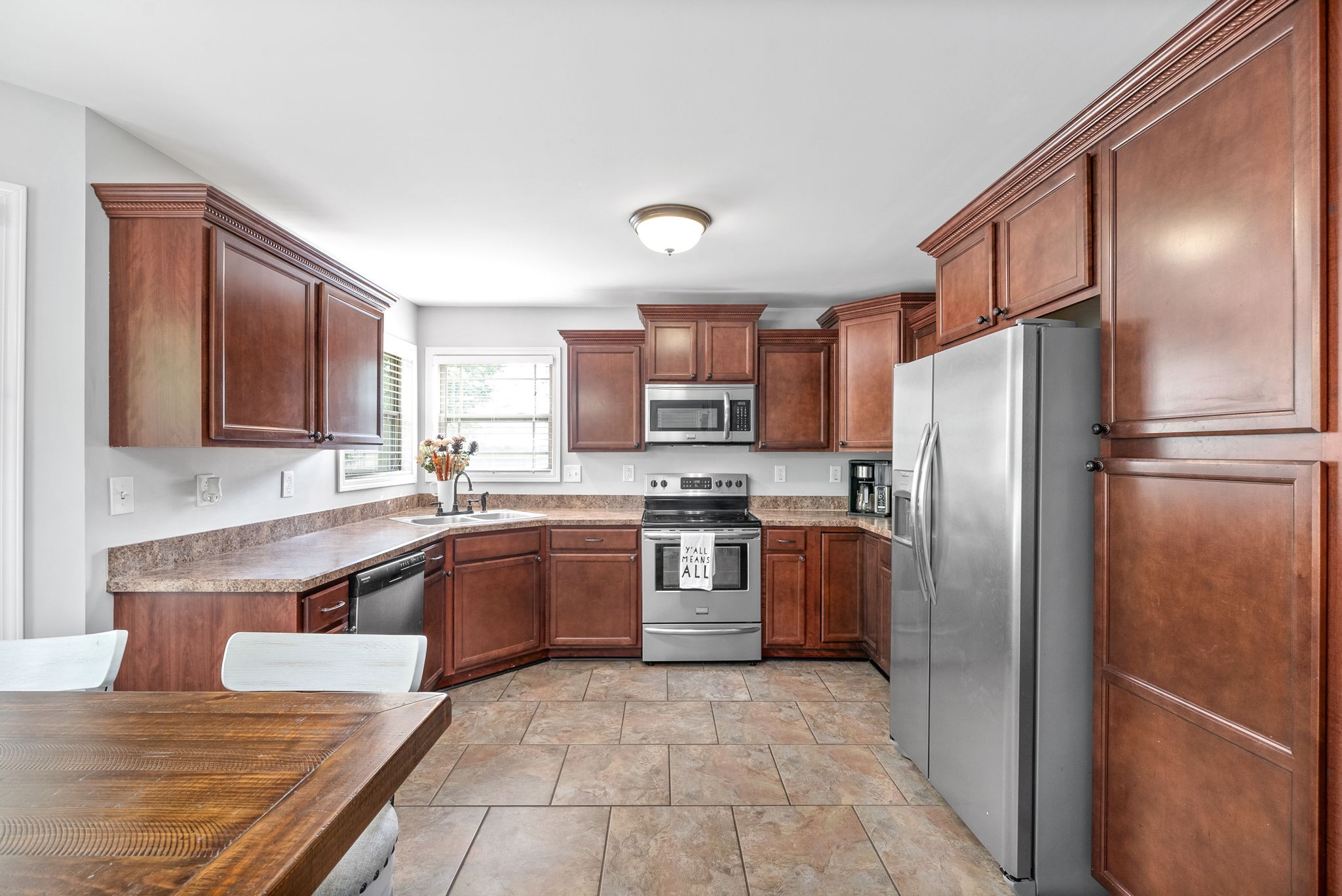 This charming home, free of HOA restrictions, offers a tree-lined backyard, a storm shelter in the 2-car garage, and easy access to both Fort Campbell and Nashville. Inside, you'll find 3 bedrooms, 2 full bathrooms, and just over 1,500 square feet of living space, including a bonus room and a spacious living area perfect for entertaining or relaxing. The open-concept kitchen boasts stainless steel appliances, ample counter space, and a cozy eat-in area. The primary bedroom is a retreat with vaulted ceilings, plenty of natural light, an en suite bath featuring a tiled walk-in shower, a jacuzzi tub, and two closets. The versatile bonus room can serve as a second living space, kids' playroom, or provide attic access. Outside, the fenced backyard offers a covered deck and ample space to create your own outdoor oasis. BRAND NEW roof + HVAC, also!