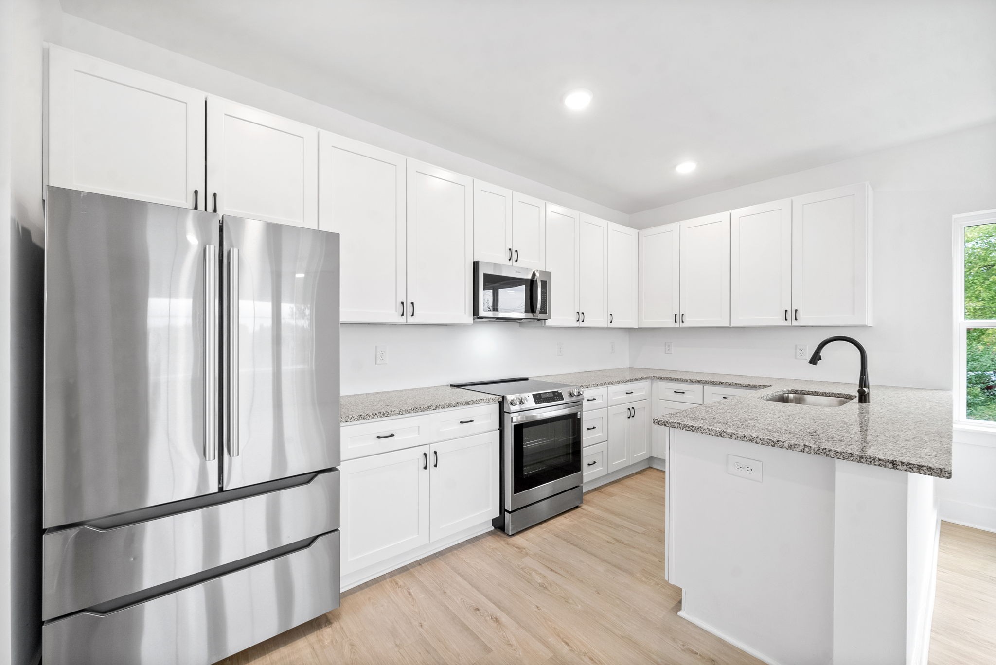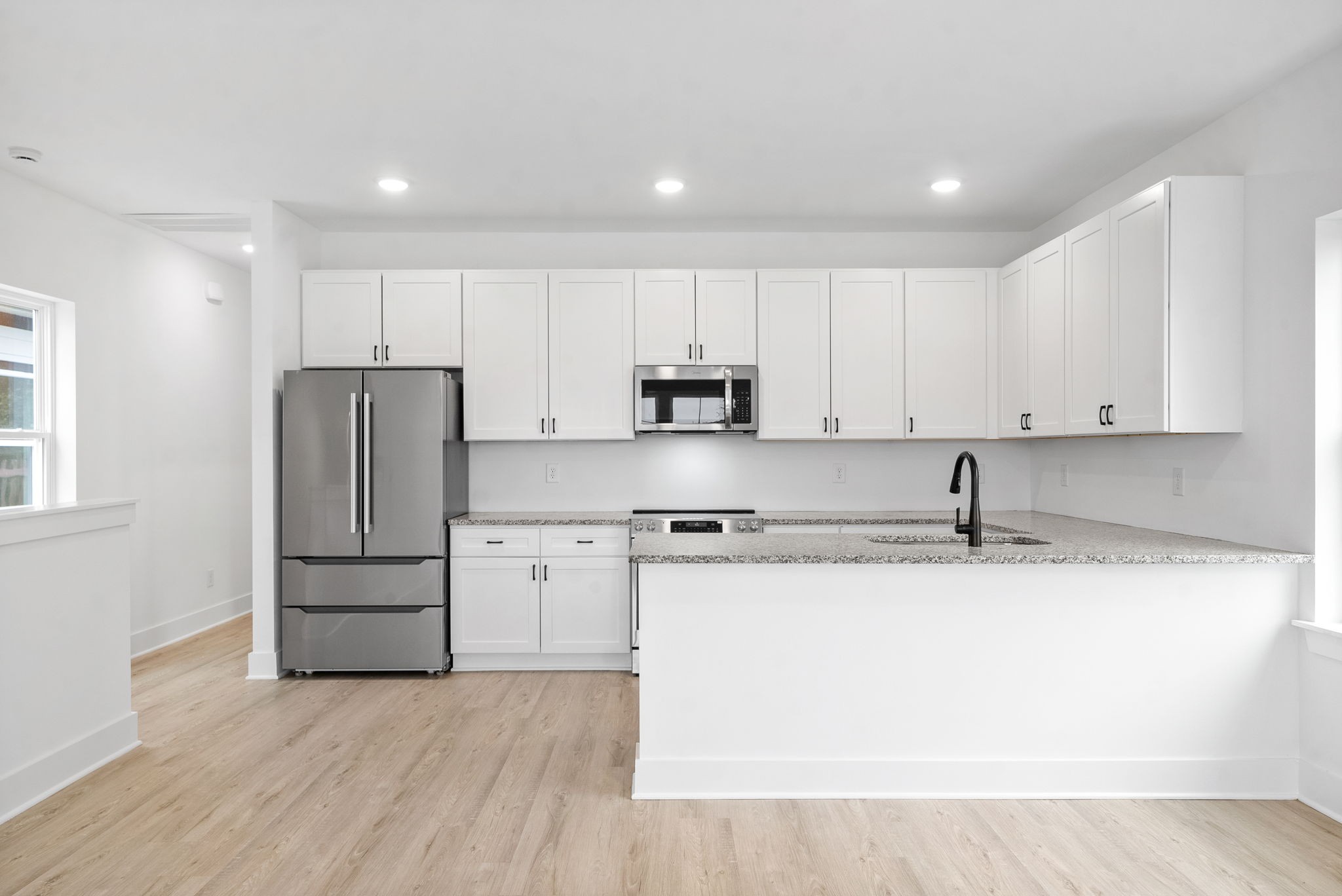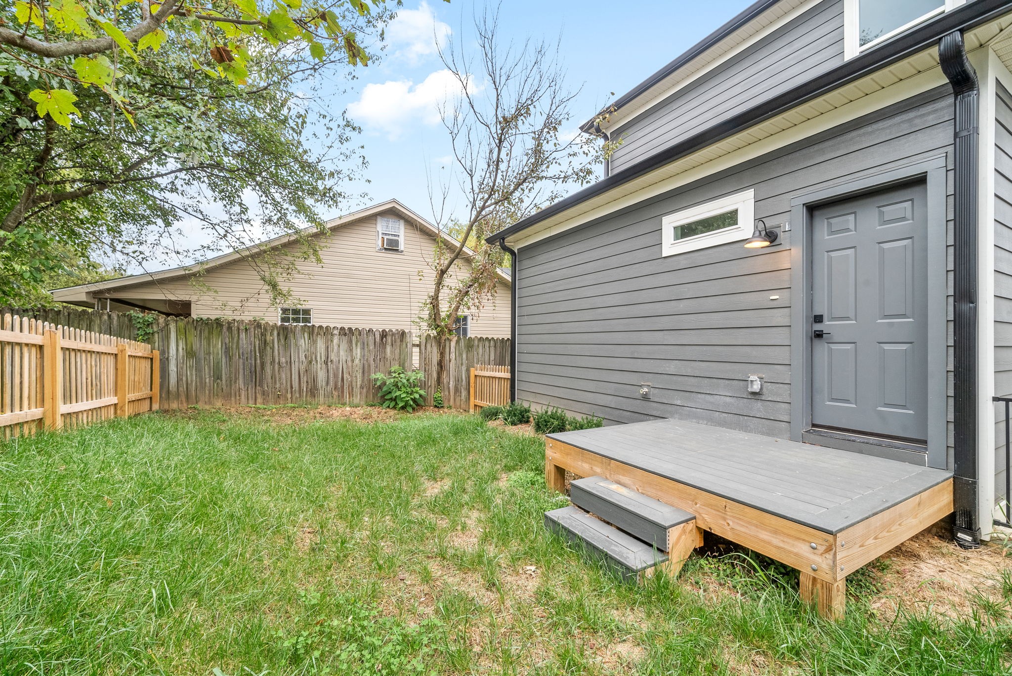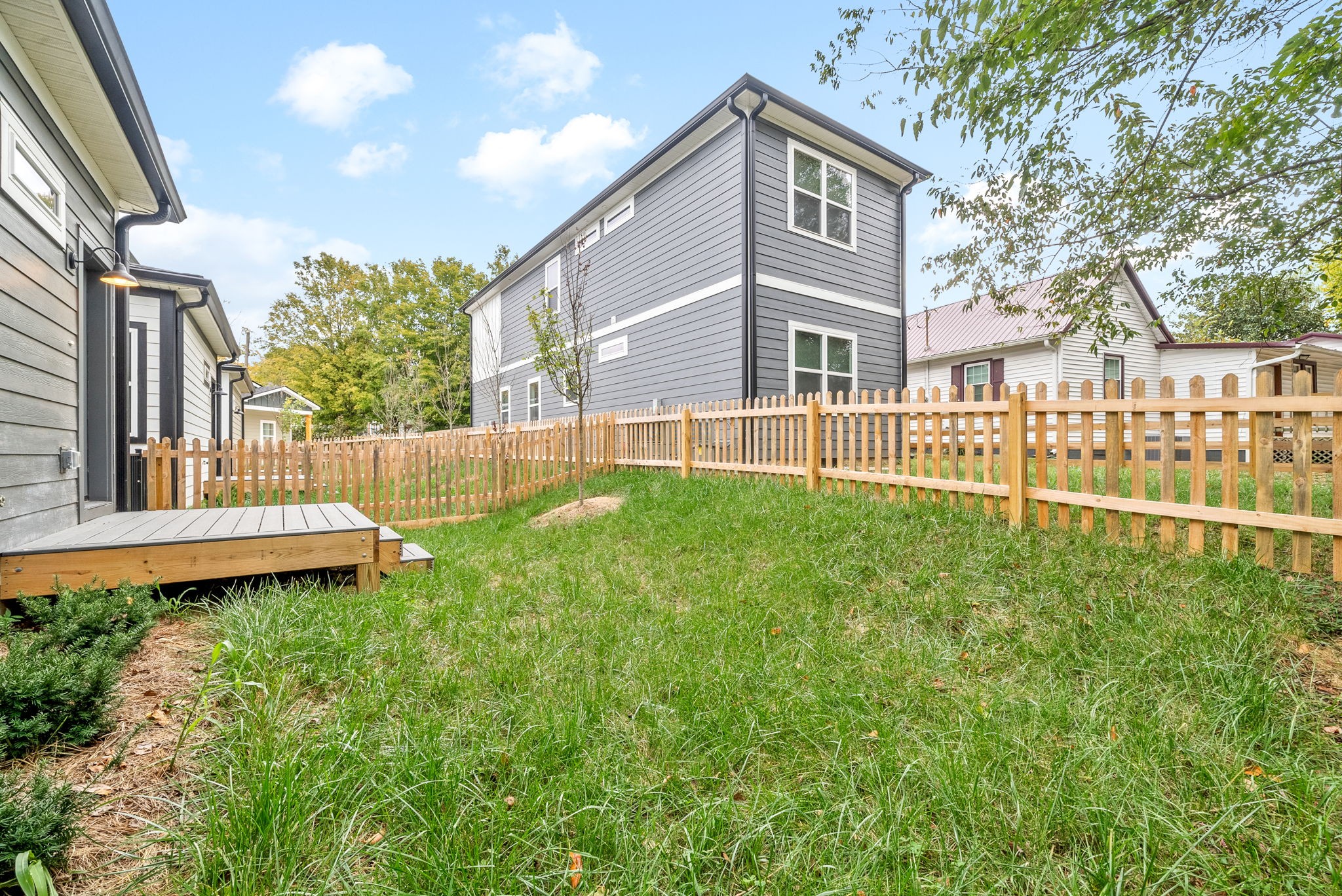 Nashville meets Clarksville! This stunning new build situated in booming downtown Clarksville offers luxurious living with ample space, including a coveted mother-in-law studio suite on the bottom floor with its own laundry area. Thoughtfully designed, this residence features the studio apartment with full bath, three additional bedrooms each with its own ensuite bathroom and walk in closets, and a one car garage. Modern design meets comfort in this spacious layout with two open concept living areas, two gourmet kitchens, granite counter tops, LVP and tile throughout. Perfect low maintenance fenced backyard space for your enjoyment. Conveniently located, this home is perfect for multi-generational living or roommates, satisfying primary residence needs and investors alike. This layout would make a great short term rental or long term rental. This home temporarily rented for $2800/mo this year. Don't miss this opportunity to snag your piece of downtown!