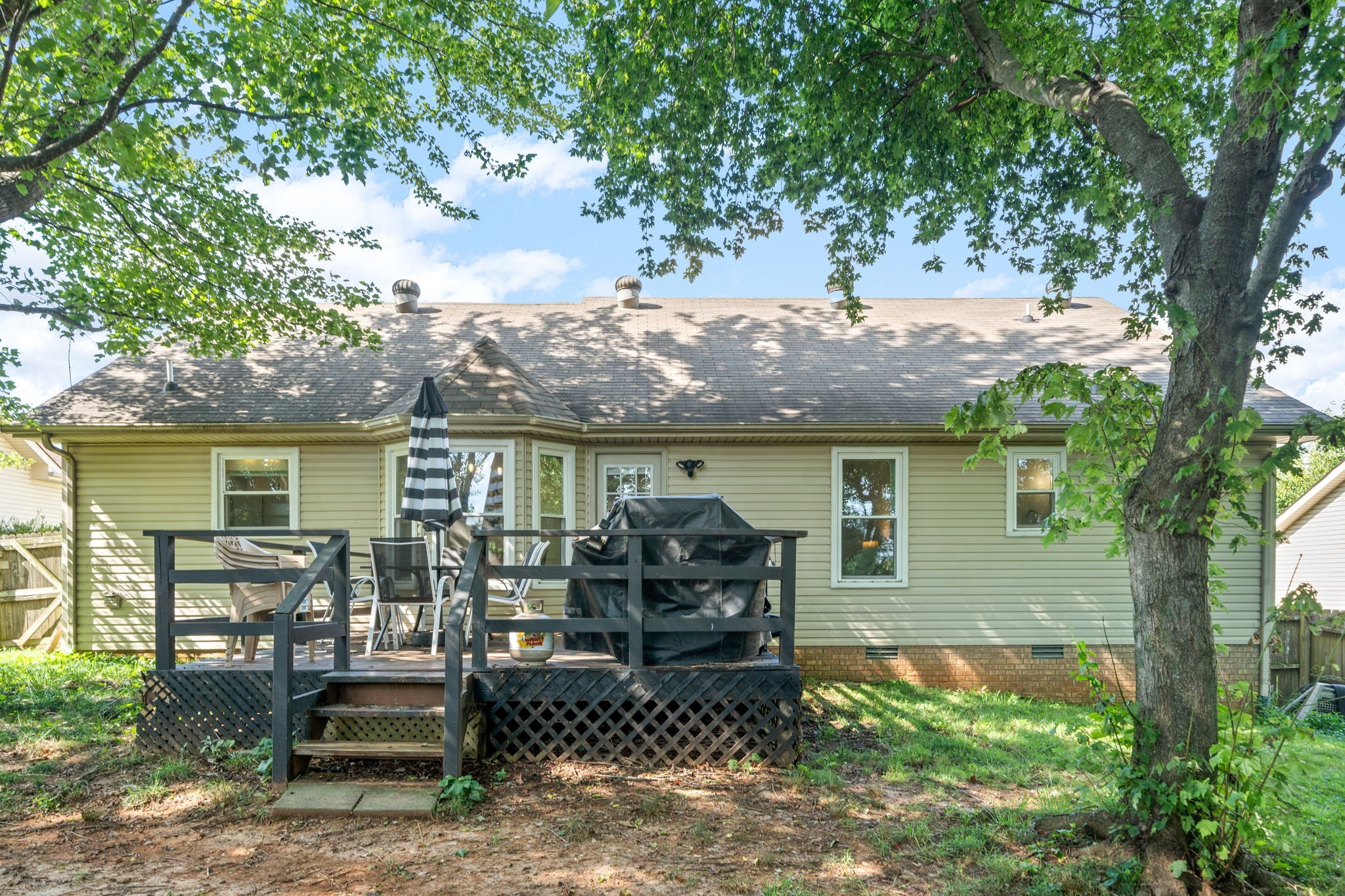 Looking for one level living, a tree lined back yard w/ no rear neighbors & easy access to everything? THIS IS IT! Cozy, Inviting & Functional are only a few words to describe this gem. Perfectly placed on a 0.21+/- ac lot offering blissful convenience & endless possibilities. This 3 bed, 2 bath, renovated ranch w/ a 2 car garage will not disappoint. Step inside to the large living room gleaming w/ natural light. The open living & dining area seamlessly merge, creating the perfect place for gatherings. Kitchen boasts white cabinets, SS appliances, Pantry/laundry area & dreamy bay window nook. King size bed? No problem. The spacious primary bedroom is complete w/ ensuite & WIC.Step out to the 15x14 craftsman built deck deck & discover the private back yard waiting for your fall fires, S'mores & starlit evenings. Only minutes from shopping/ restaurants & a short distance to Post & I-24. What are you waiting for? Schedule your showing today & let your dream of a perfect home come true.