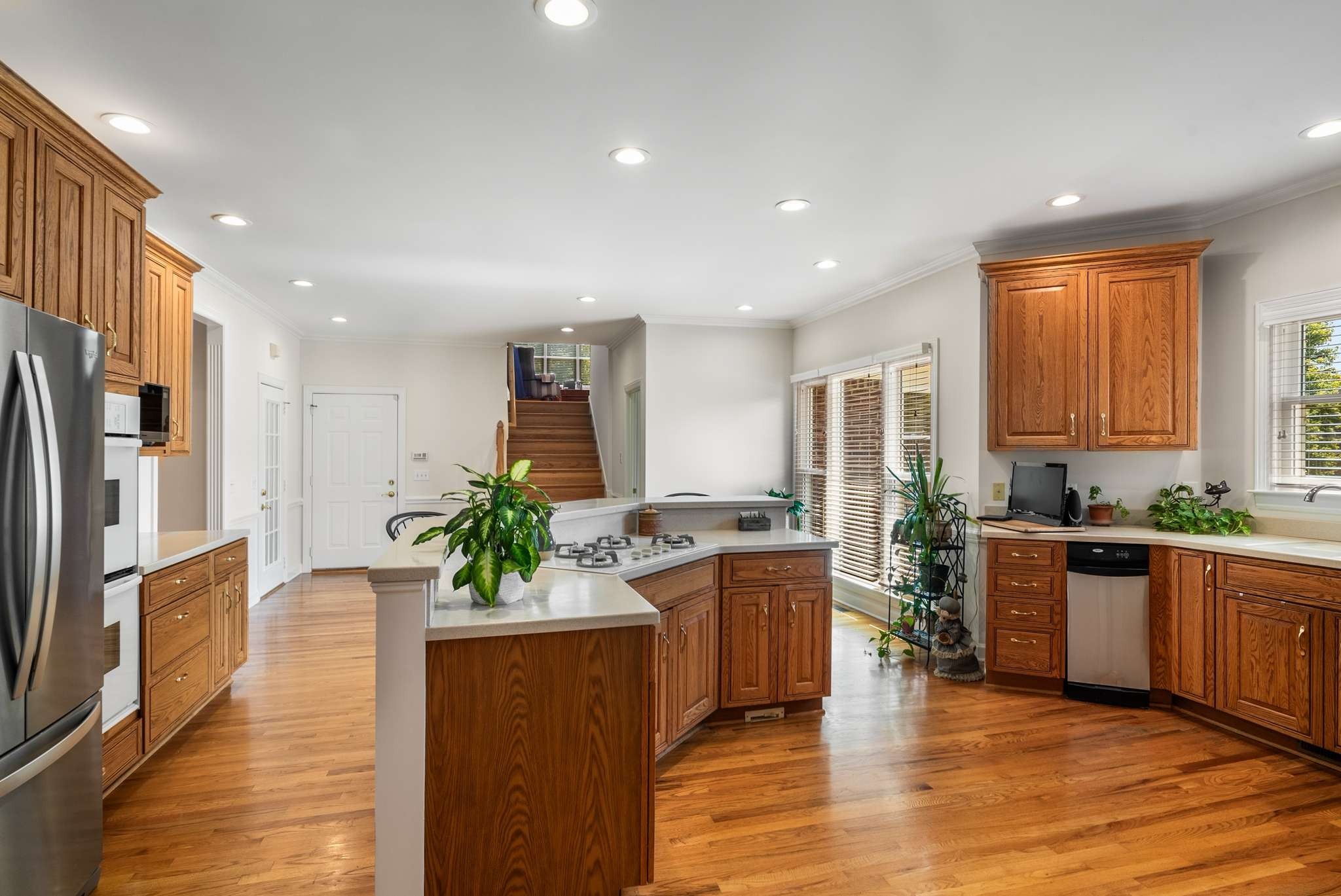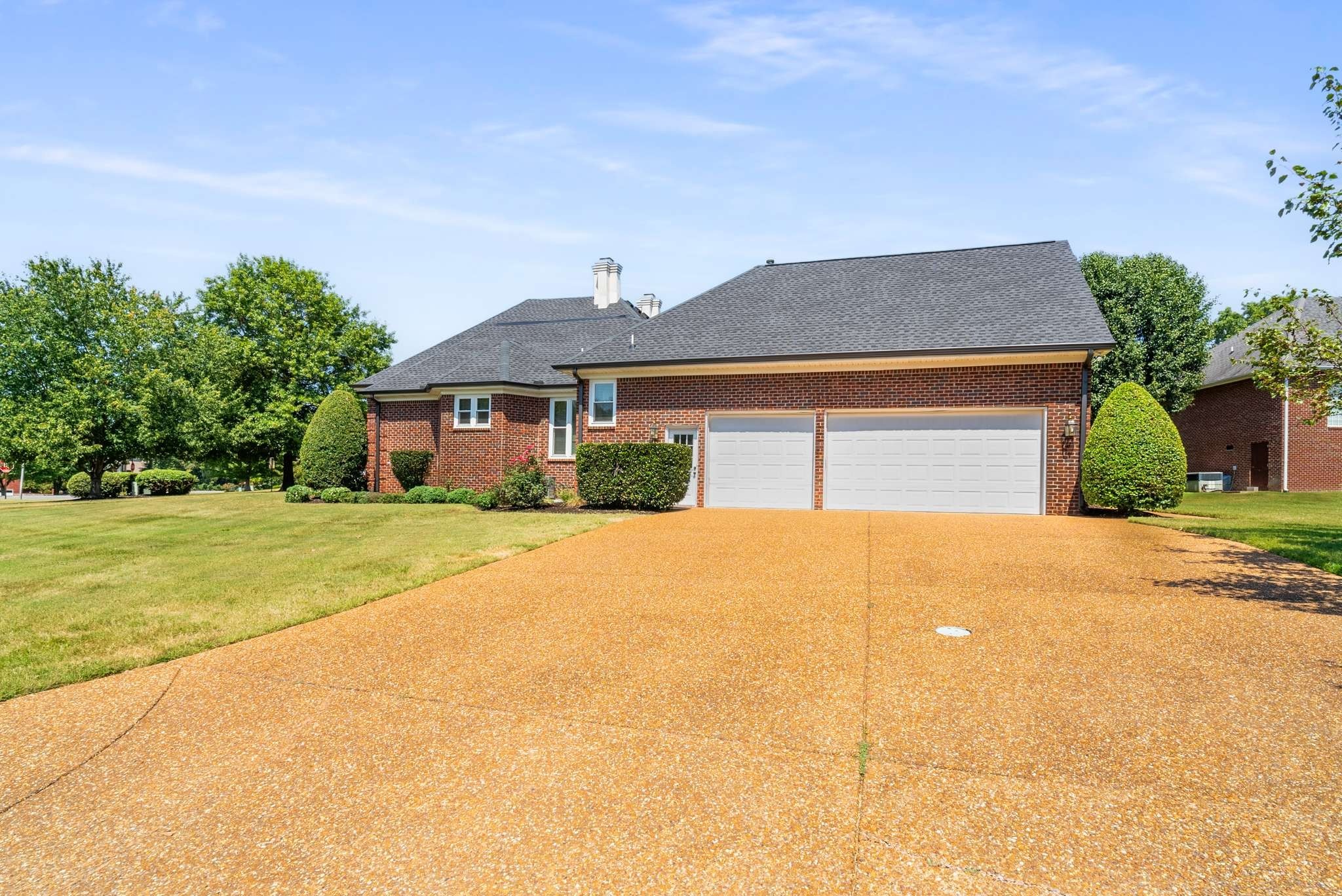 Stunning custom corner home nestled in Richmond Hills in west Lebanon. Home has been immaculately maintained! Major upgrades: Sump pump & small HVAC (’24)– roof, gutters, & downspouts (‘23)–large HVAC (‘22)–oven & Pella windows (‘19). Step into the foyer, greeted by hardwood flooring, upgraded trim, & a neutral palette. Chef’s kitchen w/ plenty of cabinet & counter space, island w/ seating, double oven, & huge walk-in pantry. Spacious formal dining room is perfect for all your special gatherings. Great room w/ vaulted ceilings, recessed lighting, & gas fireplace. Primary suite w/ trey ceiling, big vanity, walk-in shower, jetted tub, walk-in closet w/ built-in racks, & private patio access. 2 more bedrooms, & another full bath w/ double vanities. Upstairs bonus w/ closet can be used as a 4th bedroom. Covered back porch w/ gas hookup & open patio for entertaining. 2 driveways & 3 stall garage for your cars & tools. Minutes from shopping, restaurants, & under an hour from Nashville!