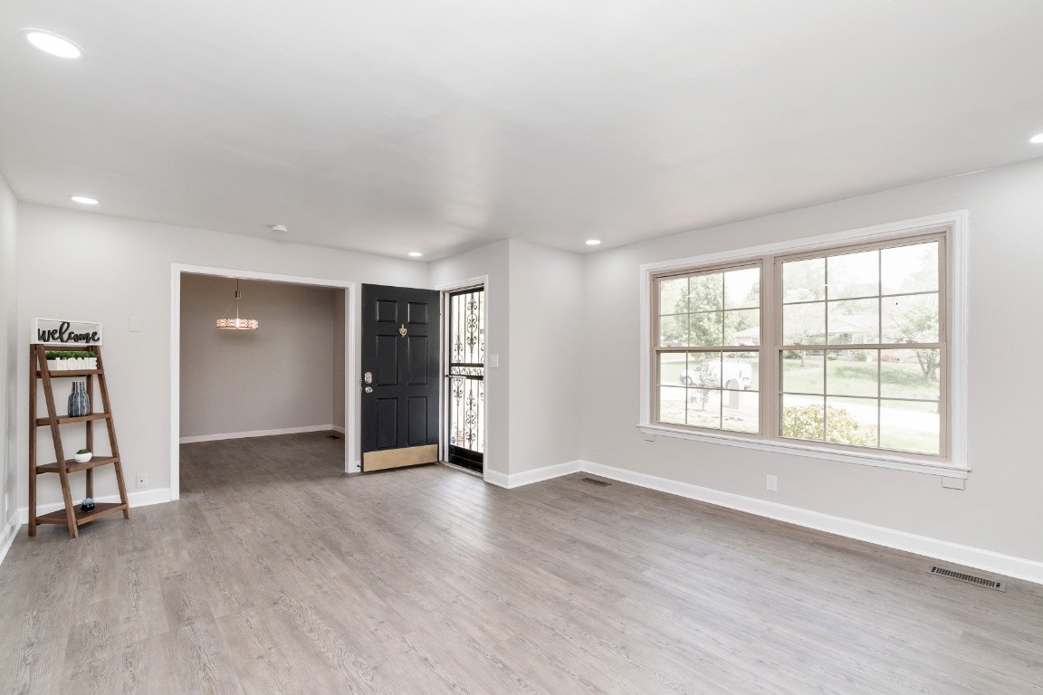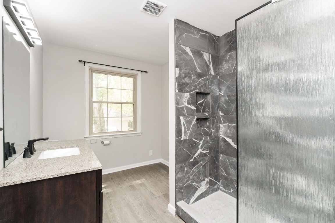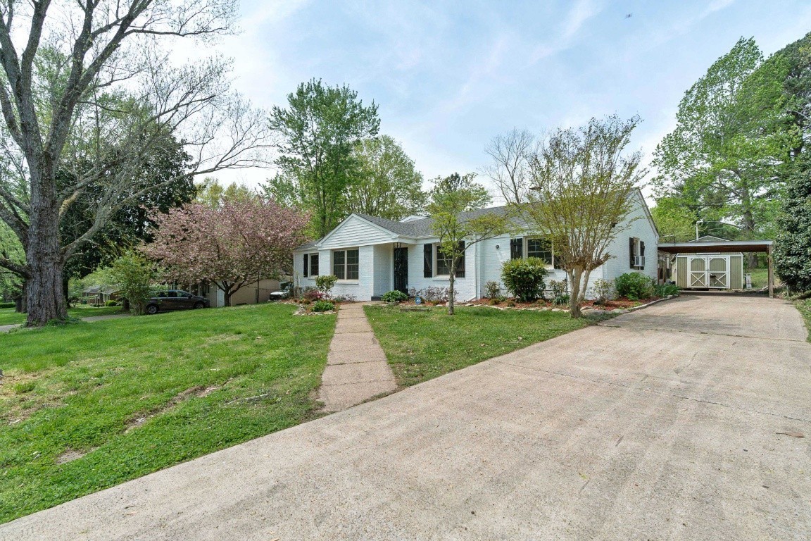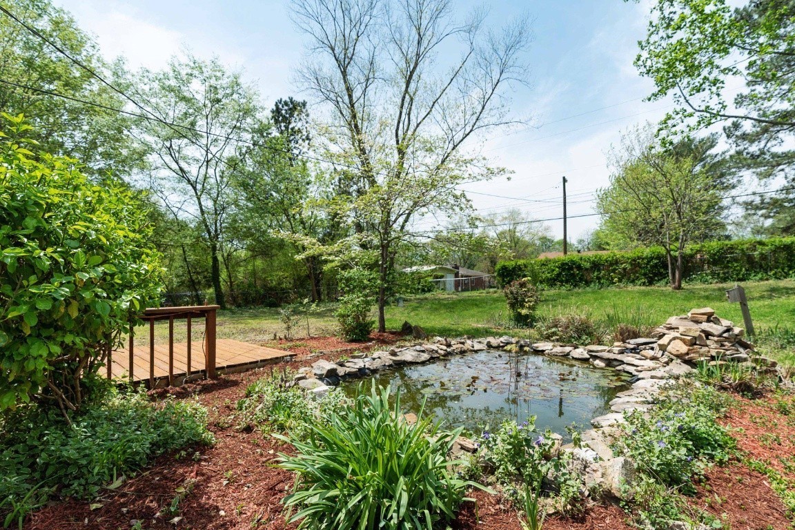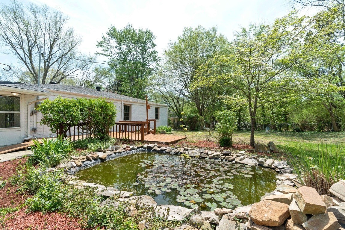 Spacious brick ranch home featuring 4 bedrooms and 3 full bathrooms, situated on a 0.4-acre level lot. The home includes a formal living room, dining room, and a flex room ideal for an office. The stunning, newly designed kitchen boasts quartz countertops and stainless steel appliances, including a refrigerator. The stylishly remodeled bathrooms feature elegant tile work, with the primary bathroom offering a large shower and Jacuzzi tub. Additional updates include new lighting fixtures, a spacious sunroom, and a deck that overlooks a beautiful yard with a lovely pond and running water. The home also has a tankless hot water heater. A storage shed is included. This prime location is close to Coy Lacy Park, shopping, and dining.