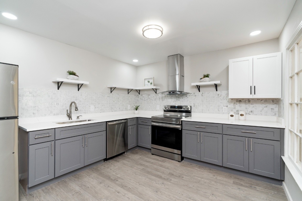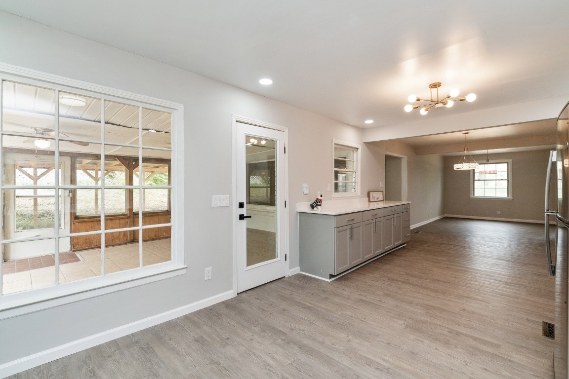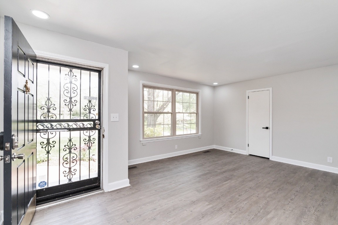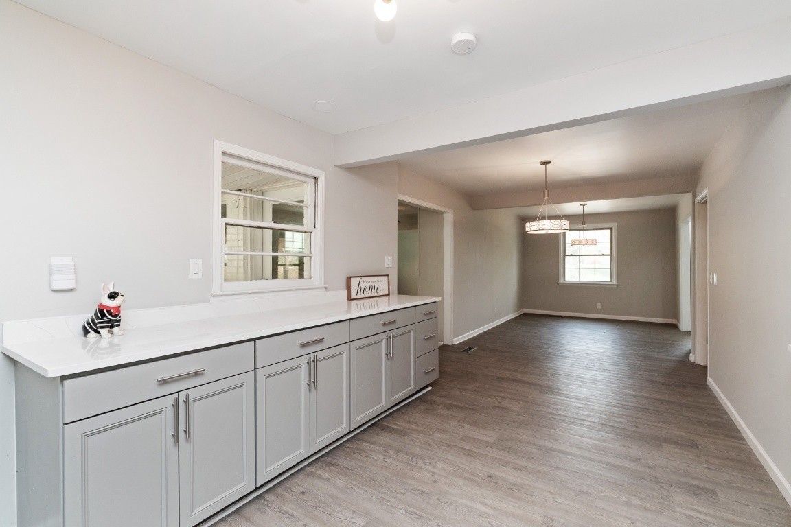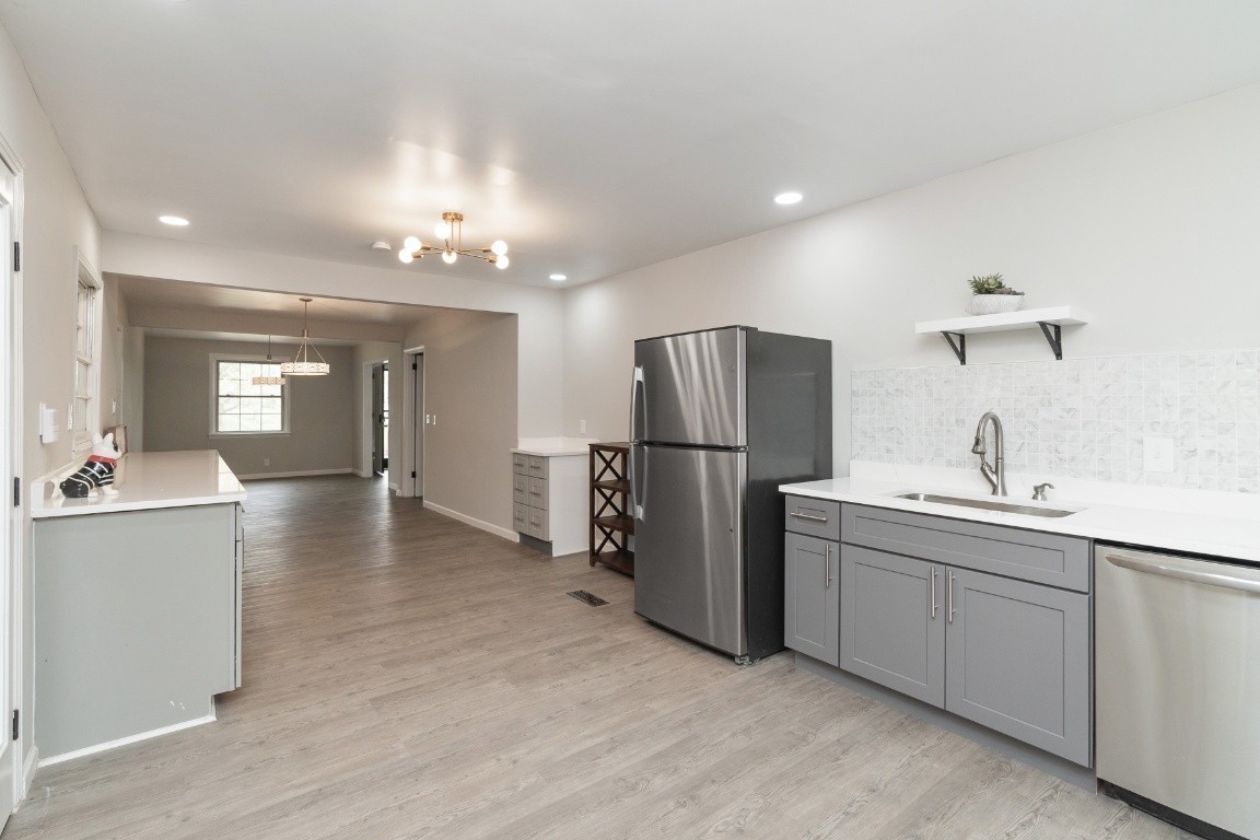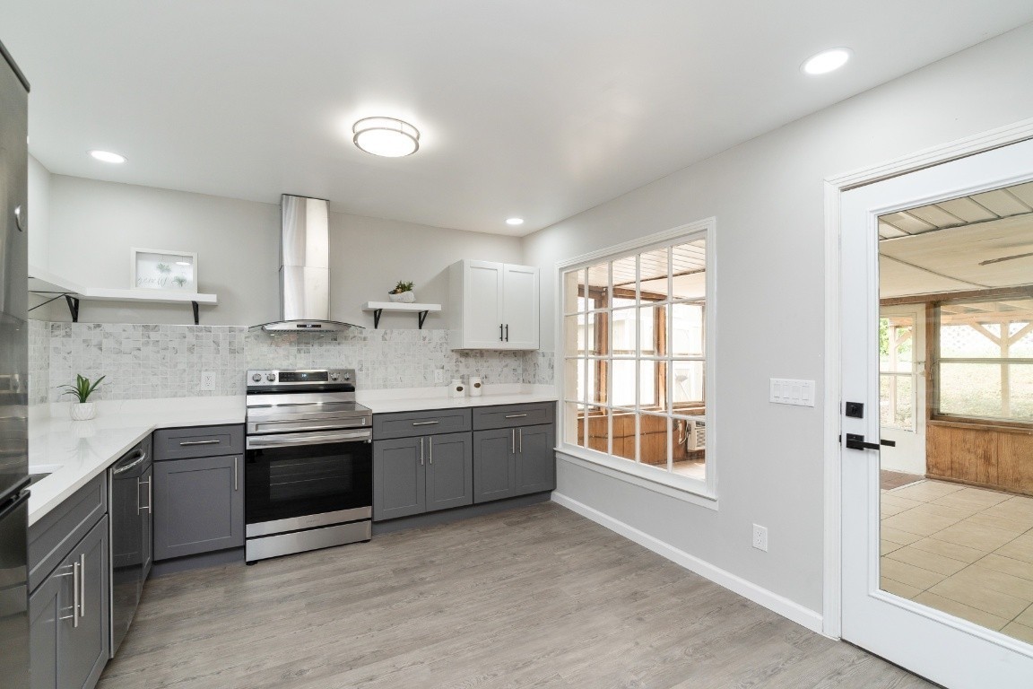 Spacious brick ranch home featuring 4 bedrooms and 3 full bathrooms, situated on a 0.4-acre level lot. The home includes a formal living room, dining room, and a flex room ideal for an office. The stunning, newly designed kitchen boasts quartz countertops and stainless steel appliances, including a refrigerator. The stylishly remodeled bathrooms feature elegant tile work, with the primary bathroom offering a large shower and Jacuzzi tub. Additional updates include new lighting fixtures, a spacious sunroom, and a deck that overlooks a beautiful yard with a lovely pond and running water. The home also has a tankless hot water heater. A storage shed is included. This prime location is close to Coy Lacy Park, shopping, and dining.