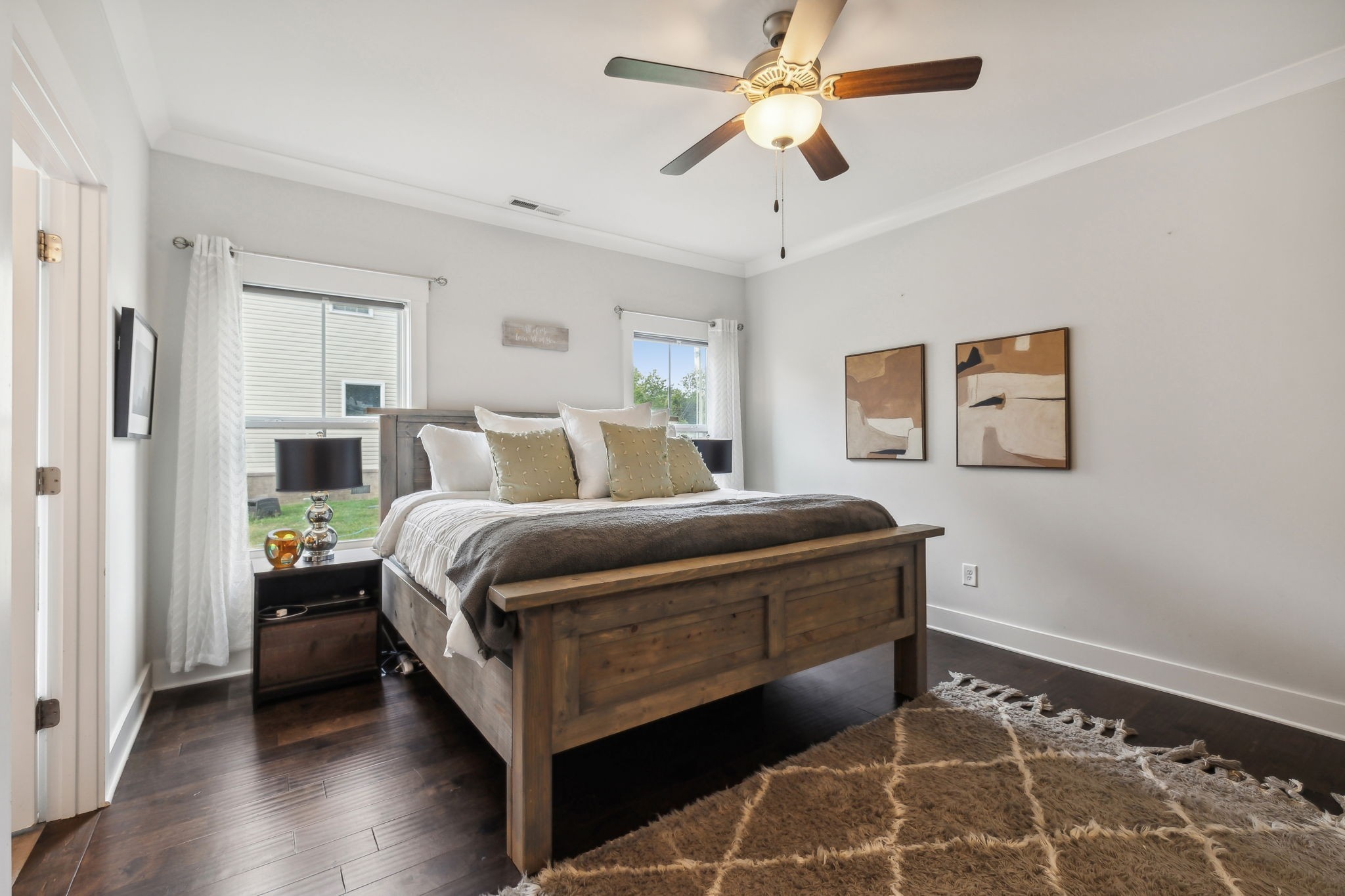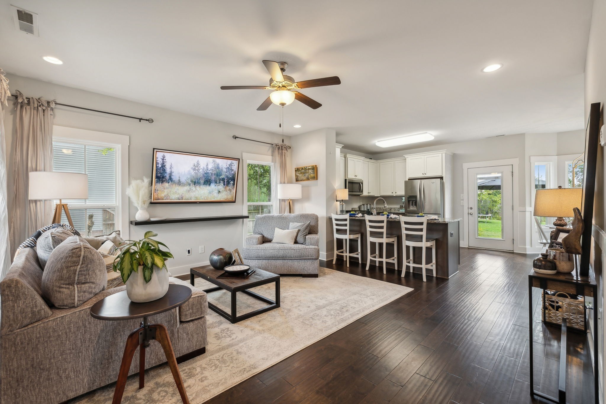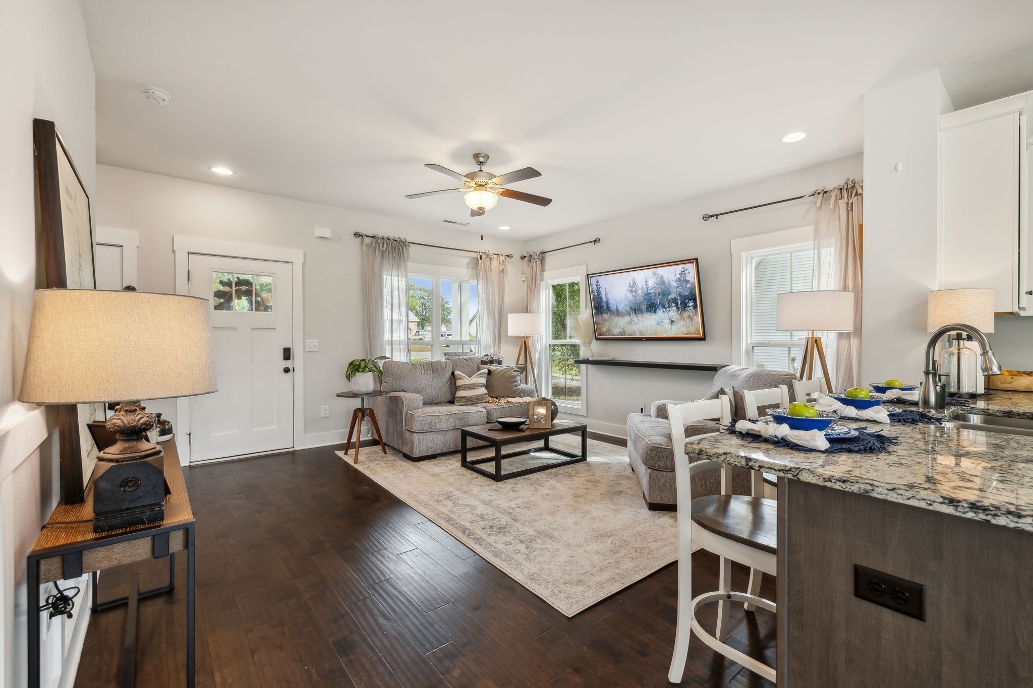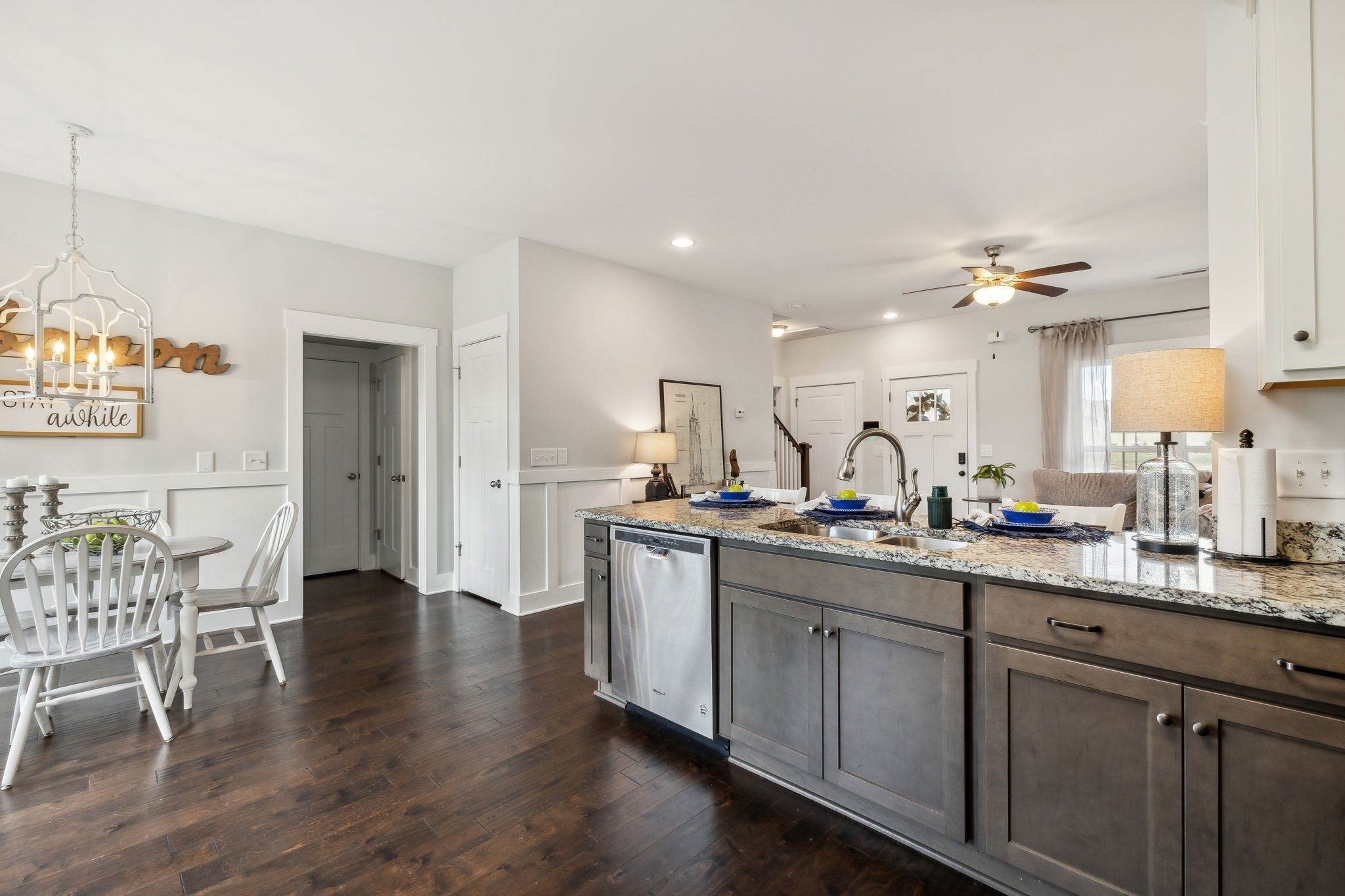 Discover your dream home in this stunning, newly built neighborhood complete with charming sidewalks. This exquisite 3-bedroom, 2.5-bathroom residence offers the perfect blend of modern comfort and style. The primary suite is conveniently located on the main level, providing easy access and privacy. Enjoy the elegance of hardwood floors throughout the main level, while the spacious, oversized bedrooms upstairs ensure ample living space for the entire family. Step outside to a large, level backyard, freshly sodded and perfect for outdoor activities. The kitchen is a chef's delight, featuring all stainless steel appliances and sleek granite countertops. Make this beautiful home yours today and experience the best in contemporary living.