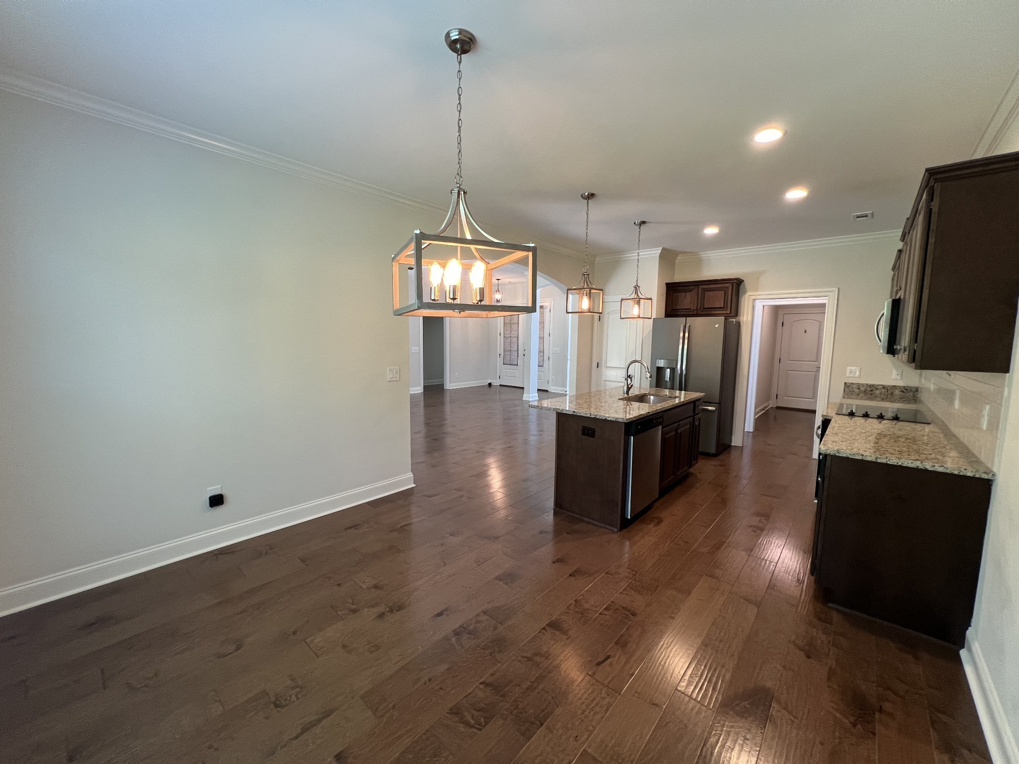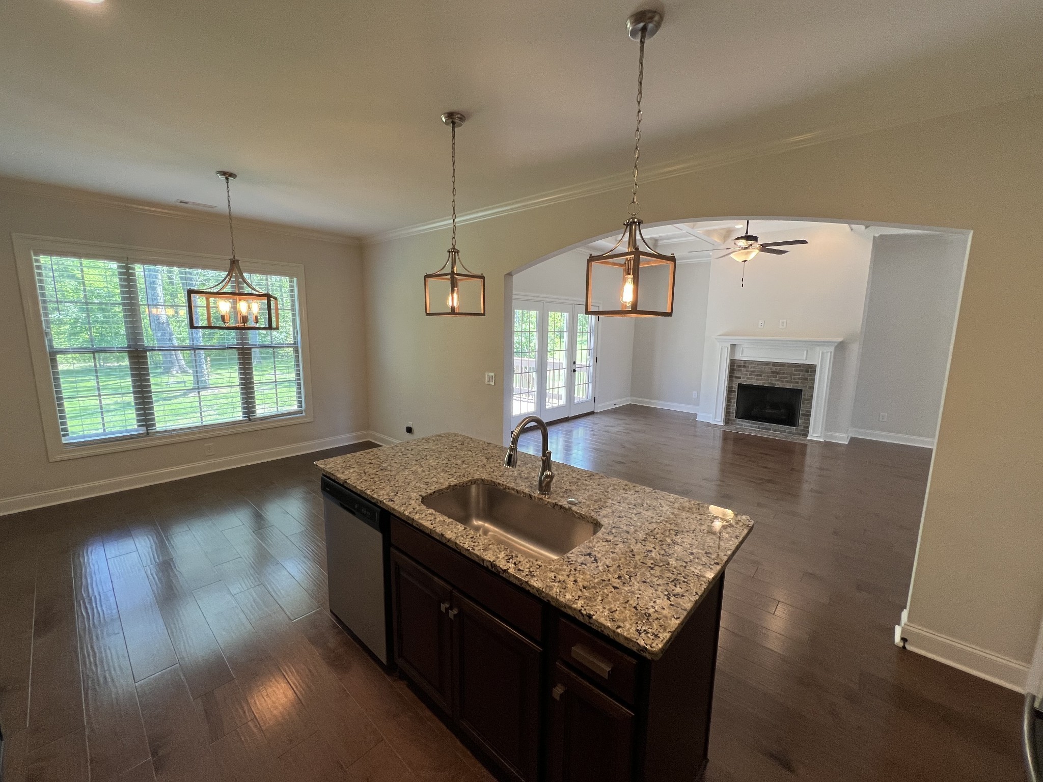 Beautiful home in lake front community. The Lily B plan features all three bedrooms on the main floor. Hardwood floors, granite counter tops, coffered ceilings and open concept living. Perfect layout for entertaining. Large bonus room above the garage. Lovely backyard with treed privacy on the back lot line. Watermill community features a community pool, green space and is minutes from Friendship Christian school, shopping and interstate 40. This home has been well maintained and is move in ready!