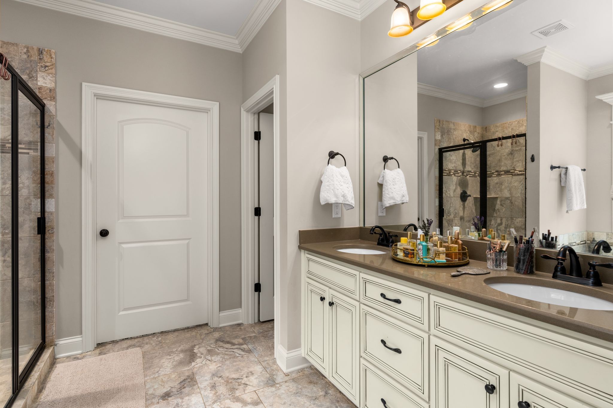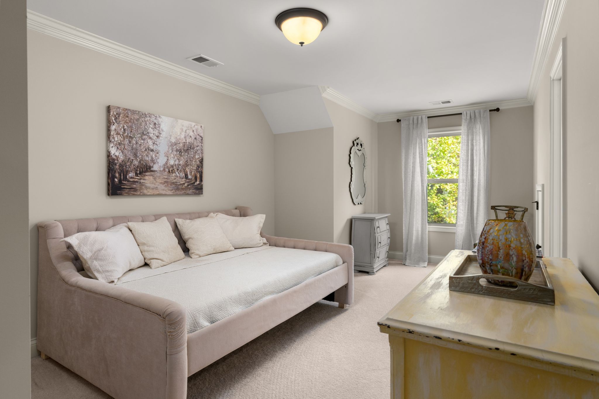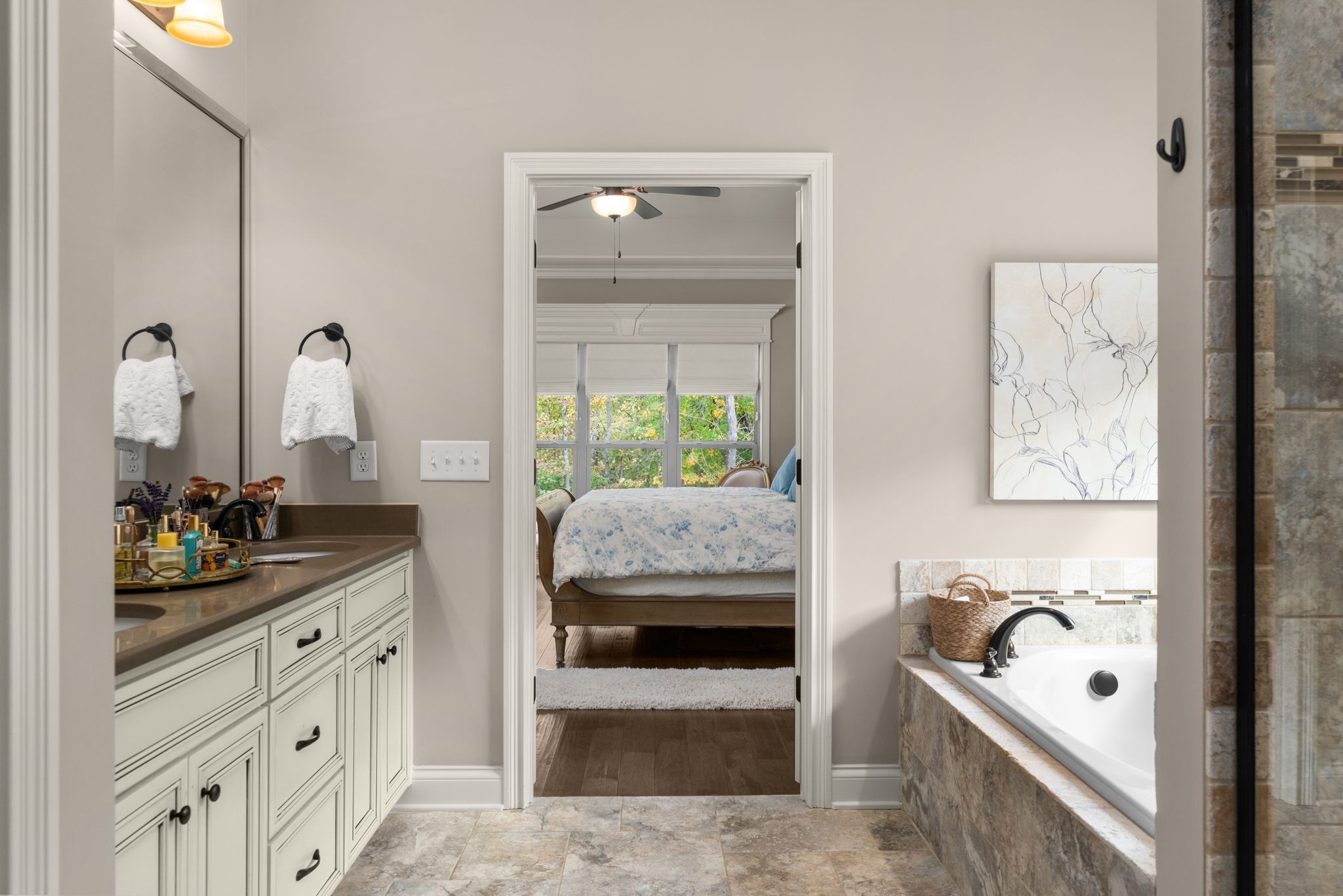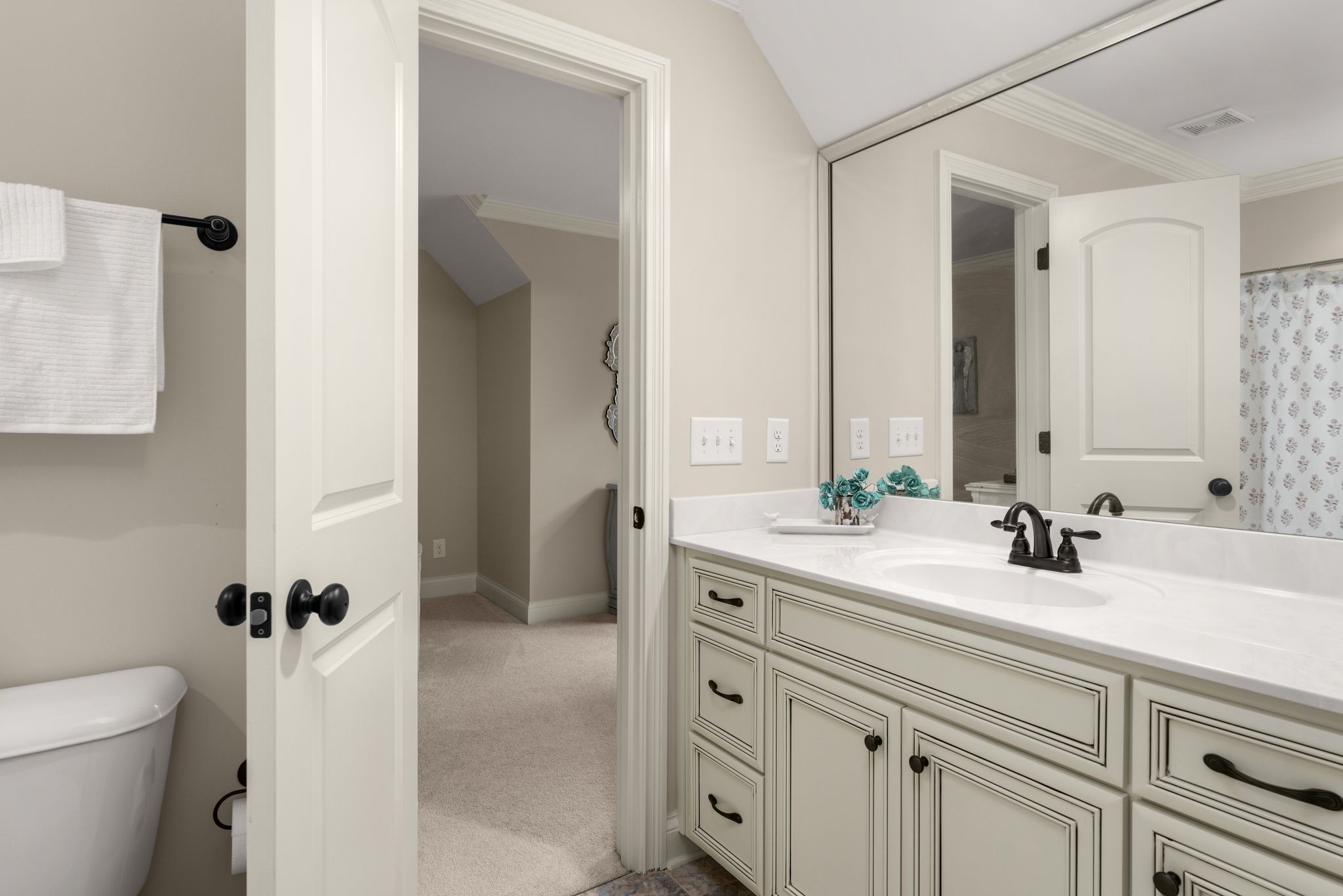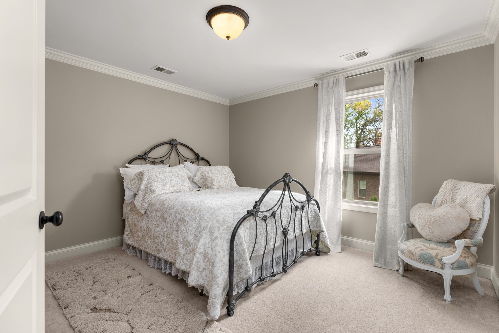 Don't miss this storybook home nestled on a private, wooded lot of nearly an acre, with a serene creek running through the property. This immaculate 4-bedroom, 2.5-bath residence has been thoughtfully updated with decorator-level finishes that lend a luxurious feel throughout. The main level boasts a spacious, open-concept layout, ideal for both entertaining and everyday living. The large kitchen serves as the heart of the home, featuring beautiful granite countertops, an island perfect for meal prep, and sleek cabinetry. Stainless steel appliances and abundant counter space make this kitchen as functional as it is stylish. Adjacent to the kitchen is a dining area that flows seamlessly into the living room, where a cozy gas-log stone fireplace adds warmth and ambiance. The main floor also includes the master suite, designed as a peaceful escape with ample natural light, and a luxurious en-suite bathroom with high-end finishes. An additional bedroom on the main level could serve as an office or guest room, adding flexibility to the home’s layout. Upstairs, you’ll find two spacious bedrooms that share a well-appointed bathroom, along with a media room that’s perfect for movie nights, gaming, or as a play area. A screened porch, open deck and open patio offers a tranquil retreat, allowing you to enjoy the surrounding nature in comfort. Outside, the beautifully landscaped, irrigated lawn extends to both the front and back of the property. For those who enjoy an active lifestyle, membership to the nearby Five Oaks Golf & Country Club offers access to golf, tennis, and pool amenities.