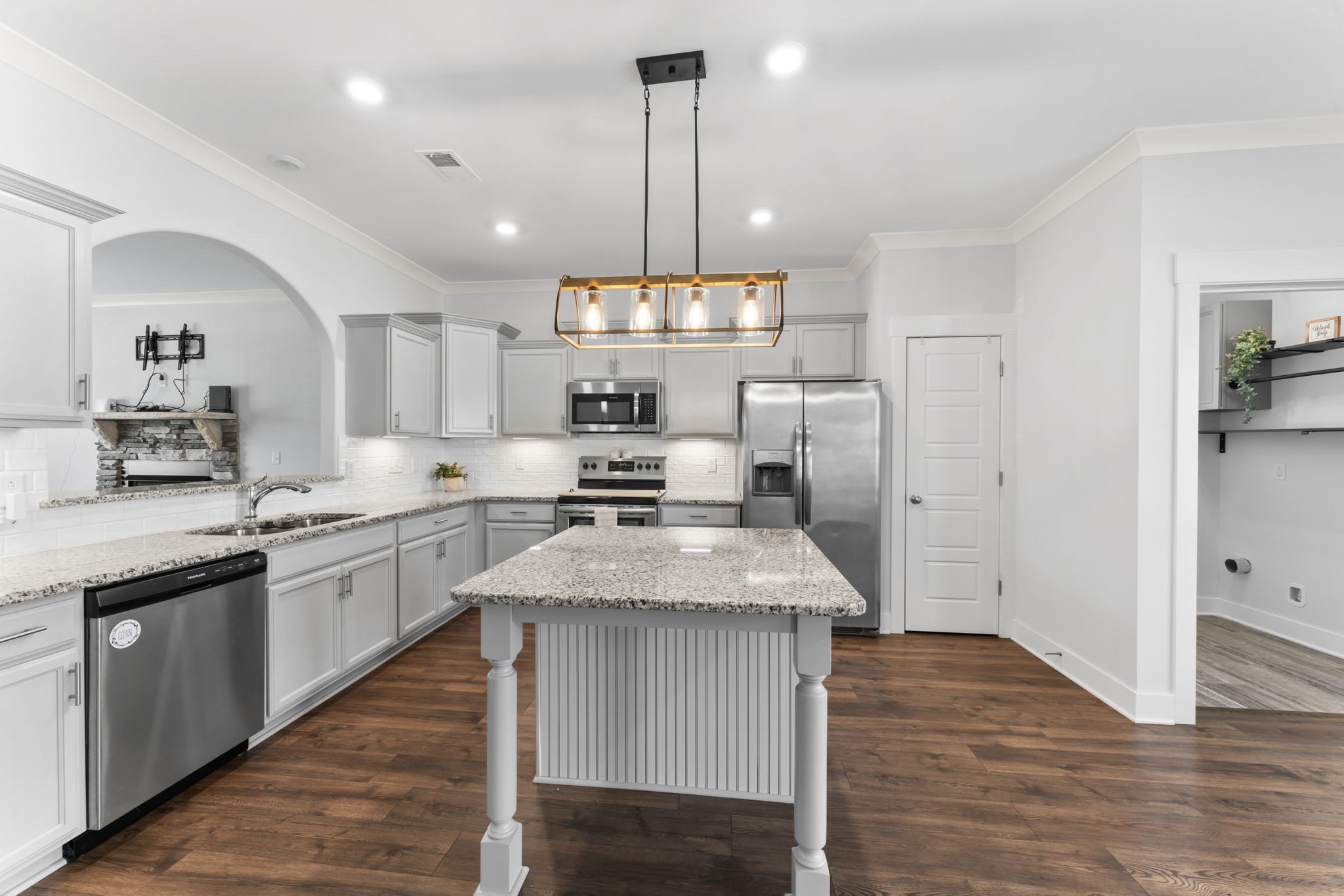 Welcome to Shelton Square! This gorgeous home in a peaceful subdivision has so much to offer. Starting in the cozy living room w/ a gas fireplace. Leading into a spacious kitchen w/ granite countertops, an island, and a pantry, stainless appliances, including the refrigerator. The master bedroom boasts a large closet, extra storage closet, and a bathroom w/ double vanity, a soaker tub, and separate shower. Walk up the stairs and find an oversized bonus room (fireplace will remain), 2 equally sized bedrooms w/ large closets. LVP flooring throughout with detailed trim work, and faux wood blinds on windows. Step out the back door to a covered patio w/ a natural gas line for your grill, and plenty of space for entertaining, a fenced in backyard to keep the fur babies in. Driveway is widened! Security system conveys w/property. 1% of purchase price lender credit, up to $5000 possible, when using preferred lender. Call lender for details. Hot tub and pool table do not convey.