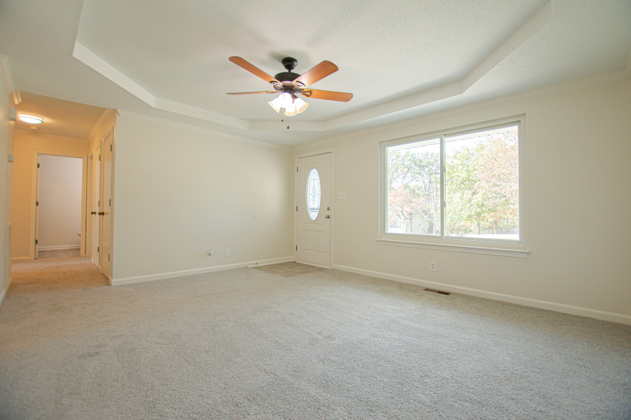 Welcome to this charming three-bedroom, two-bathroom ranch home! Step into a spacious living room featuring an elegant tray ceiling, perfect for gatherings and relaxation! The eat-in kitchen offers both convenience and a cozy space for meals! Retreat to the primary suite, where you’ll find a beautiful bay window that fills the room with natural light, along with a full, private bathroom! Outdoors, enjoy a great deck area, ideal for entertaining, overlooking a fully fenced yard that provides privacy and plenty of space for outdoor activities!