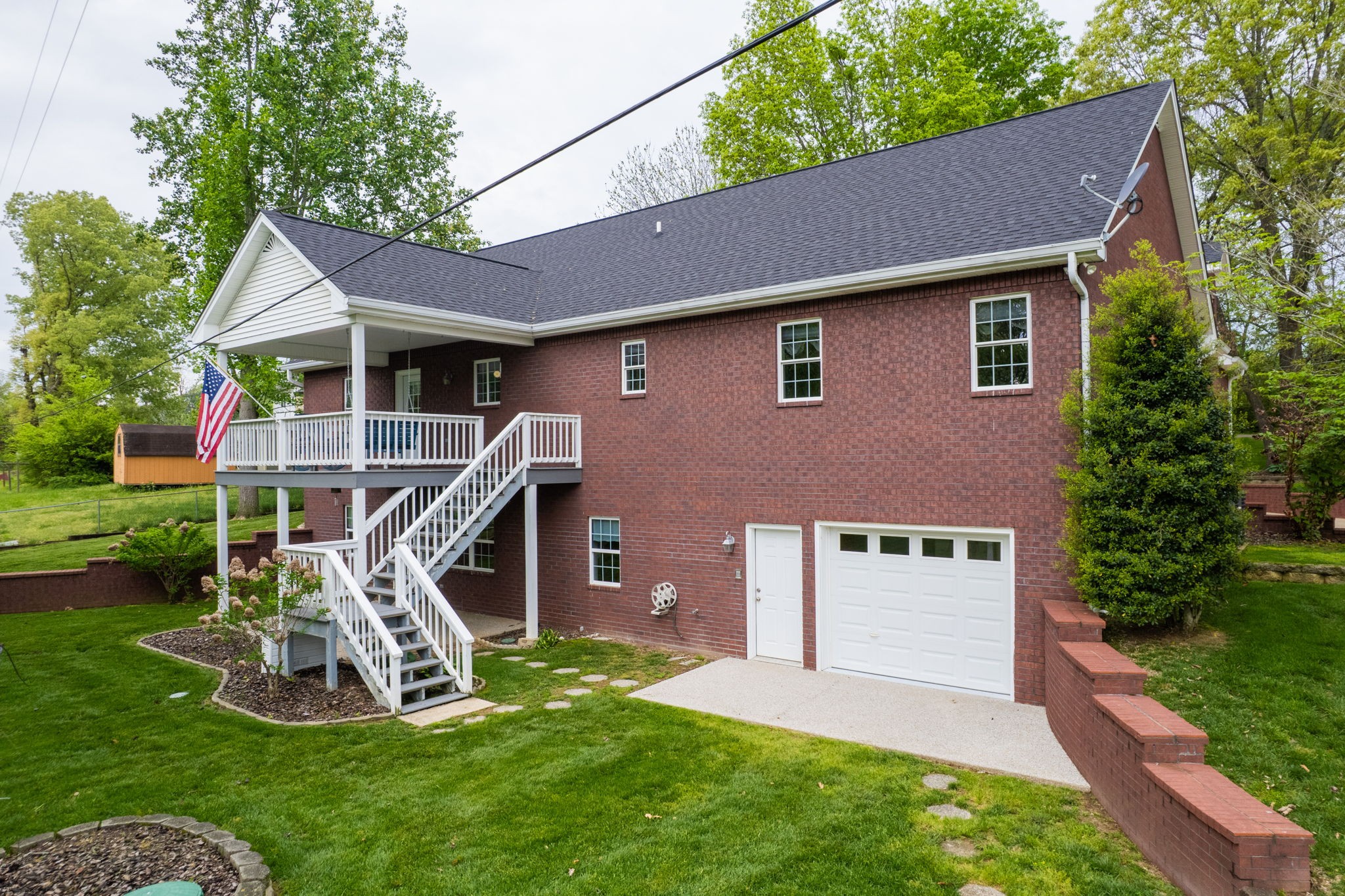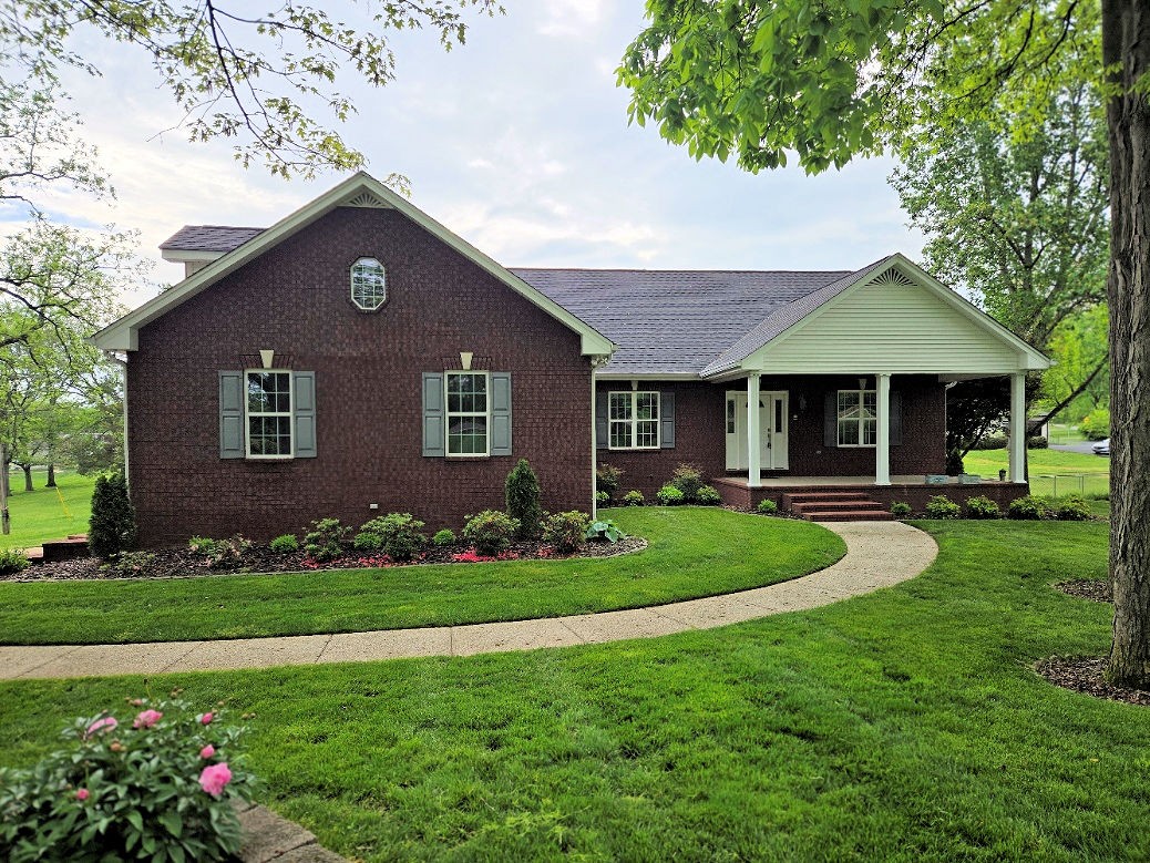 Beautiful well maintained custom-brick home. Enter home through foyer on the main level into approximately 2500 sq. ft. of living space, completed with a formal living and dining room. Custom cherry cabinetry in kitchen, quarts countertops, bar style seating and built in desk. Open family room/kitchen/desk area. The first-floor primary has a master-suite with a double vanity, separate whirlpool tub and step in shower. Roomy utility room. Convenient access to an upper-level deck from the Kitchen. The bonus room is on the second level, with a built-in desk and large storage access to the attic. There is plenty of room for expansion in the unfinished attic area. The lower level can be used as an in-law suite. Garage comes workbench and shelves and plenty of storage. Meticulous landscaping and raised garden bed. Main level is constructed with 2 x 6 walls for great insulation. New Goodman Heat pump installed in 2023, Leaf filter on all gutters and yard irrigation system. Included with the home: All window treatments, Deck furniture (swing and 2 rockers), Kitchen stools, and hanging light in living room. NOTE: Home has 4 possible bedrooms, but only perc’s for a 3 bedroom. FLOOR-PLAN IN PHOTO SECTION