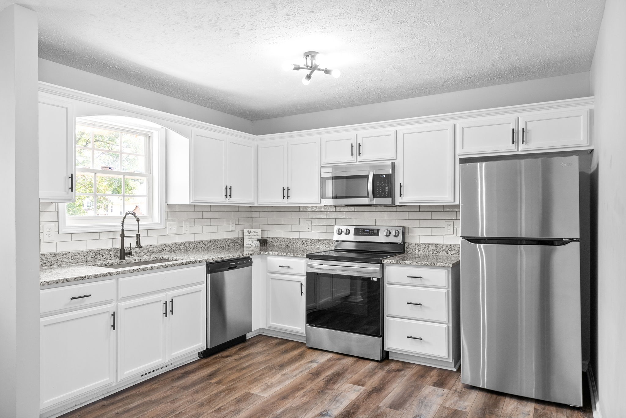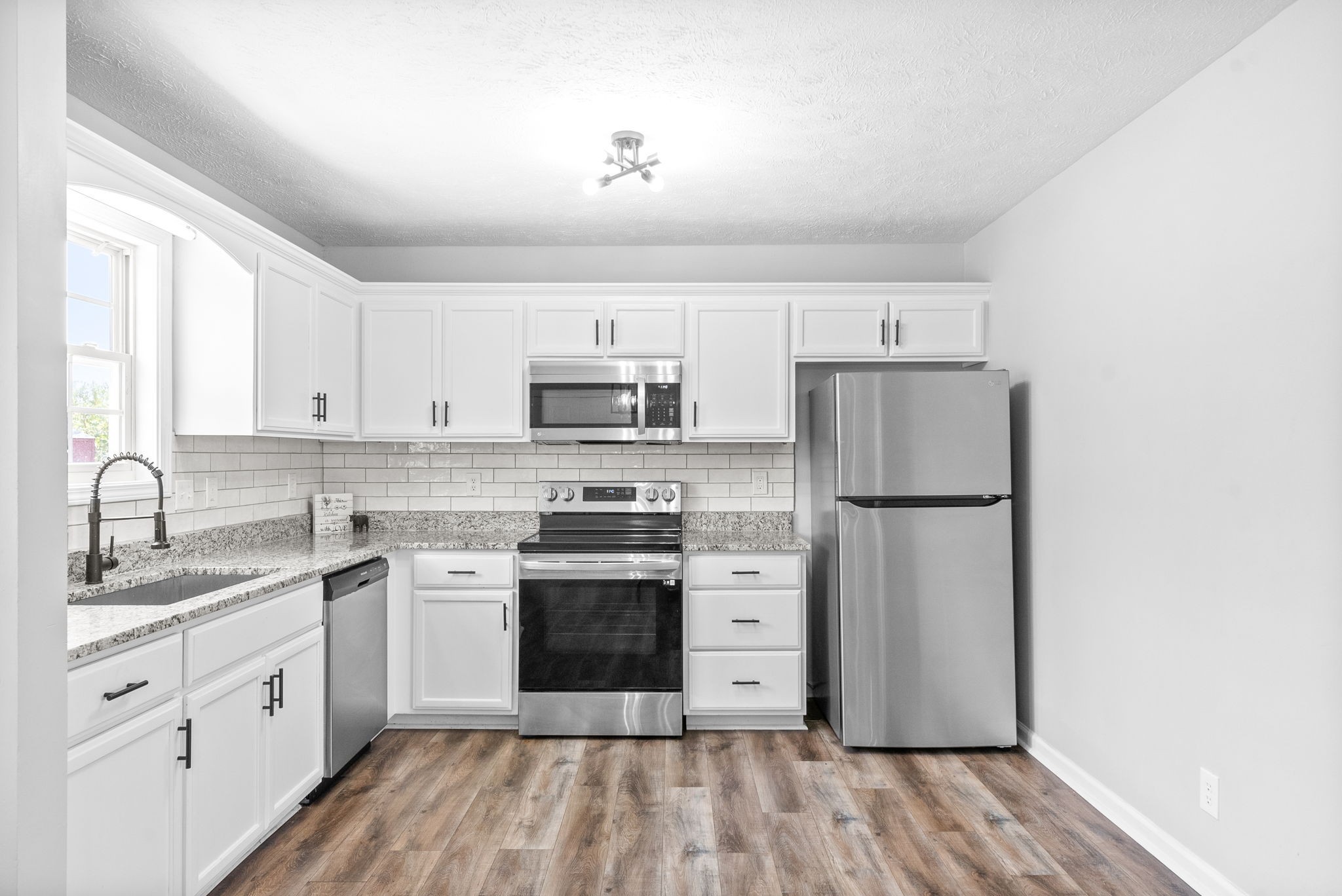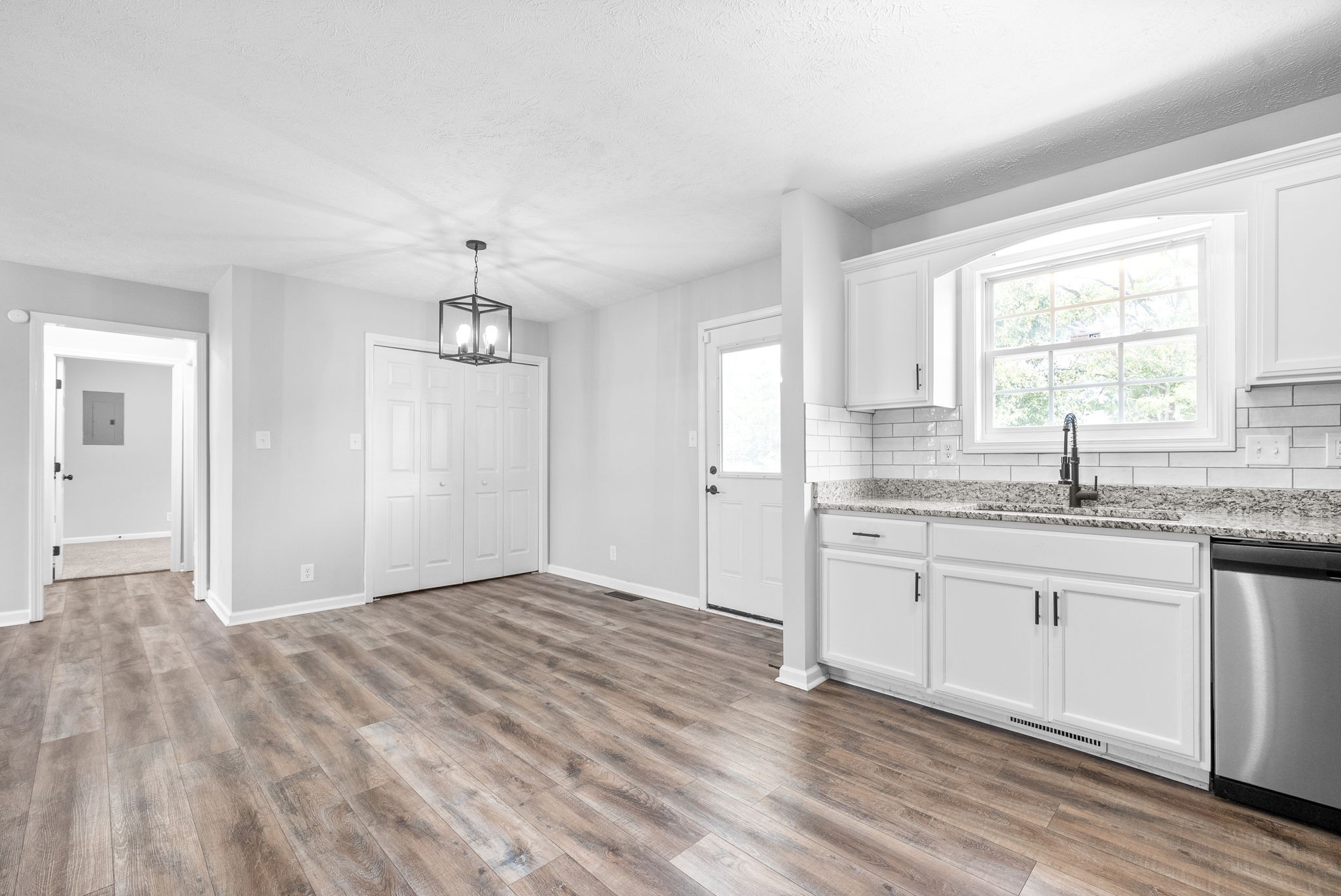 This updated single-story home offers modern style and comfort. The open layout is bright and inviting, with granite countertops, subway tile backsplash, and Energy Star appliances in the kitchen.