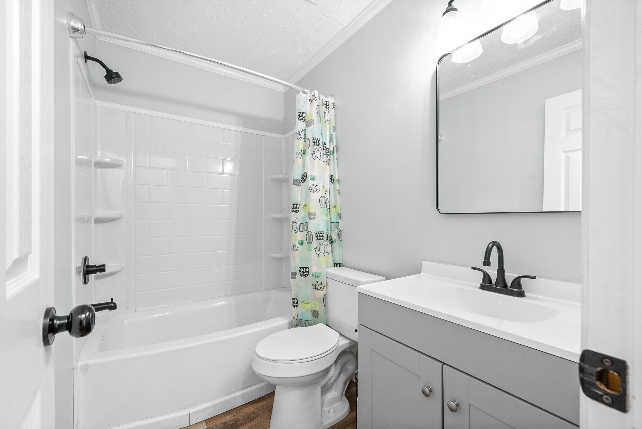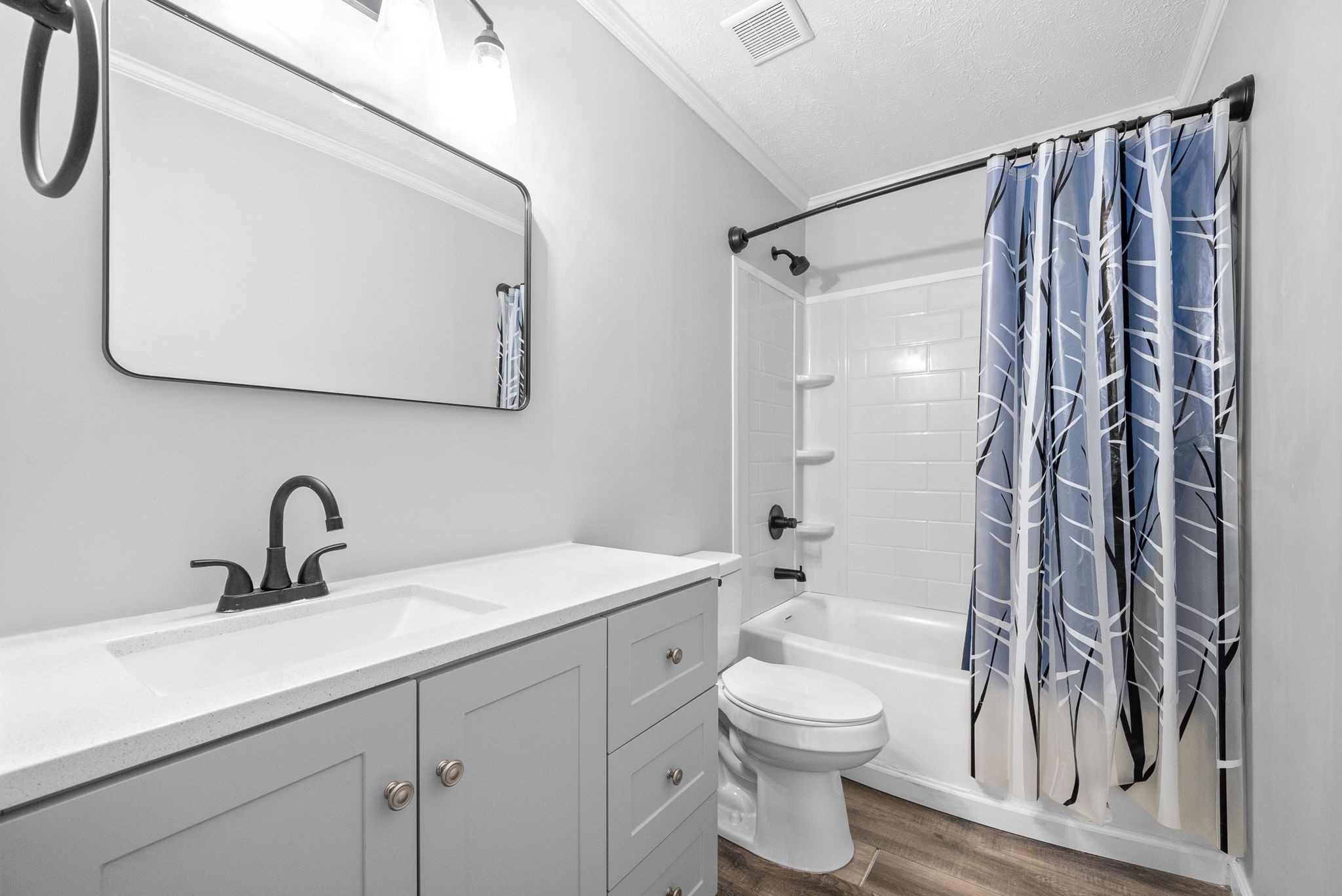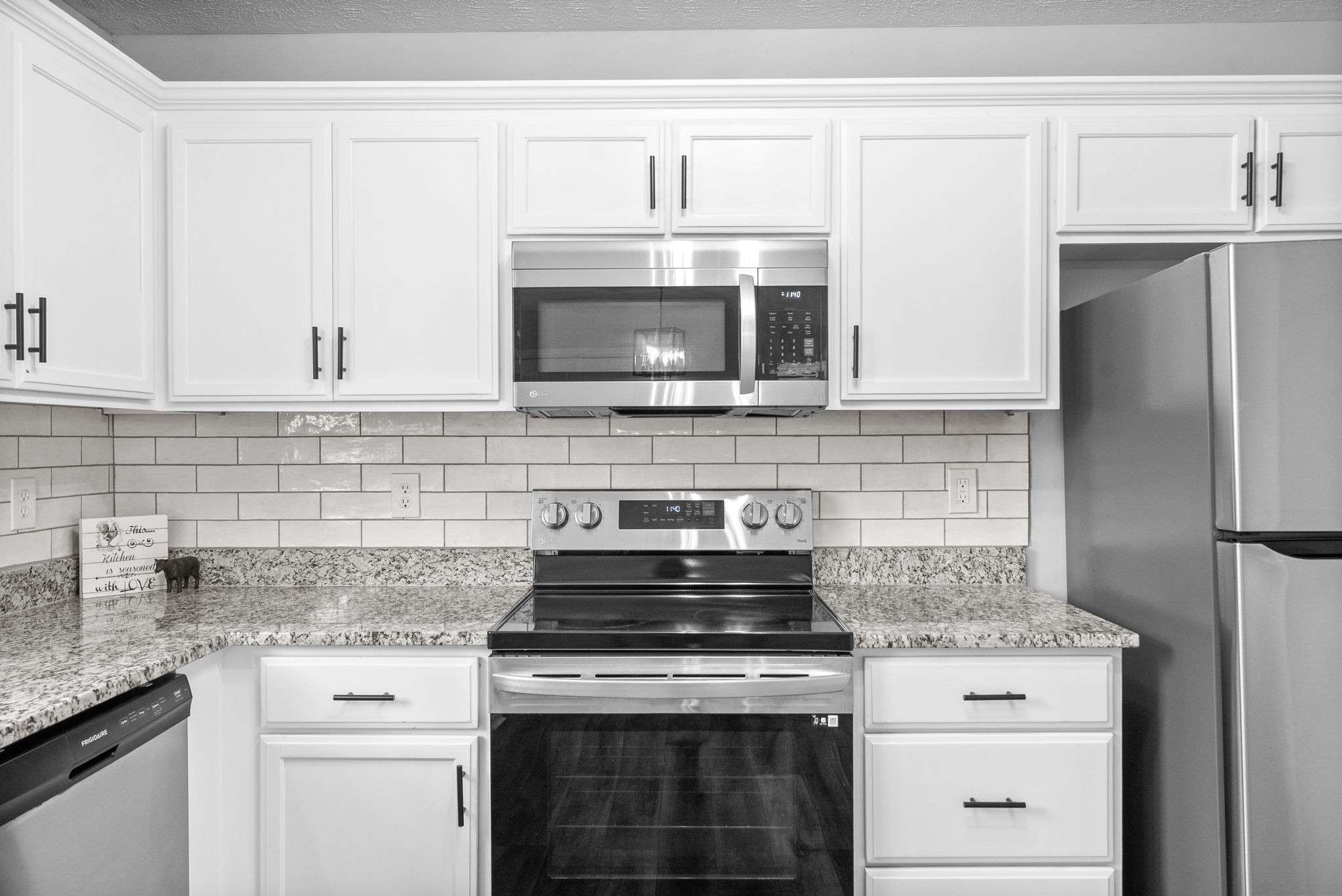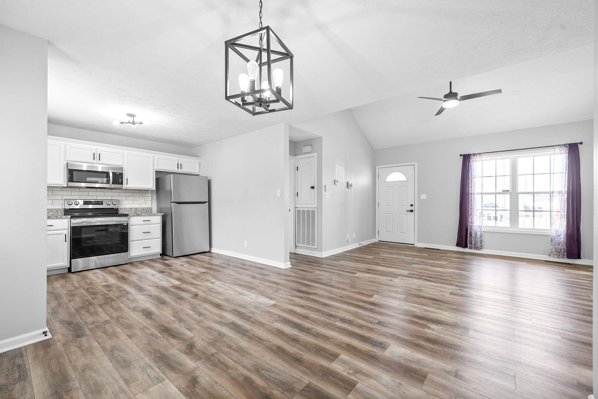 This updated single-story home offers modern style and comfort. The open layout is bright and inviting, with granite countertops, subway tile backsplash, and Energy Star appliances in the kitchen.