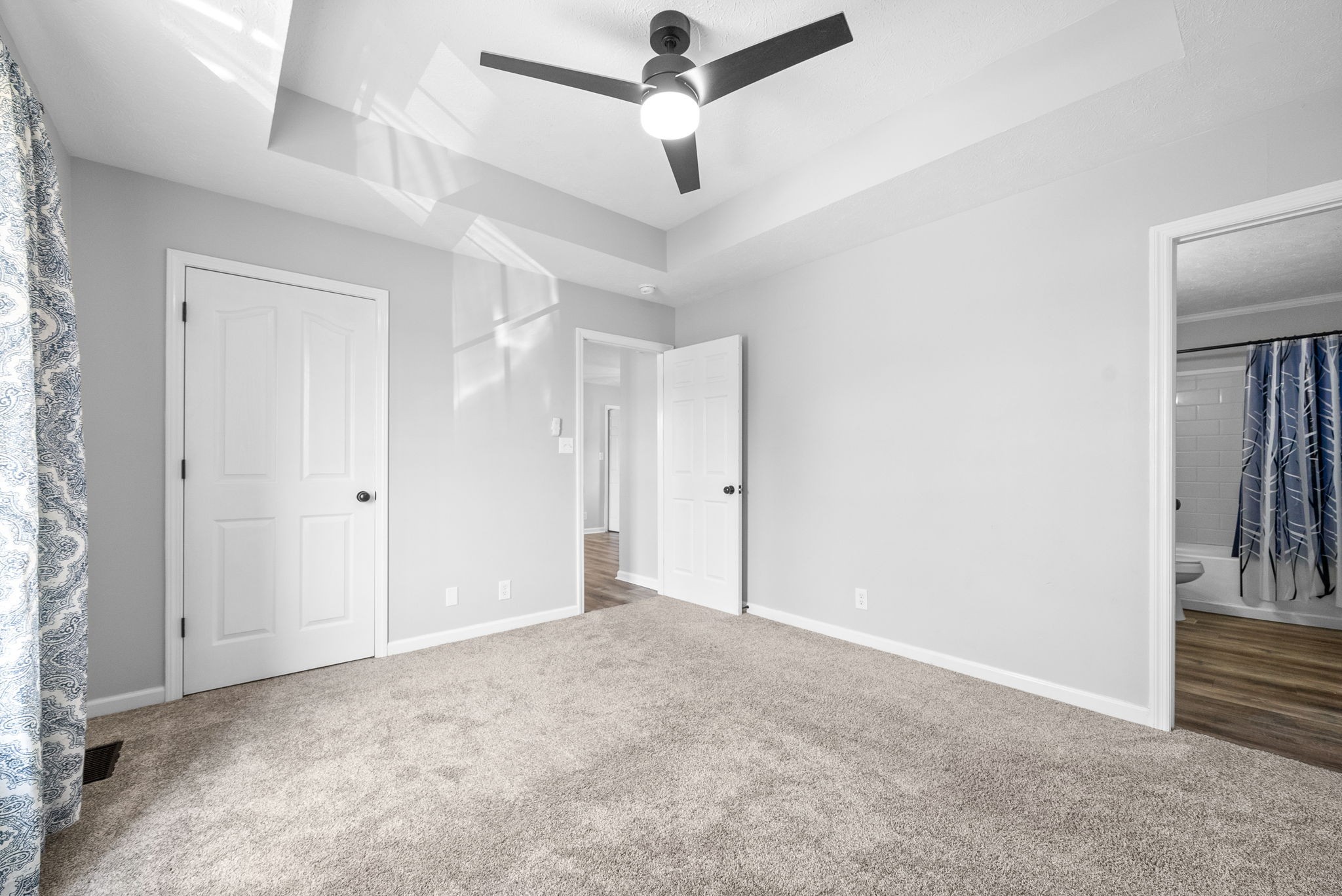 LVP flooring runs throughout the main living areas. The primary suite features a tray ceiling, walk-in closet, and updated ensuite.