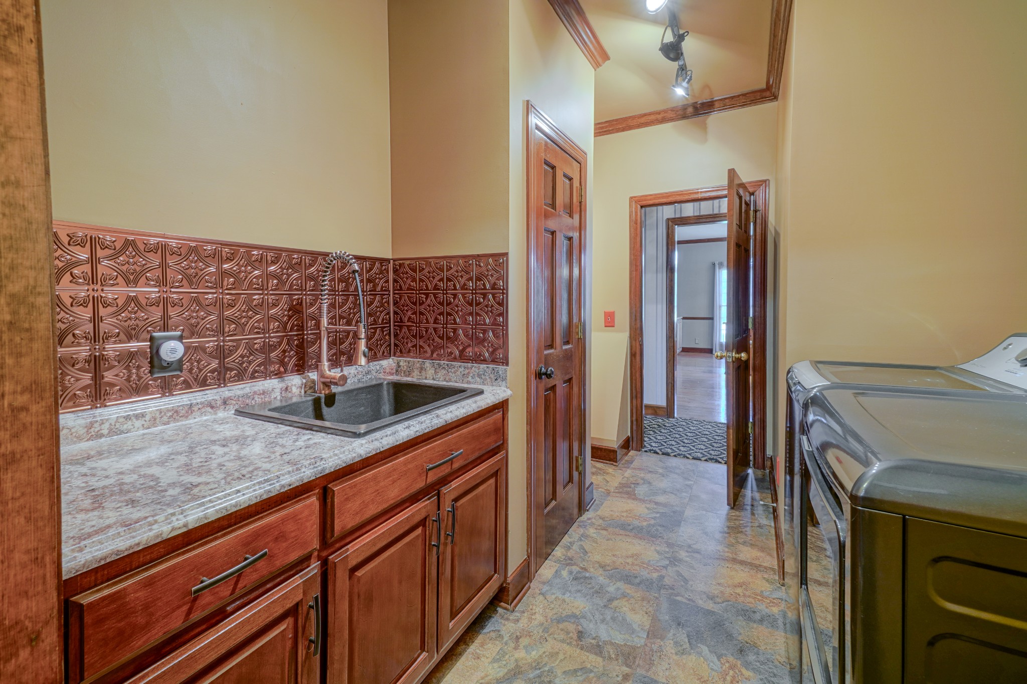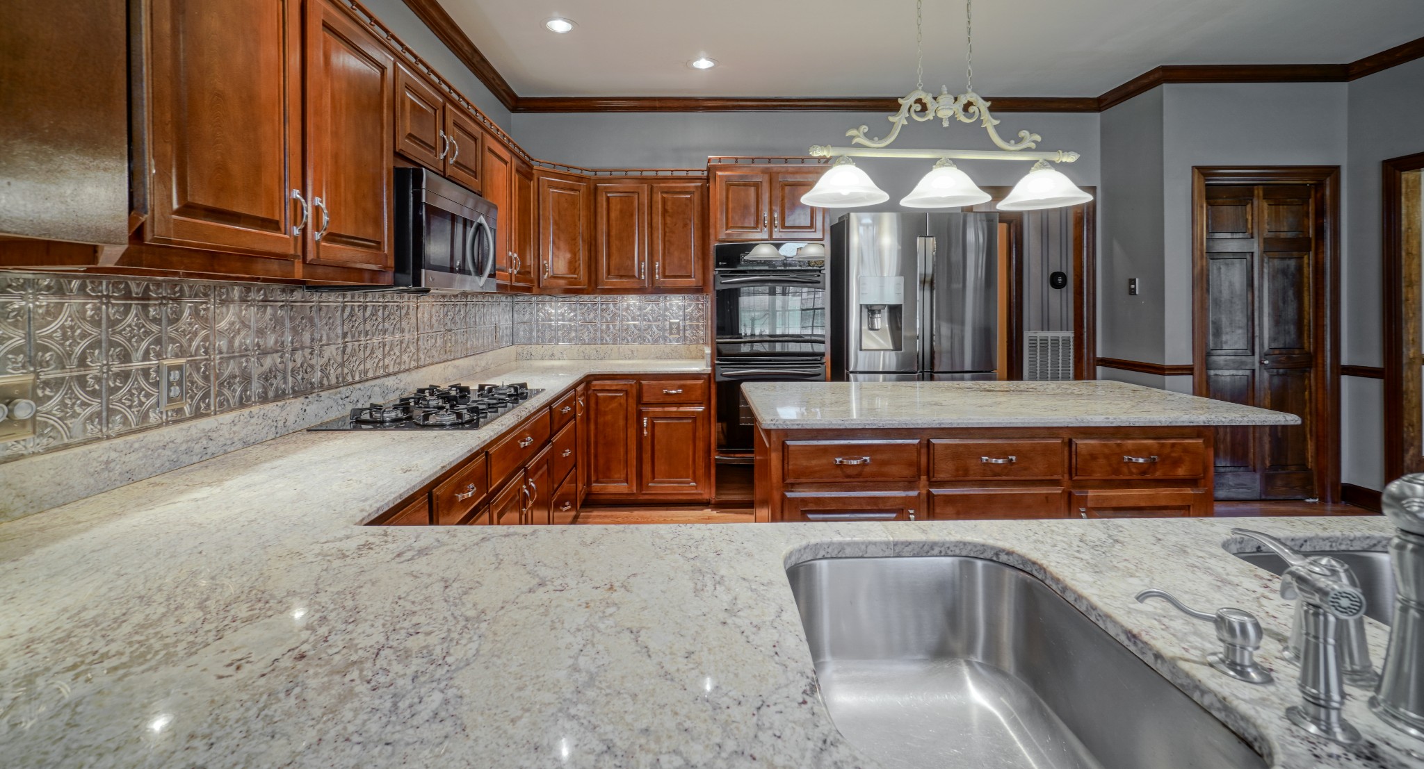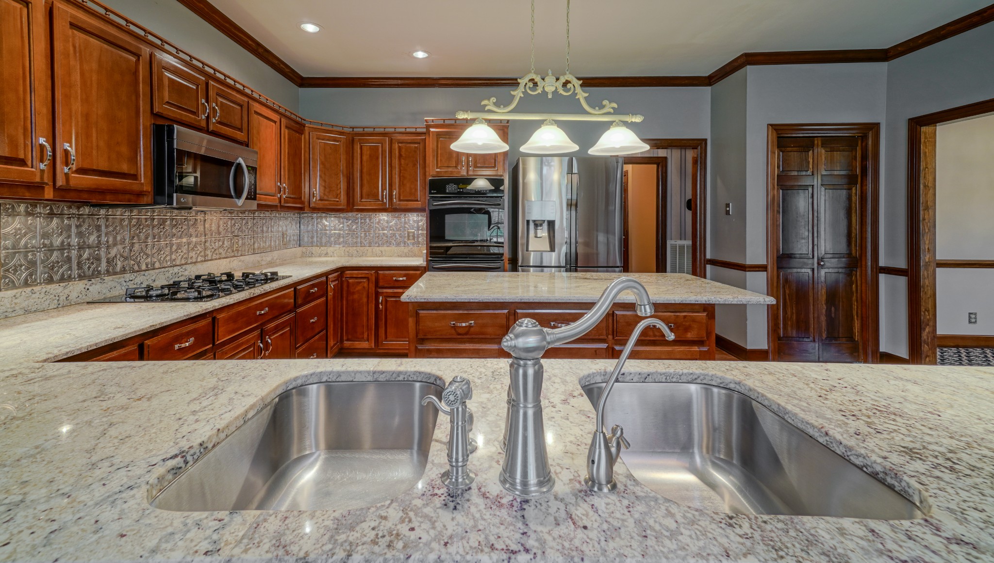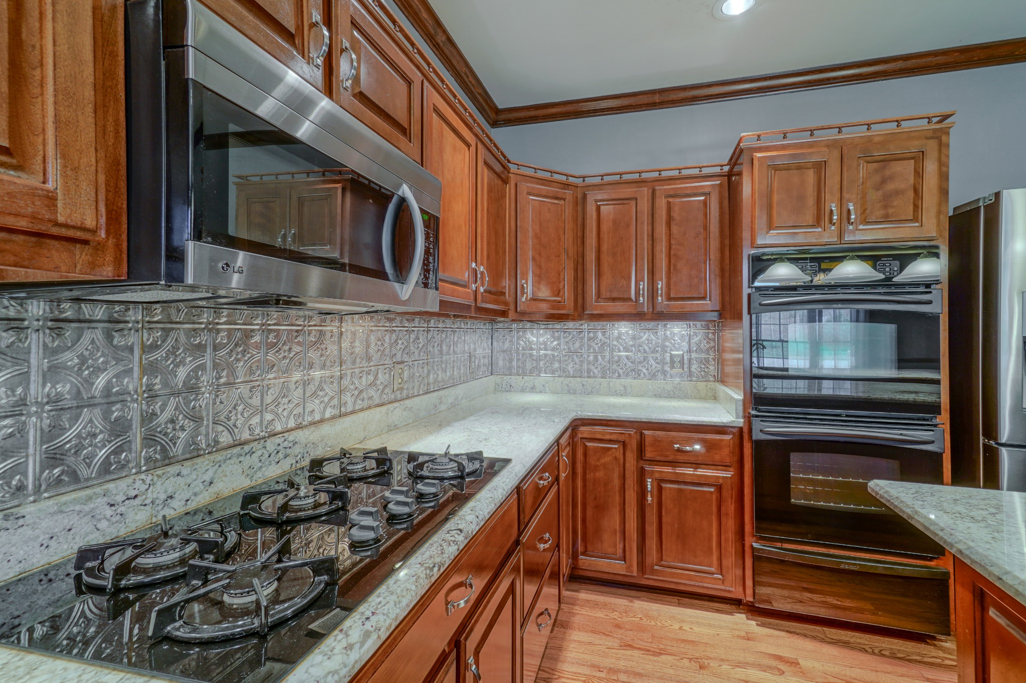 - AppliancesBuilt-In Electric Oven, Double Oven, Gas Range, Dishwasher, Disposal, Dryer, Microwave, Refrigerator, Stainless Steel Appliance(s), Washer