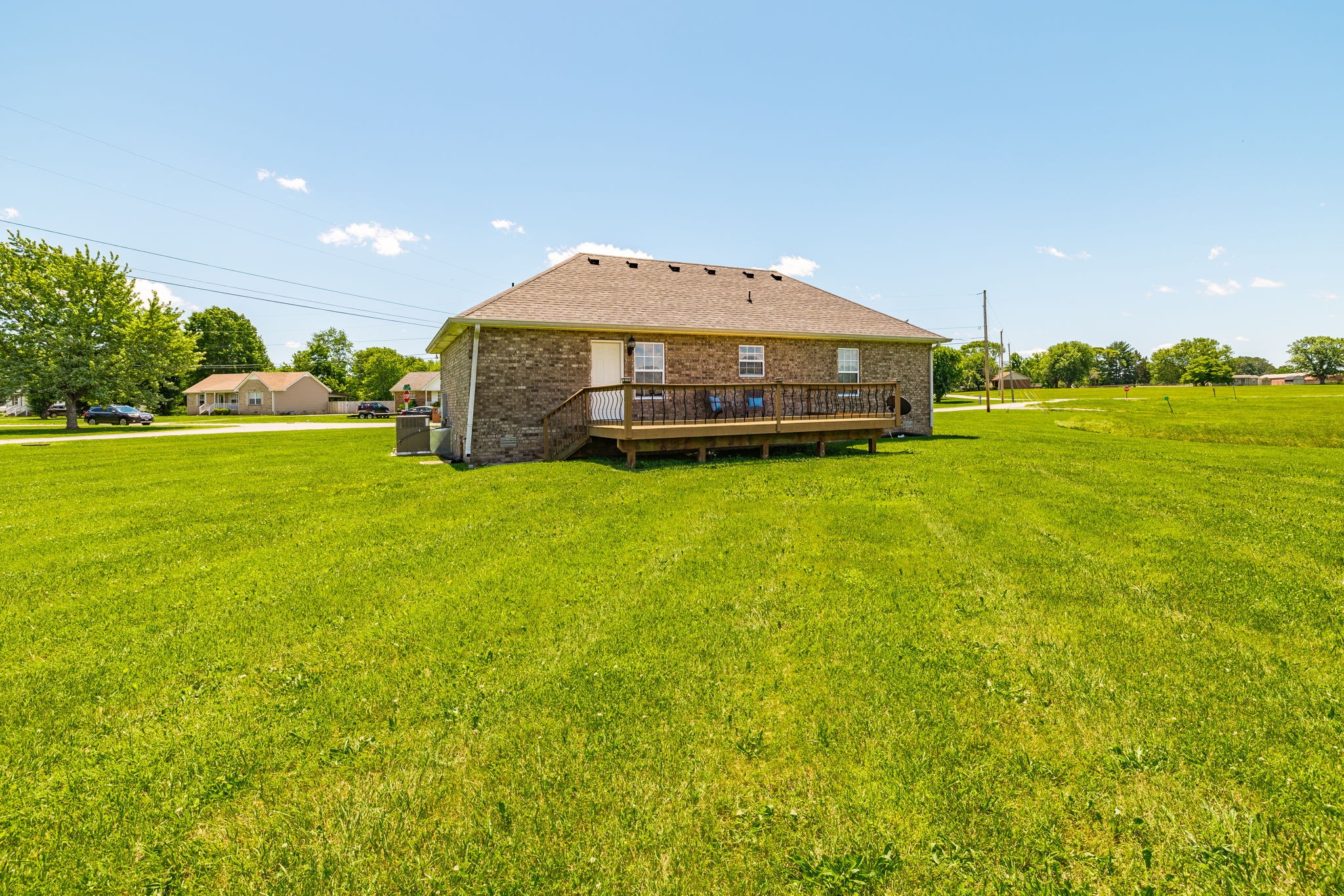 This charming 3-bedroom, 2-bath one-level home sits on a spacious 0.56-acre lot and offers the perfect blend of comfort, function, and move-in-ready convenience. With fresh paint and brand-new carpet throughout, all the work has been done—you can simply move in and start enjoying your new home. Step inside to a large living room that provides an inviting space to relax, unwind, or entertain. The generously sized eat-in kitchen is ideal for everyday living and gatherings, featuring abundant cabinet and counter space, a pantry, and plenty of room for a dining table. The thoughtful split-bedroom layout ensures privacy, with the primary suite located on one end of the home and the two guest bedrooms on the other. The primary suite includes a spacious bedroom, a full bathroom, and ample closet space. The secondary bedrooms are equally comfortable, with easy access to the second full bath. Just off the kitchen, you'll find a large deck overlooking the expansive backyard—perfect for morning coffee, weekend grilling, or simply enjoying the open space. With over half an acre, there’s room to garden, play, or expand your outdoor living. Whether you're a first-time buyer, downsizing, or looking for a home with room to grow, this thoughtfully designed home offers incredible value and comfort. Don't miss your chance to make it yours!