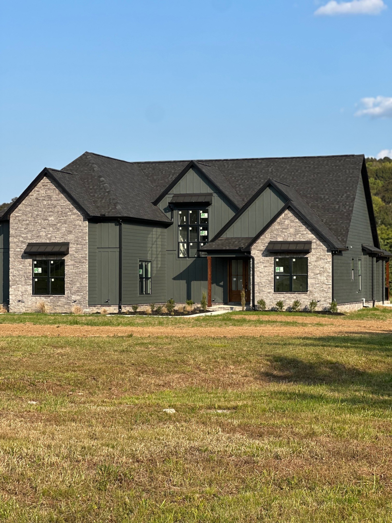 Stunning new build on 6.54+- acre lot w/ level lot. Upon entry you will be welcomed into the foyer showcasing elaborate trim work & an open staircase. Large eat in kitchen w/ quartz countertops, back splash, massive island w/ double depth cabinetry, white cabinets, SS appliances, double oven, pot filler, gas stove w/ custom hood & pantry. Solid hardwood flooring throughout main level, Living room boast "X" coffered ceiling & brick fireplace w/ gas logs, Main level primary ensuite with exposed beams, walk out door to back porch, double sink quartz vanity, walk in tiled shower, floating soaker tub, custom closet that connects to the utility room. Addt'l main level BR with full bath, 2nd level bedrooms share a Jack and Jill bath, vaulted ceiling bonus room w/ wet bar, and a 1/2 bath for guest. The back porch is perfect for entertaining w/ a gas logs fireplace, direct entry door to a 1/2 bath, grilling pad,& tongue & groove wood ceiling. Tankless WH & Concrete driveway!