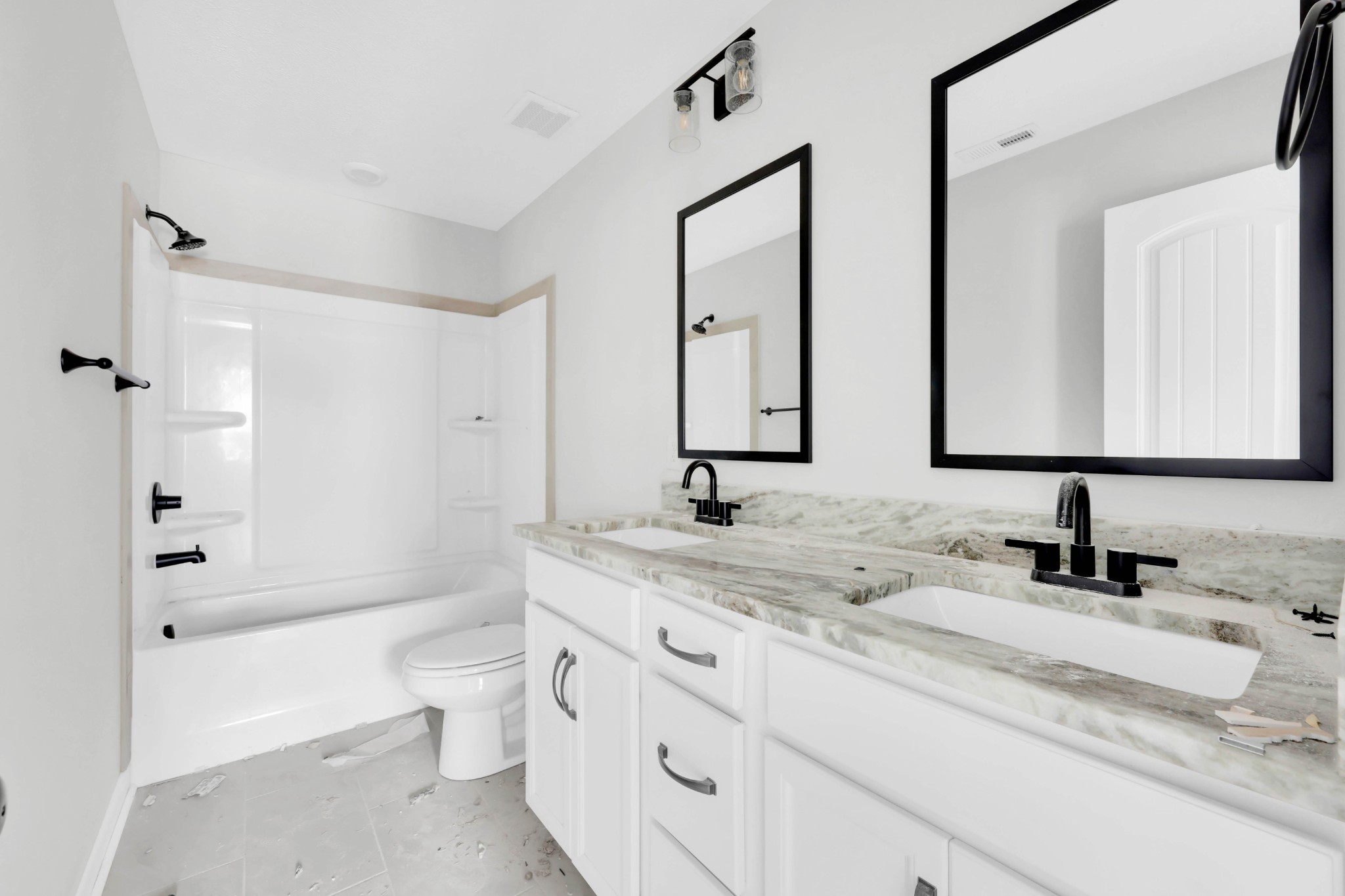 This popular floorplan offers an open-concept design perfect for modern living. The living room features a cozy fireplace and laminate flooring, while the kitchen impresses with custom cabinetry with soft-close drawers, stainless steel appliances, granite countertops, tile backsplash, and a spacious walk-in pantry.