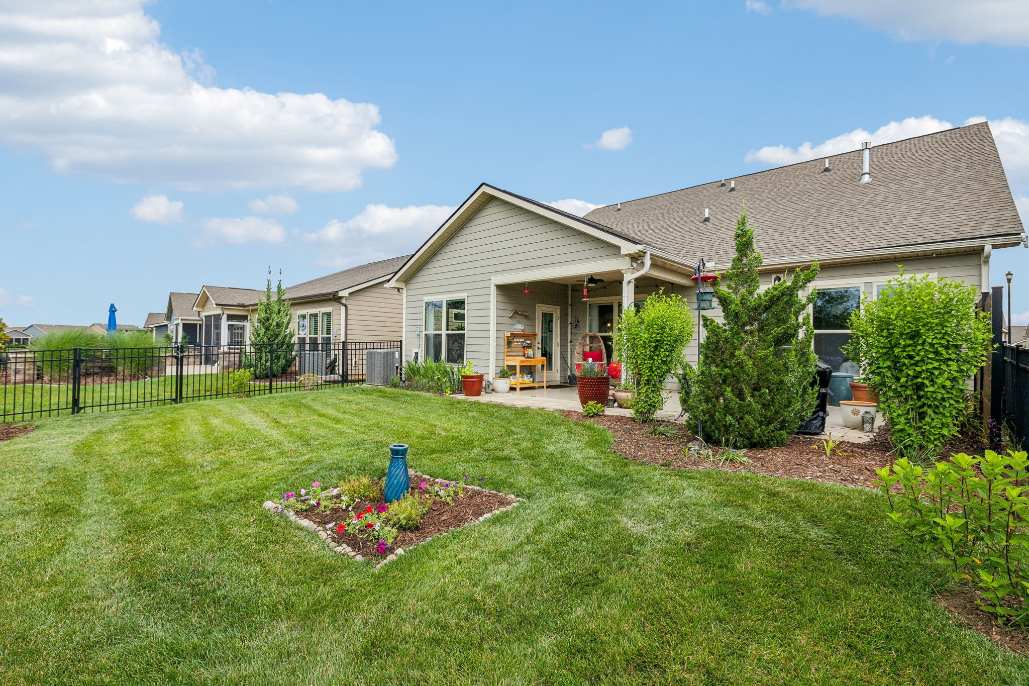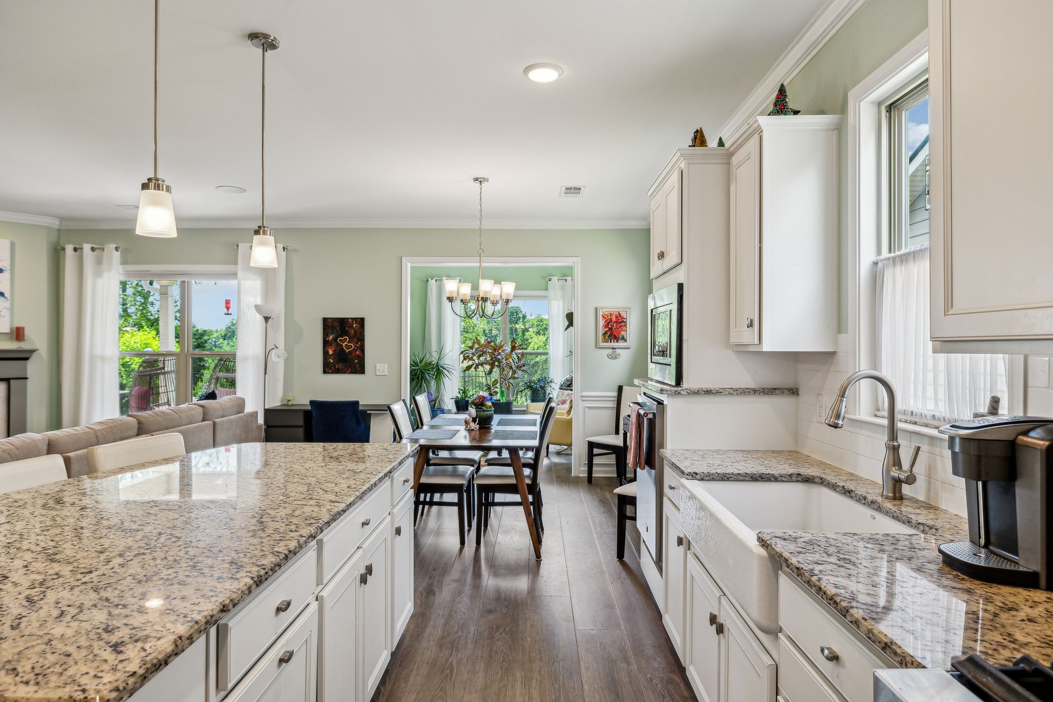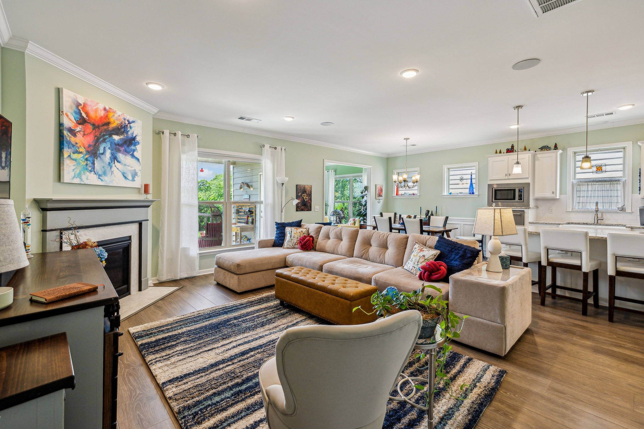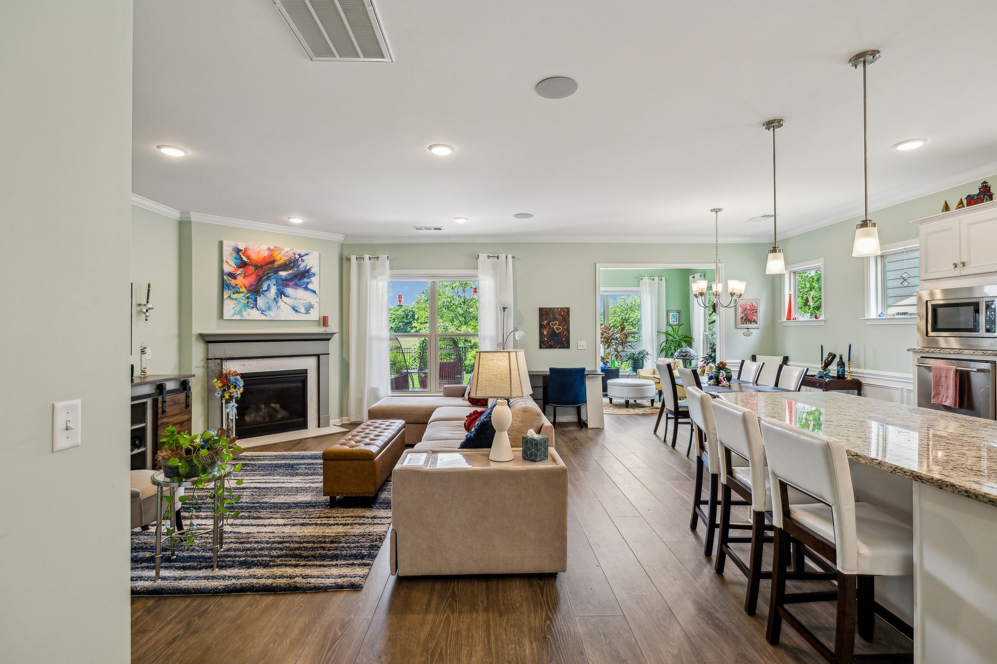 Southern Springs by Del Webb is a premier 55+ active adult community in Spring Hill, TN, offering resort-style amenities, low-maintenance living, and a vibrant social calendar. This beautifully maintained home features 3 bedrooms, 3 full baths, a den, bonus area, sunny sitting room, and cozy fireplace in the open concept living/kitchen/dining area; plus a whole house water filtration system, tankless water heater and a smart closet for electronics. The kitchen features granite counters, soft close drawers, roll out shelving and an elevated dishwasher for convenience. Water proof and scratch resistant, the tasteful wood flooring ties everything together. Also, there's plenty of easy access storage space off the bonus room. The fenced, landscaped backyard with irrigation and a covered patio overlooks a serene field of green, backed by trees that frame an inspiring sunset; a perfect spot to relax or entertain. Residents enjoy an impressive amenity center—including both indoor and outdoor pools, sports courts, a gas-fired pavilion, and over 70 clubs and interest groups—while the HOA handles lawn care and common-area upkeep. If you enjoy walking, there are 20 miles of paved walking trails and sidewalks to stroll. With Towhee Golf Club, TriStar Emergency Room, shopping, dining, parks, and emergency services all nearby, this home combines luxury, convenience, and an active-adult lifestyle. Refrigerator, gas grill, drop zone white cupboard and grape arbor convey.