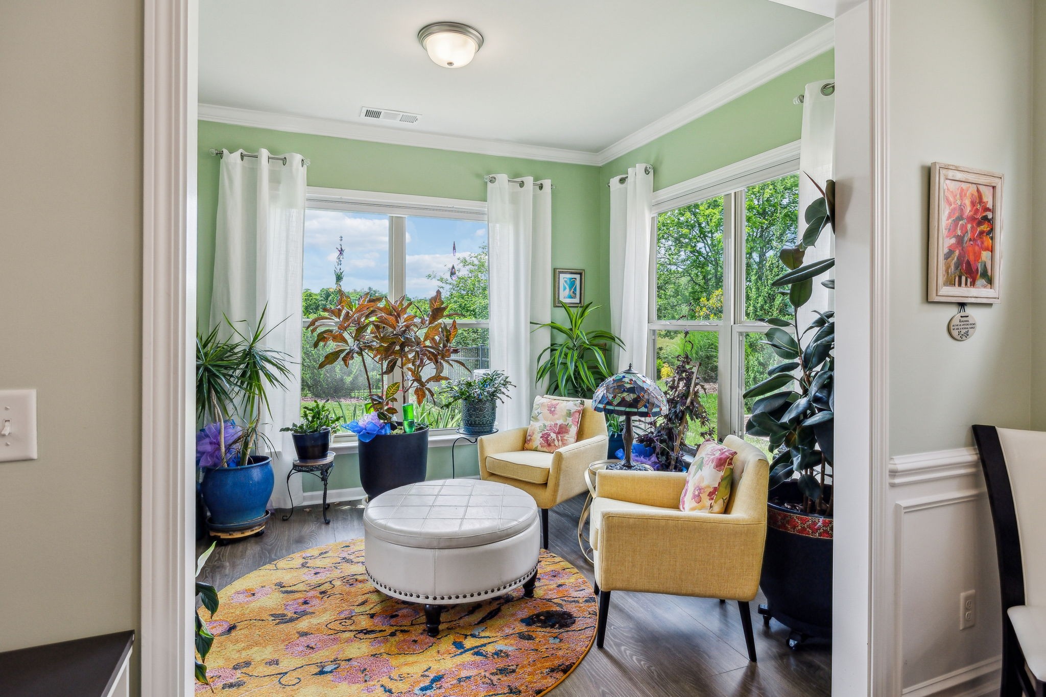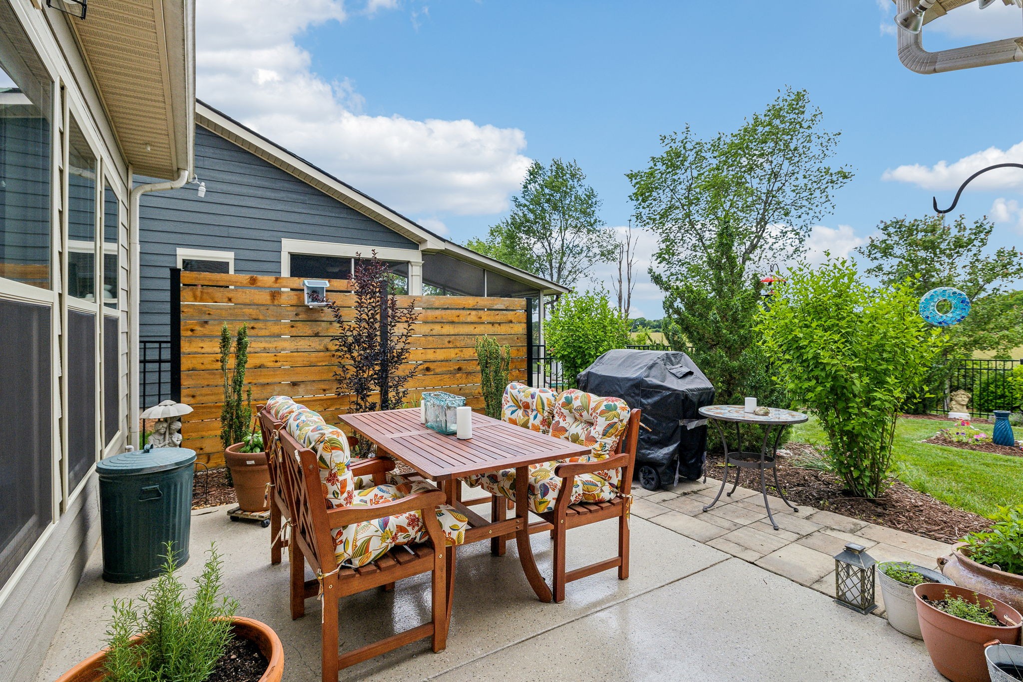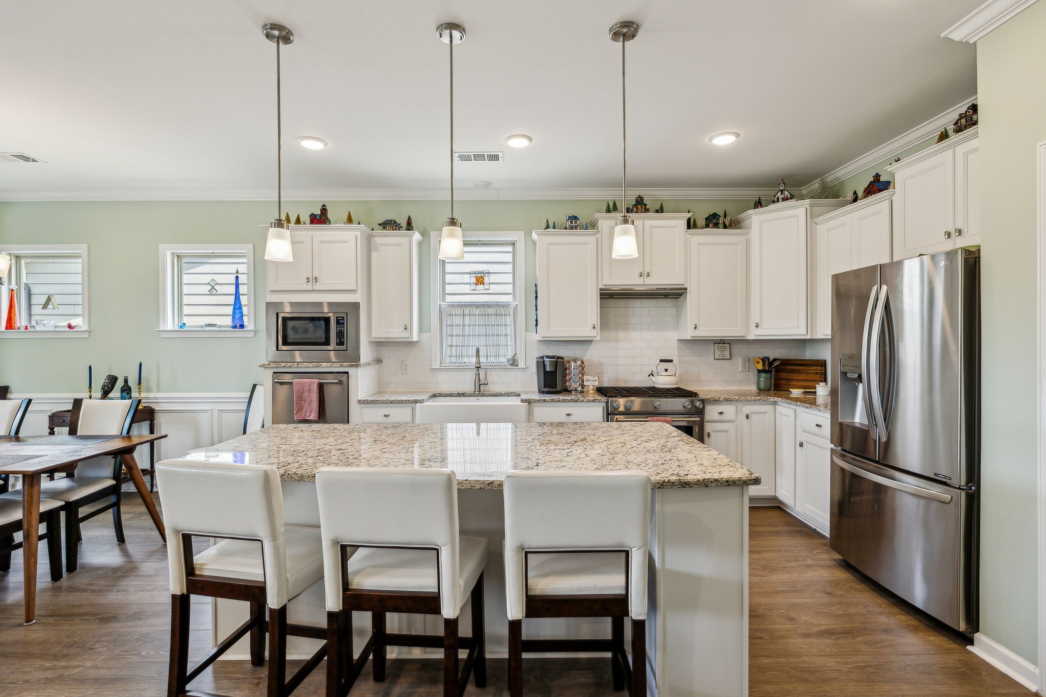 Southern Springs by Del Webb is a premier 55+ active adult community in Spring Hill, TN, offering resort-style amenities, low-maintenance living, and a vibrant social calendar. This beautifully maintained home features 3 bedrooms, 3 full baths, a den, bonus area, sunny sitting room, and cozy fireplace in the open concept living/kitchen/dining area; plus a whole house water filtration system, tankless water heater and a smart closet for electronics. The kitchen features granite counters, soft close drawers, roll out shelving and an elevated dishwasher for convenience. Water proof and scratch resistant, the tasteful wood flooring ties everything together. Also, there's plenty of easy access storage space off the bonus room. The fenced, landscaped backyard with irrigation and a covered patio overlooks a serene field of green, backed by trees that frame an inspiring sunset; a perfect spot to relax or entertain. Residents enjoy an impressive amenity center—including both indoor and outdoor pools, sports courts, a gas-fired pavilion, and over 70 clubs and interest groups—while the HOA handles lawn care and common-area upkeep. If you enjoy walking, there are 20 miles of paved walking trails and sidewalks to stroll. With Towhee Golf Club, TriStar Emergency Room, shopping, dining, parks, and emergency services all nearby, this home combines luxury, convenience, and an active-adult lifestyle. Refrigerator, gas grill, drop zone white cupboard and grape arbor convey.