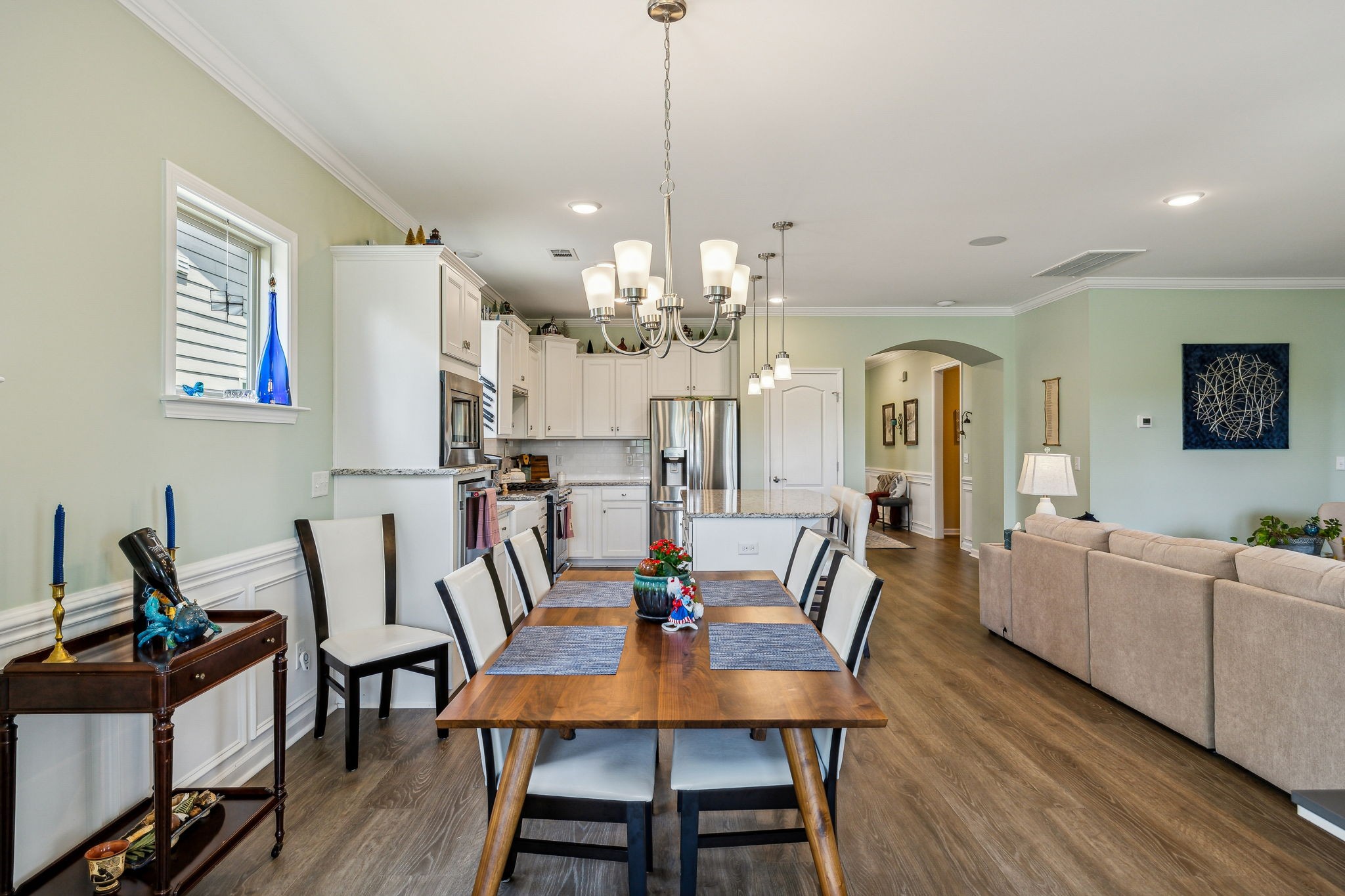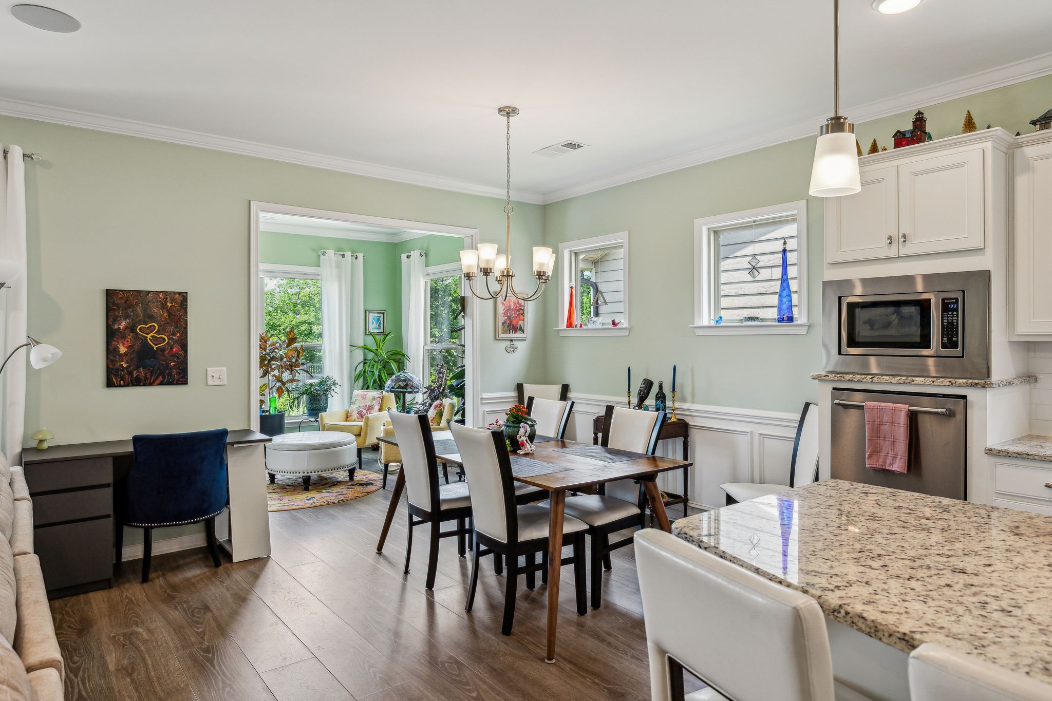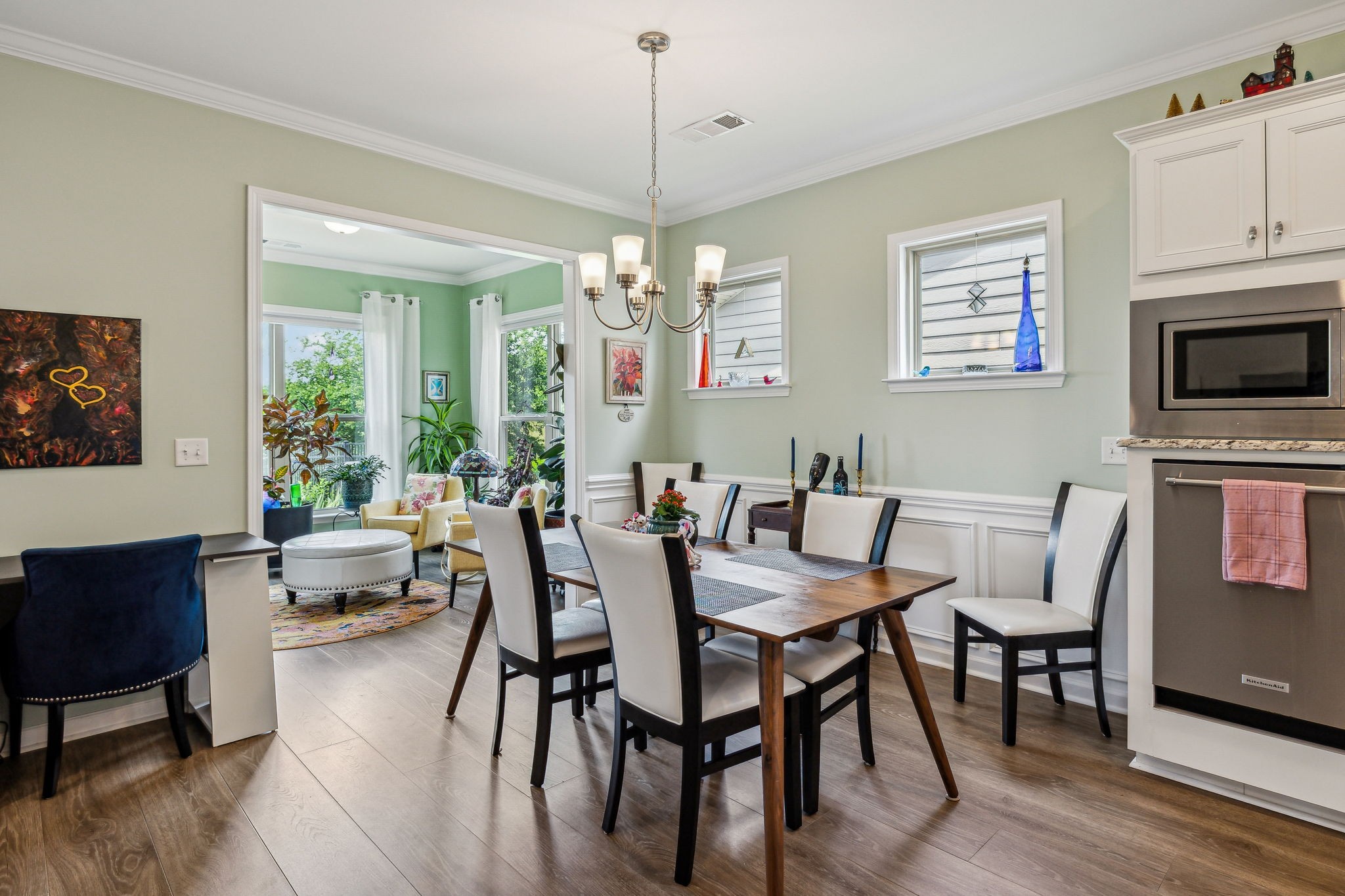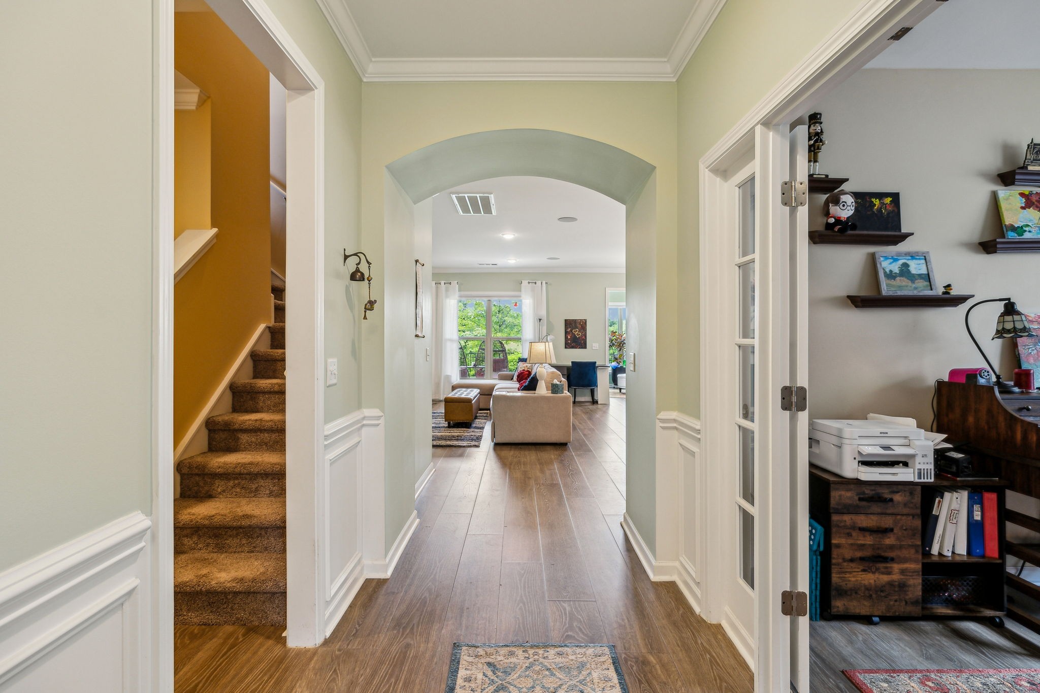 Southern Springs by Del Webb is a premier 55+ active adult community in Spring Hill, TN, offering resort-style amenities, low-maintenance living, and a vibrant social calendar. This beautifully maintained home features 3 bedrooms, 3 full baths, a den, bonus area, sunny sitting room, and cozy fireplace in the open concept living/kitchen/dining area; plus a whole house water filtration system, tankless water heater and a smart closet for electronics. The kitchen features granite counters, soft close drawers, roll out shelving and an elevated dishwasher for convenience. Water proof and scratch resistant, the tasteful wood flooring ties everything together. Also, there's plenty of easy access storage space off the bonus room. The fenced, landscaped backyard with irrigation and a covered patio overlooks a serene field of green, backed by trees that frame an inspiring sunset; a perfect spot to relax or entertain. Residents enjoy an impressive amenity center—including both indoor and outdoor pools, sports courts, a gas-fired pavilion, and over 70 clubs and interest groups—while the HOA handles lawn care and common-area upkeep. If you enjoy walking, there are 20 miles of paved walking trails and sidewalks to stroll. With Towhee Golf Club, TriStar Emergency Room, shopping, dining, parks, and emergency services all nearby, this home combines luxury, convenience, and an active-adult lifestyle. Refrigerator, gas grill, drop zone white cupboard and grape arbor convey.