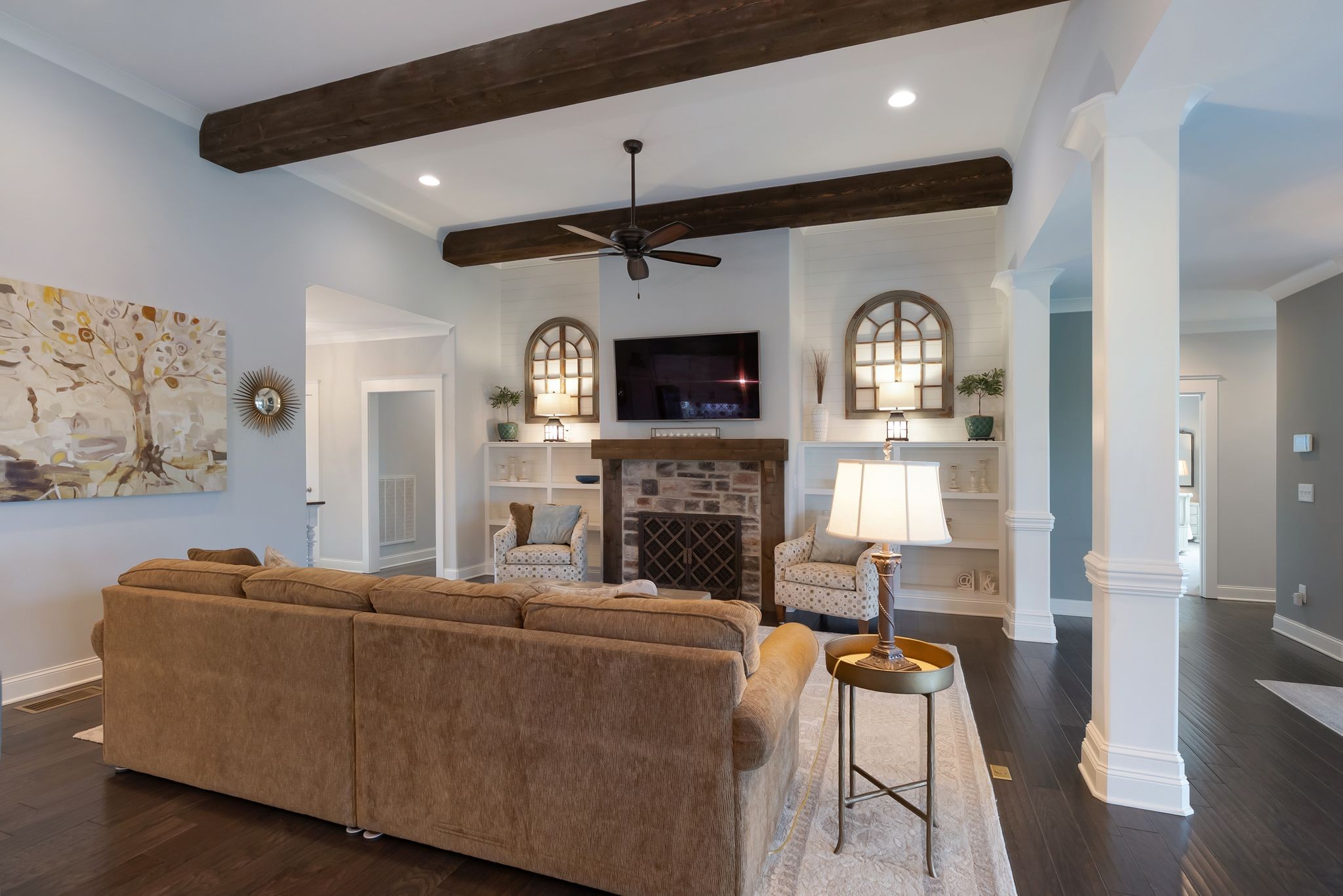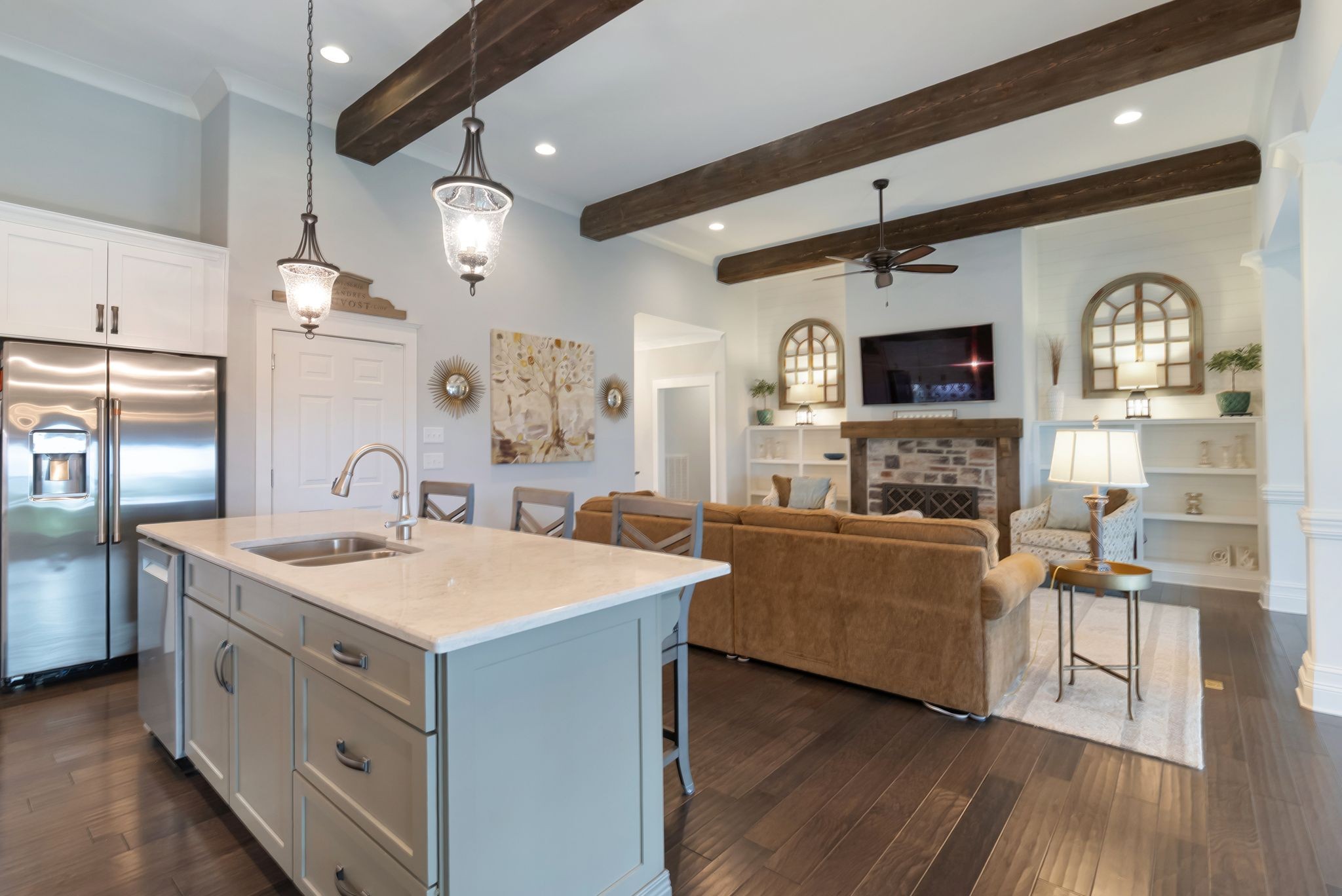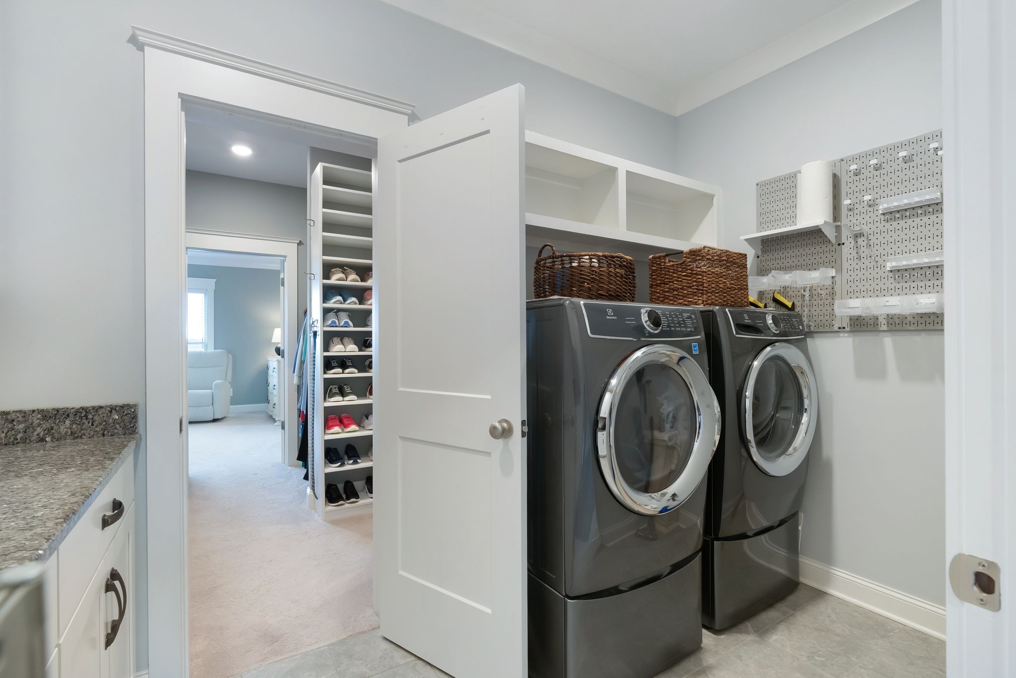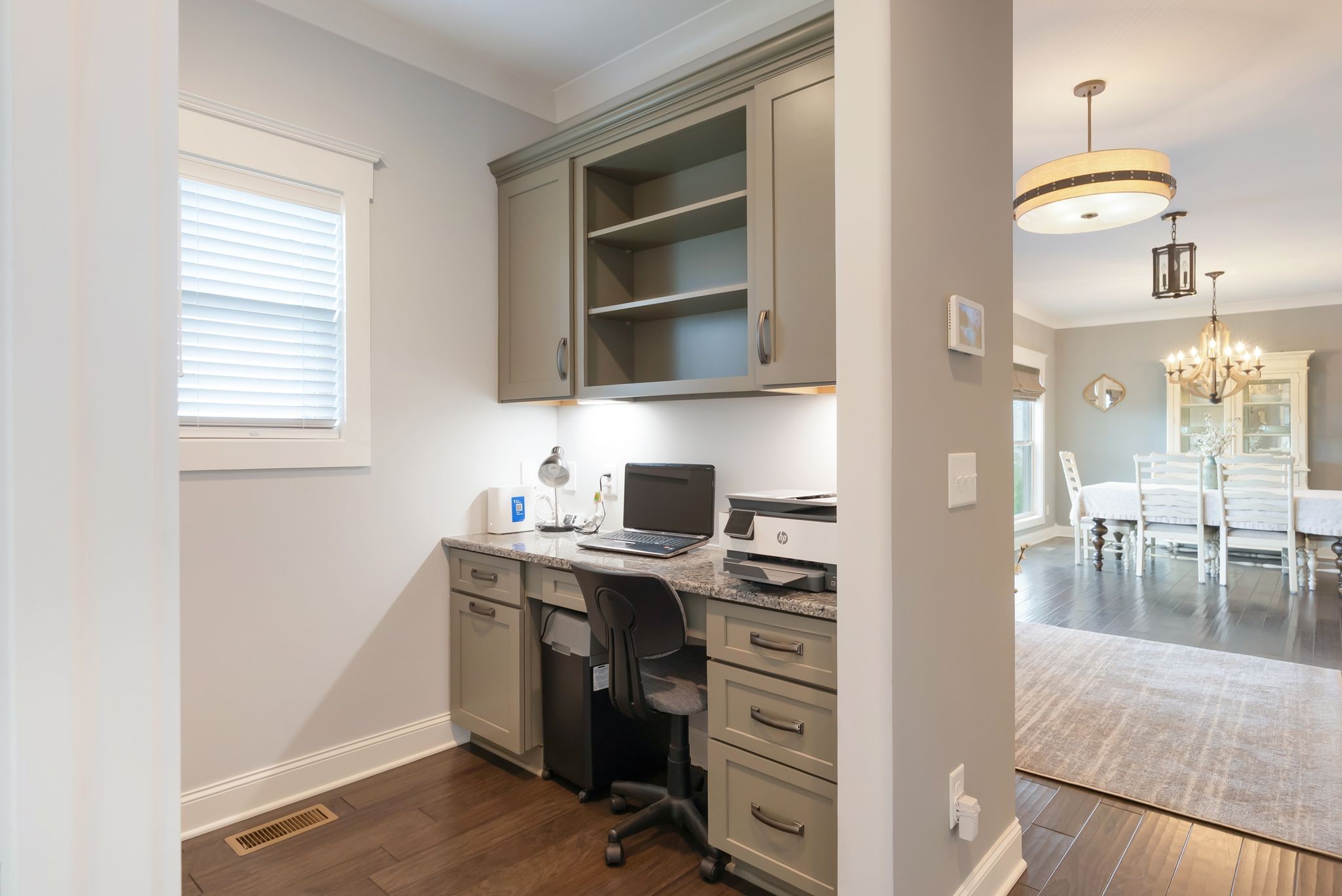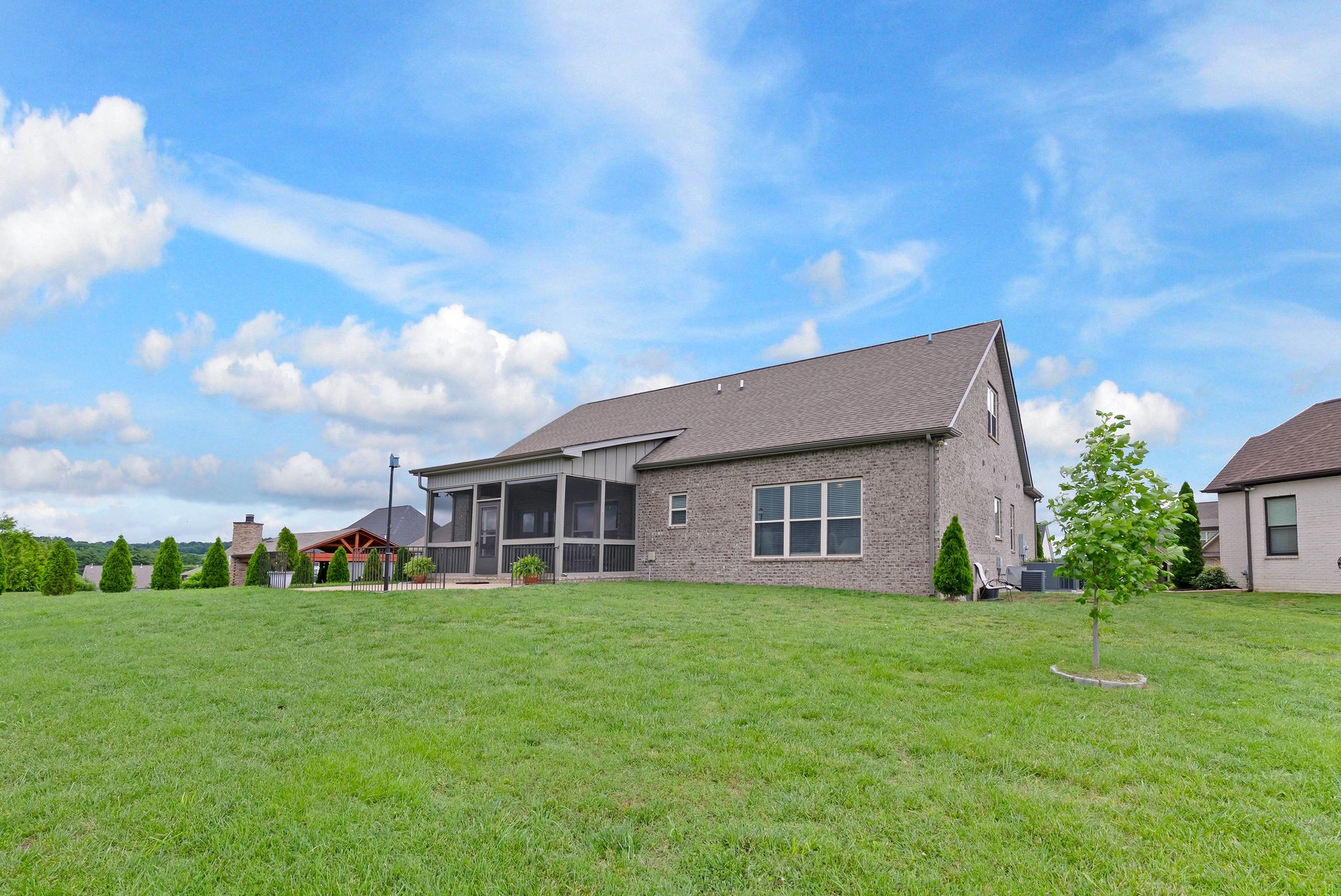 All bedrooms on main floor with potential 4th bedroom upstairs. Custom Craftsmanship Meets Everyday Convenience Located On A Cul-De-Sac! One of only a few homes in the neighborhood built by Wayne Dunn & Associates, this custom-designed gem is loaded with $50k of high-end upgrades and thoughtful touches throughout. Enjoy main-level living with 3 bedrooms—including a stunning primary suite featuring hardwood floors, spa-like bath with walk-in tile shower, frameless shower door and soaking tub, and a custom walk-through closet by Closets By Design that connects directly to the laundry room which was reinforced by the builder as a storm shelter. The kitchen boasts quartz countertops, tile backsplash, stainless appliances, and a new refrigerator in 2025. Living room has gas fireplace and custom bookcases. Upstairs, the spacious bonus room includes a full bath and can easily serve as a 4th bedroom. Relax year-round in the screened back porch. Crawlspace is encapsulated and driveway expanded for extra parking. All of this just 2 minutes from shopping at Target in the The Crossings and quick access to Saturn Parkway—custom comfort and convenience in one perfect package! 1% Lender Credit towards closing costs or rate buy down is being offered.
