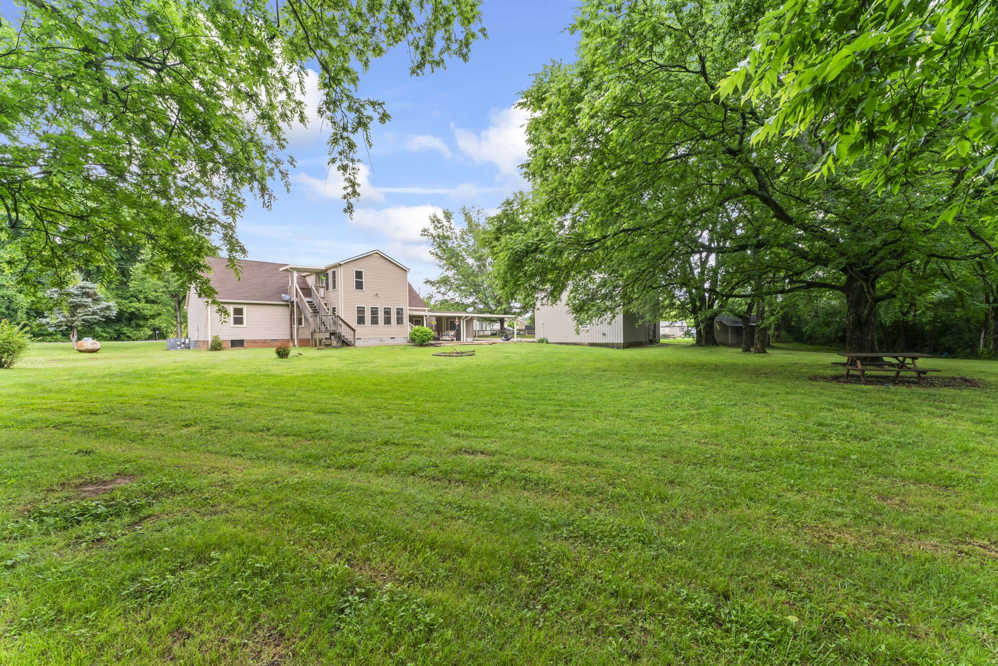 Multigenerational living! Picture yourself on a property that adapts to your current AND changing needs with essentially 5 bedrooms, but the perk is for 3! This peaceful and versatile one owner, rural home on just over an acre has two full stories AND has an exterior, private, covered entry and deck to a full 'apartment' with separate utilities in that second story, absolutely ideal for growing/changing families, roommates, or supplemental income! (Specifically an open plan with a den, fully equipped kitchen and dining, 2 BRs, full bath and a laundry room/pantry!) Downstairs, find a spacious great room with propane FP, more bedrooms, 2 full baths, kitchen updates with granite countertops, a bar with seating and stainless appliances. The lovely sunroom captures the peaceful, shaded exterior view (and no home behind) that so many long for. We have a contract with buyer right of first refusal and welcome your viewing! You have Hobbies? Just wait! We have a craft room downstairs and, outside, a dream is fulfilled in our 900 sq ft insulated garage/shop with a loft, utilities and MUCH MORE to impress you there! Add to this a fine 18x10 storage building, covered parking, open parking for numerous vehicles, covered outdoor leisure space and outdoor cameras. Hurry! With your BIG backyard and the electric source already in place, there is room for whatever you envision, including a pool ... and it's getting HOT !