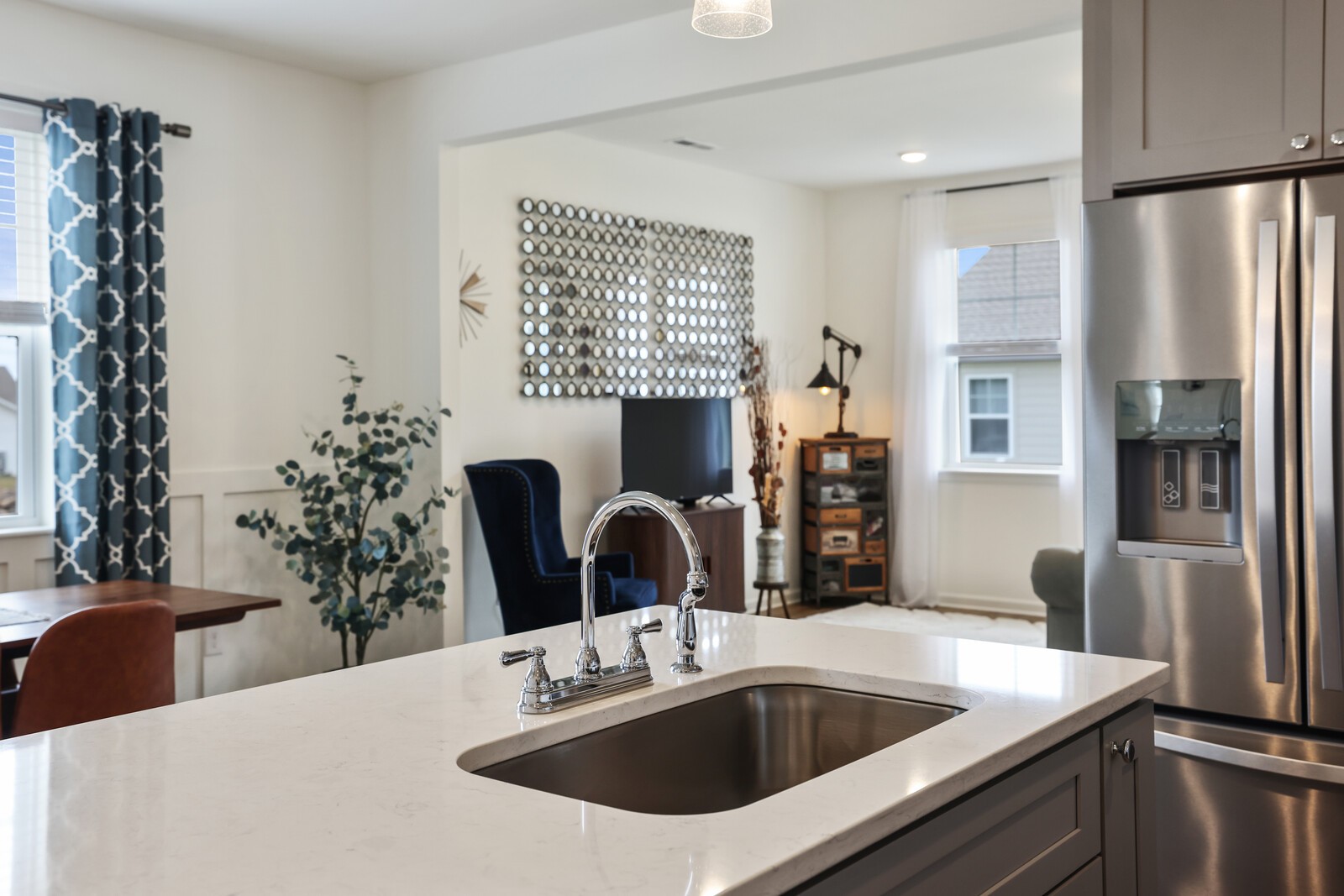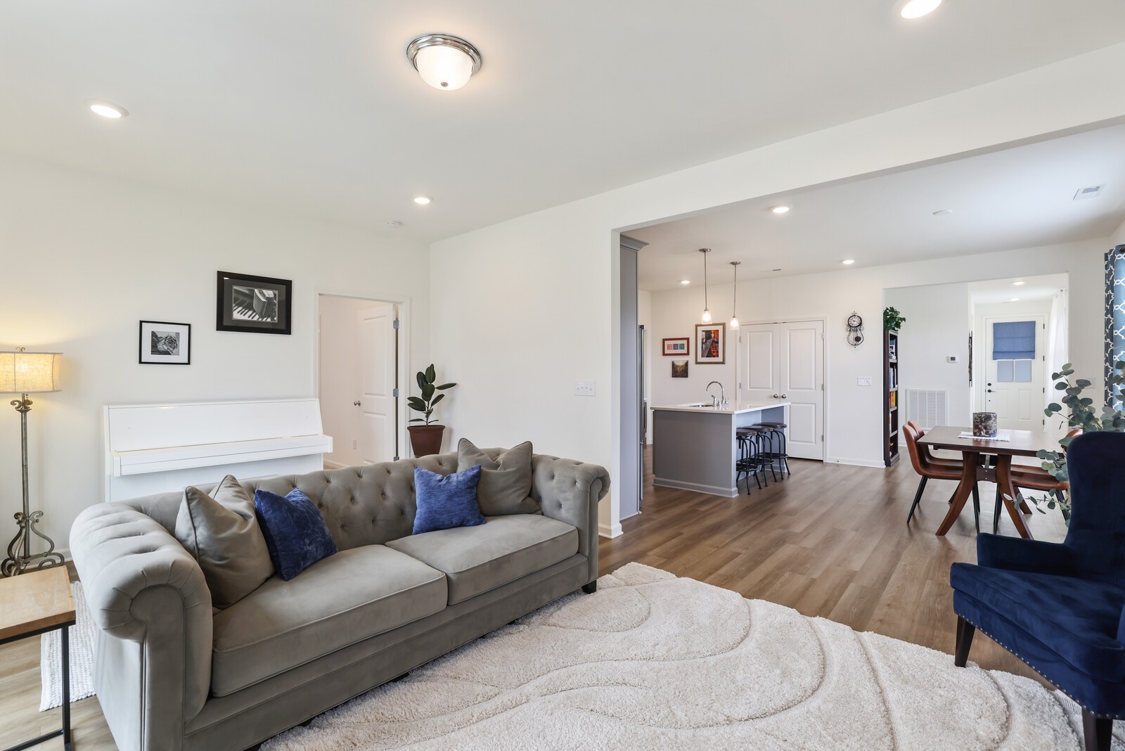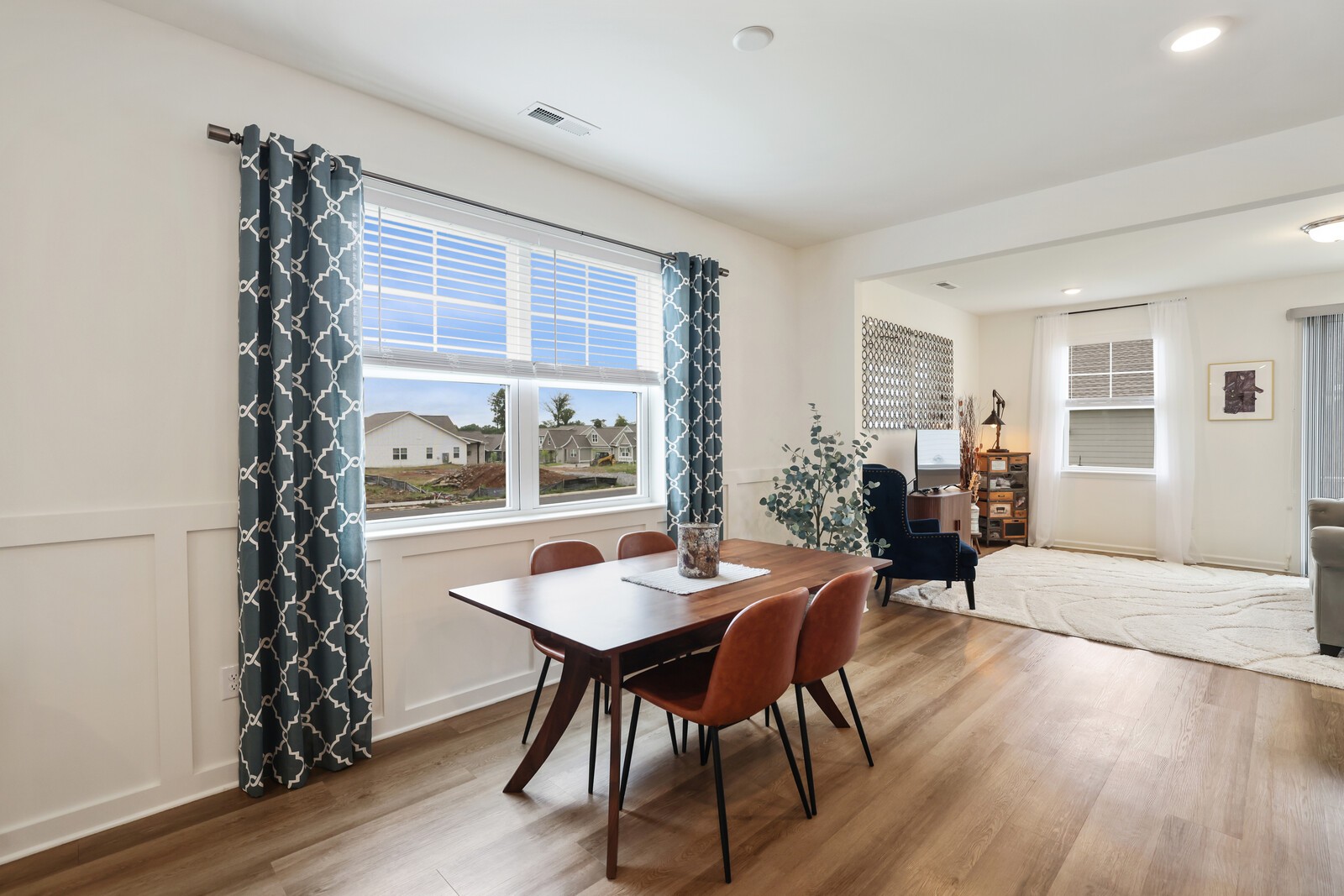 Welcome to 425 Multrees Place - a better-than-new home built in 2023, offering stylish comfort & effortless 1 level living in a vibrant 55+ community. This meticulously maintained home features 1,441 square feet on a large corner lot. The low-maintenance lifestyle is enhanced by an HOA that includes landscaping. Step inside to discover 2 spacious bedrooms, w/ upgraded carpet. The front bedroom includes added shelving in the closet, making it an ideal option for a home office or hobby space. The primary bedroom offers a relaxing retreat w/ an en-suite bath featuring a large walk-in closet, double vanities, designer lighting, tile flooring, & tiled shower with a frameless glass door & bench seating. The heart of the home is the open-concept living area, including a large family room w/ LVP flooring & a sliding door that leads to a concrete back patio. This patio can be enlarged or fenced in w/ HOA approval. The chef’s kitchen is as functional as it is beautiful, boasting a large eat-in area w/ decorative wainscoting, quartz countertops, a tile backsplash, & stainless steel appliances including a microwave, dishwasher, range, hood, and refrigerator which will convey w/ the home. Soft-close cabinetry & drawers, along with a large pantry, offer ample storage. Additional interior features include a spacious laundry room w/ a washer and dryer that will also remain, & a secondary full bath w/ upgraded tile flooring, a tiled tub/shower combination, & designer lighting. The current homeowner also added custom blinds throughout the home. The home also features a spacious two-car garage with epoxy flooring. Enjoy access to fantastic community amenities such as pickleball courts, sidewalks, & a pavilion complete w/ a cozy firepit. Located just minutes from shopping, restaurants, & Smyrna’s active senior center (w/ card games, yoga, line dancing, day trips, and even overnight vacation.) Up to 1% lender credit on the loan amount if the buyer uses the Seller's Preferred Lender.