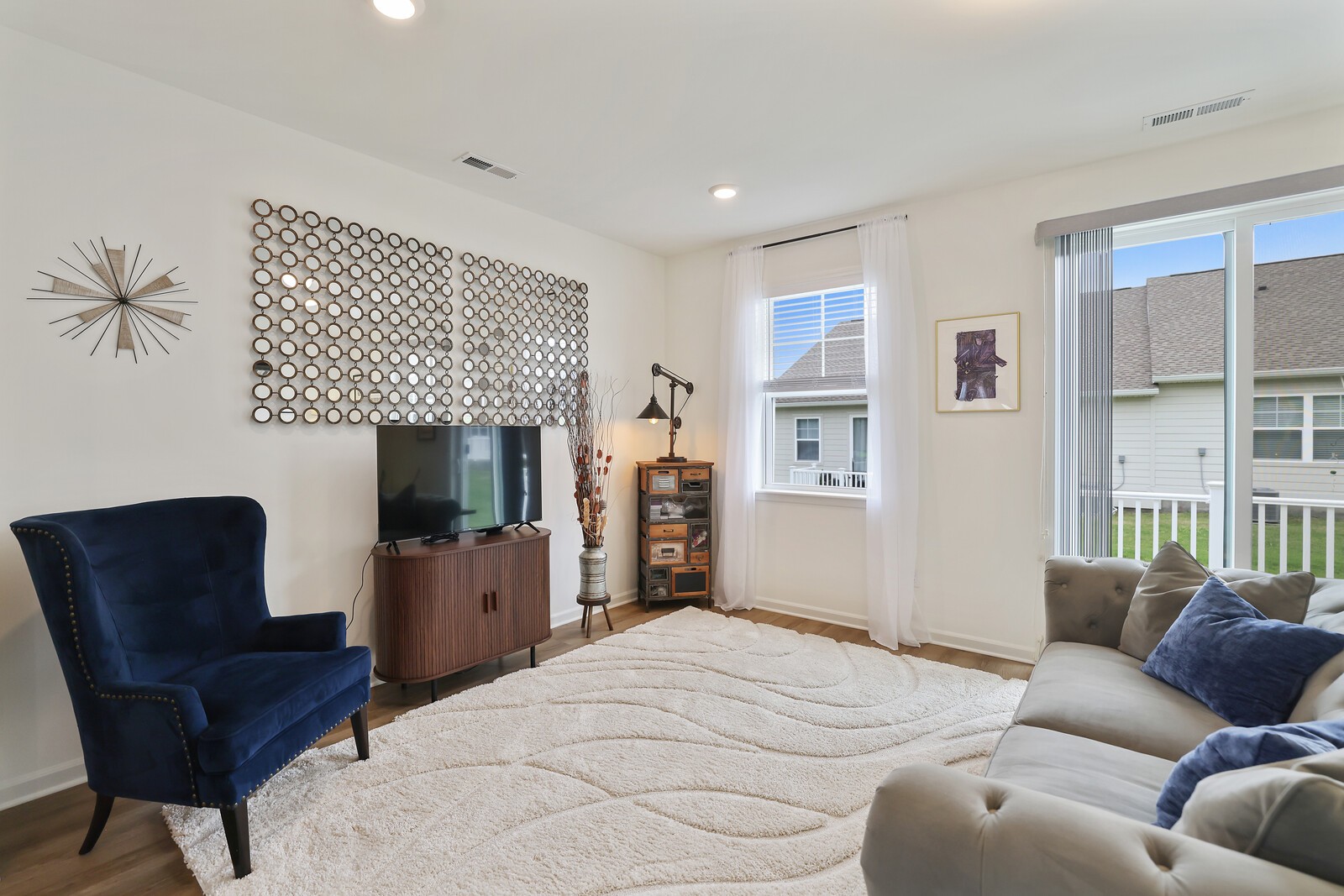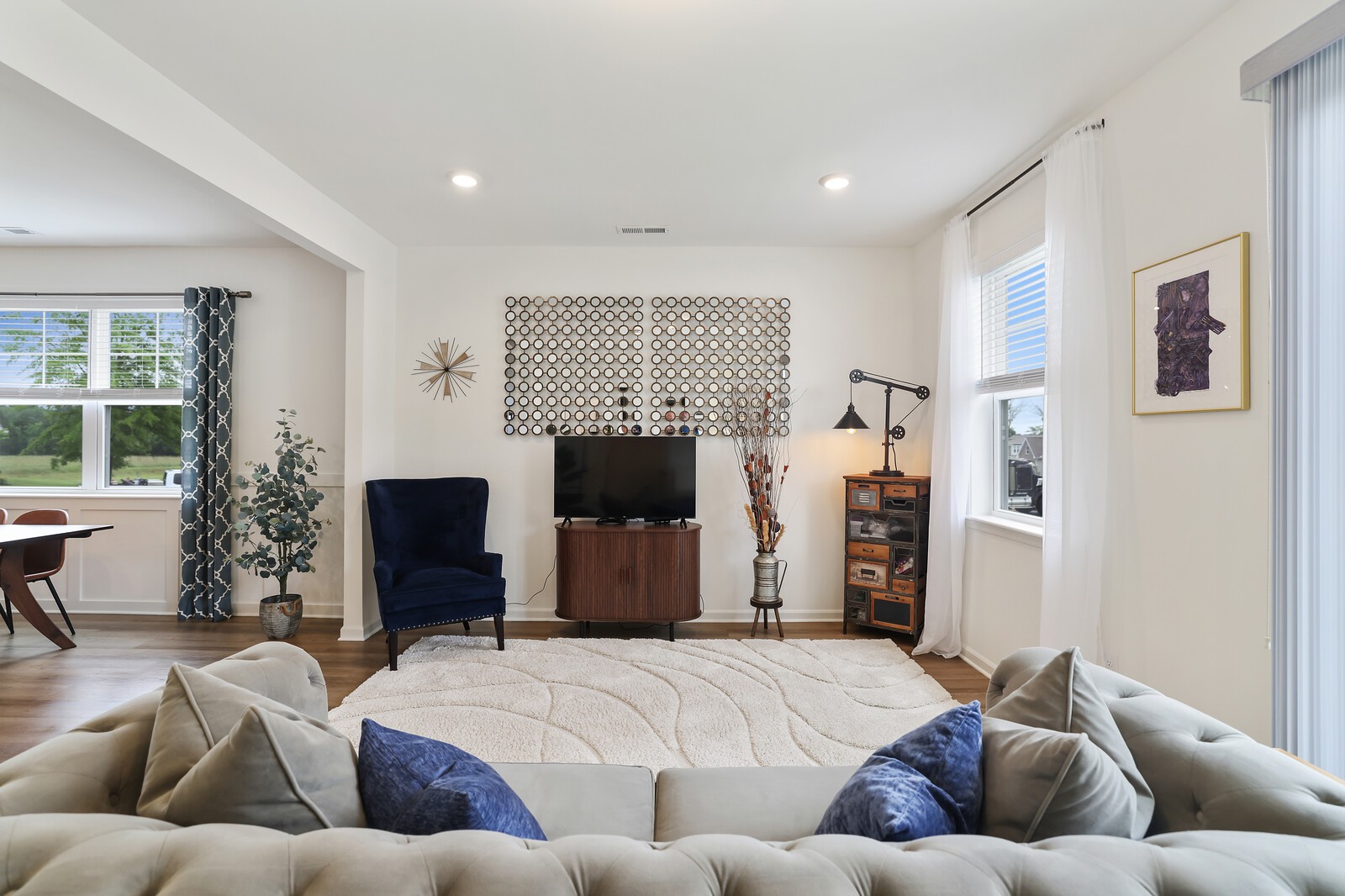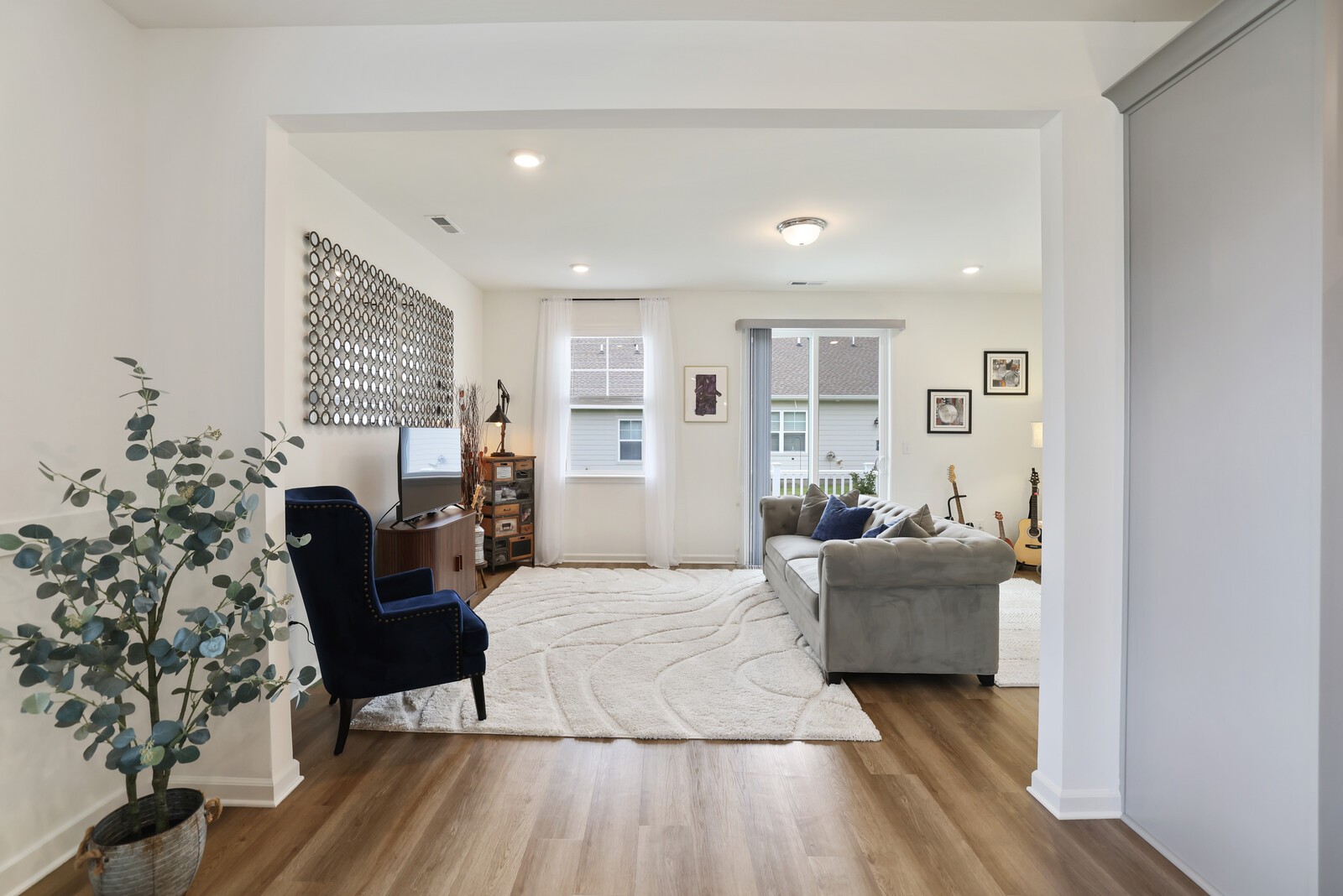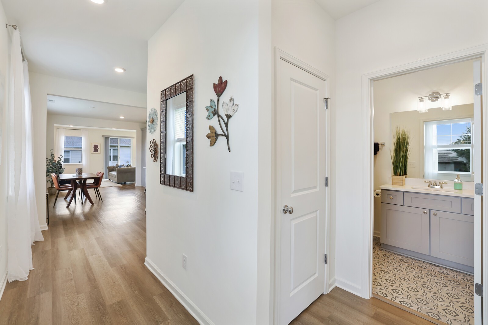 Welcome to 425 Multrees Place - a better-than-new home built in 2023, offering stylish comfort & effortless 1 level living in a vibrant 55+ community. This meticulously maintained home features 1,441 square feet on a large corner lot. The low-maintenance lifestyle is enhanced by an HOA that includes landscaping. Step inside to discover 2 spacious bedrooms, w/ upgraded carpet. The front bedroom includes added shelving in the closet, making it an ideal option for a home office or hobby space. The primary bedroom offers a relaxing retreat w/ an en-suite bath featuring a large walk-in closet, double vanities, designer lighting, tile flooring, & tiled shower with a frameless glass door & bench seating. The heart of the home is the open-concept living area, including a large family room w/ LVP flooring & a sliding door that leads to a concrete back patio. This patio can be enlarged or fenced in w/ HOA approval. The chef’s kitchen is as functional as it is beautiful, boasting a large eat-in area w/ decorative wainscoting, quartz countertops, a tile backsplash, & stainless steel appliances including a microwave, dishwasher, range, hood, and refrigerator which will convey w/ the home. Soft-close cabinetry & drawers, along with a large pantry, offer ample storage. Additional interior features include a spacious laundry room w/ a washer and dryer that will also remain, & a secondary full bath w/ upgraded tile flooring, a tiled tub/shower combination, & designer lighting. The current homeowner also added custom blinds throughout the home. The home also features a spacious two-car garage with epoxy flooring. Enjoy access to fantastic community amenities such as pickleball courts, sidewalks, & a pavilion complete w/ a cozy firepit. Located just minutes from shopping, restaurants, & Smyrna’s active senior center (w/ card games, yoga, line dancing, day trips, and even overnight vacation.) Up to 1% lender credit on the loan amount if the buyer uses the Seller's Preferred Lender.