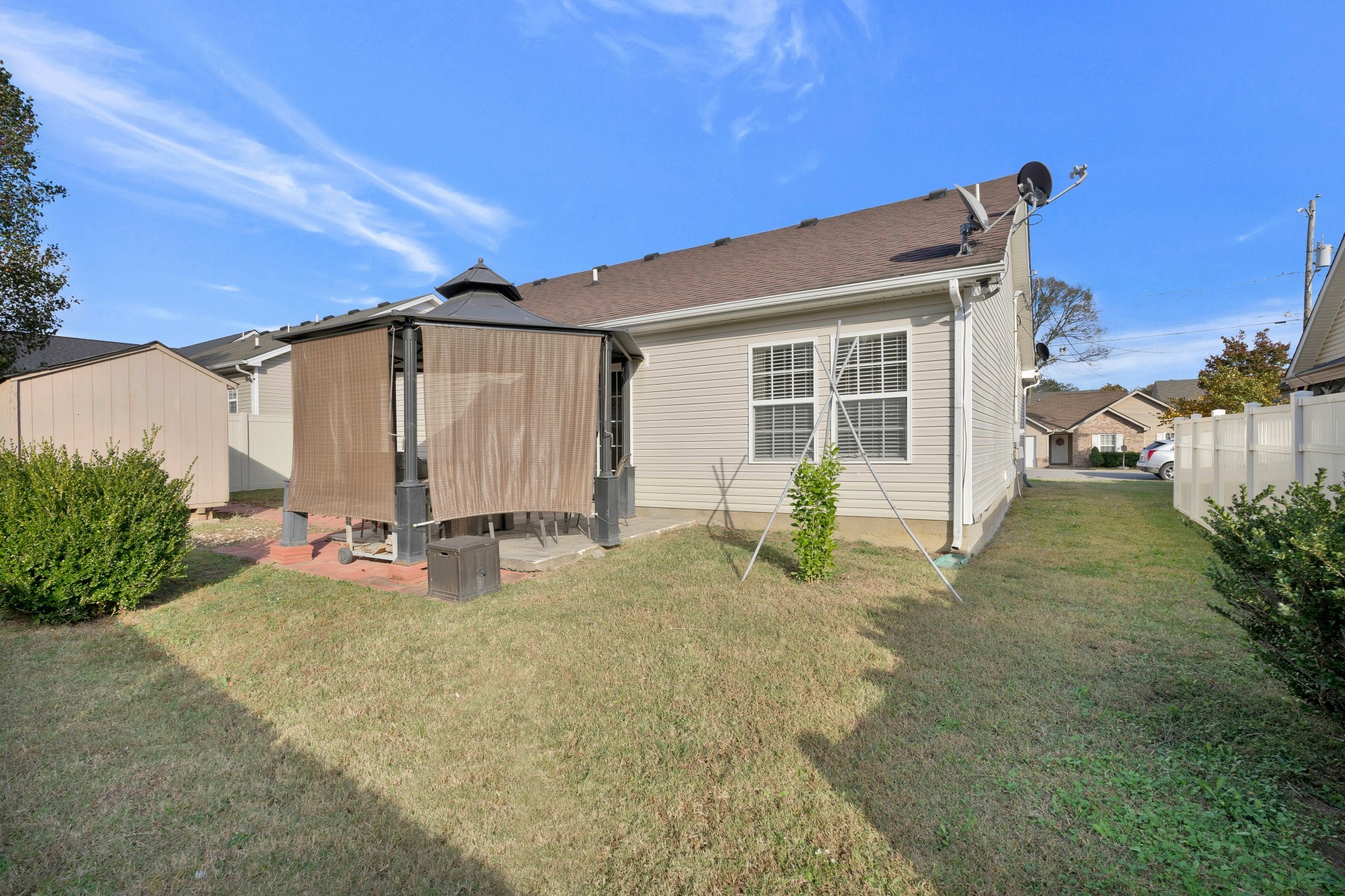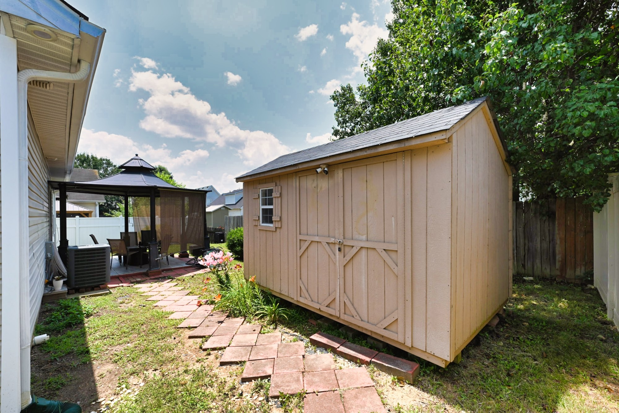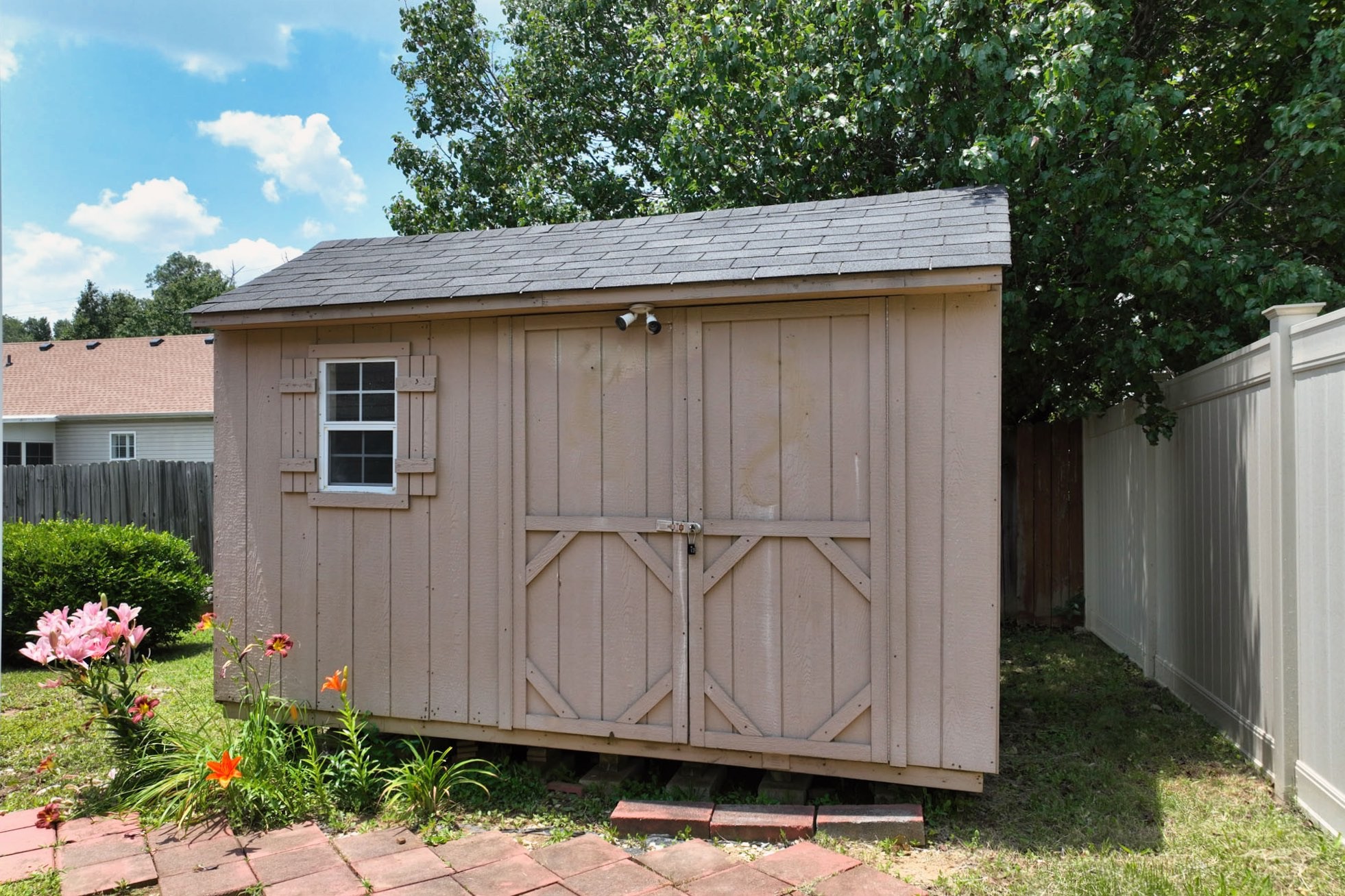 This house is a perfect 10! Beautifully renovated property is ready for move-in with new flooring and paint, everything is in perfect shape. There is a like-new 7" x 10" storage building with Electric in the backyard- perfect for additional storage. The backyard features trees, beautiful landscaping, a large storage shed that is in great condition, a gazabo and fence. Inside features vaulted ceilings, black appliances, oversized garage, new lighting throughout, security features, tons of storage, large pantry, large laundry room with a closet and No HOA. DON’T MISS THIS PERFECT HOME There has been an inspection on the house and everything is in top shape.