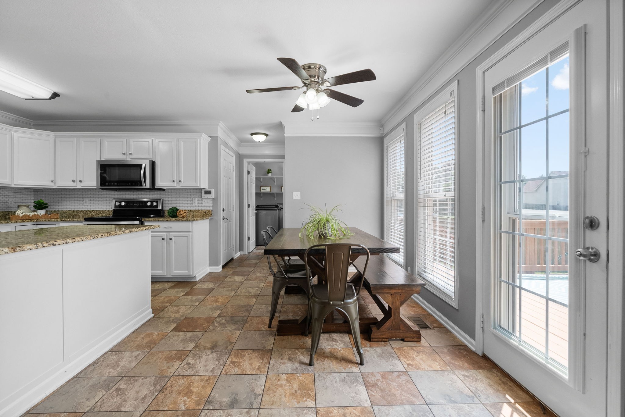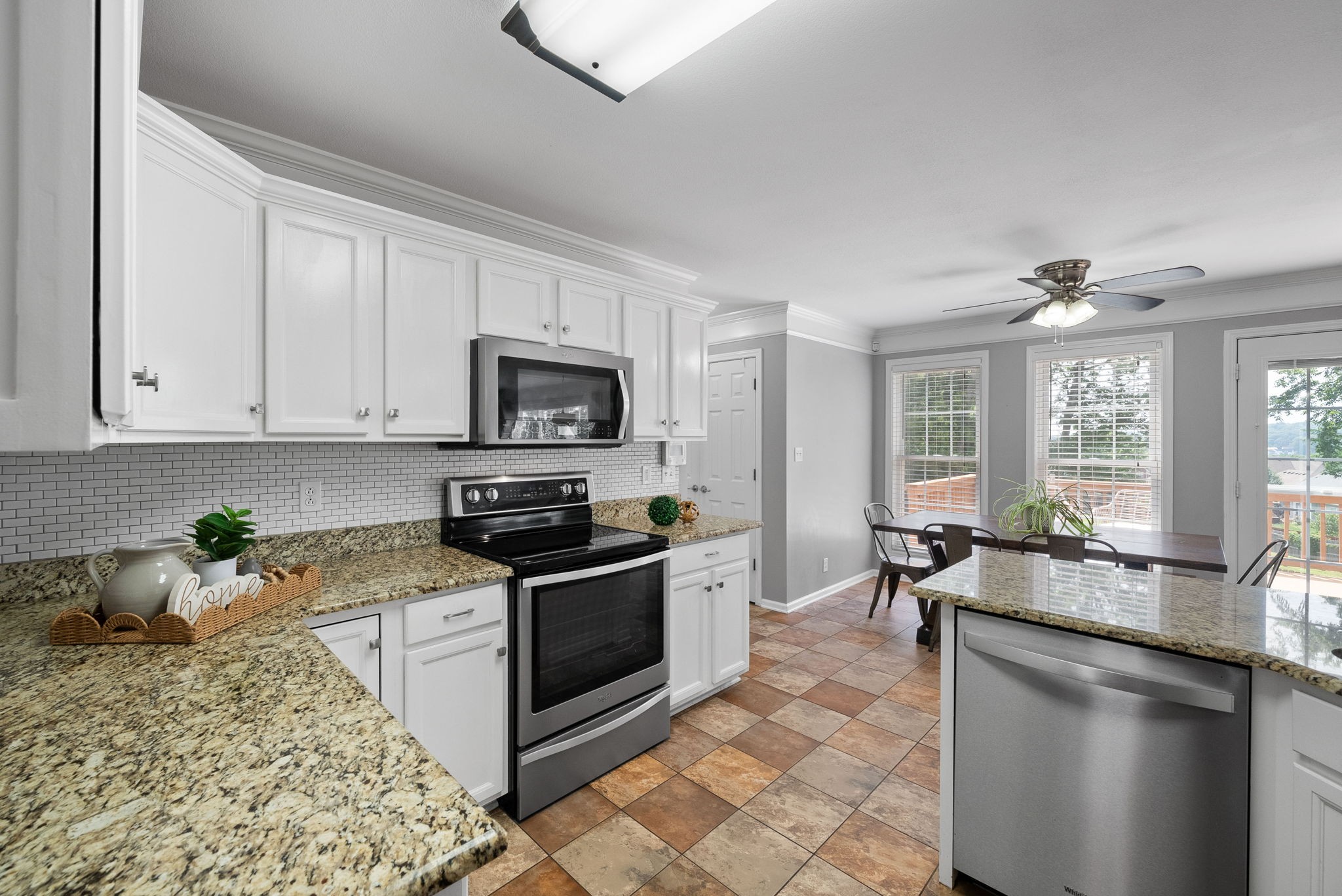 AppliancesBuilt-In Electric Range, Dishwasher, Disposal, Microwave, Refrigerator, Stainless Steel Appliance(s)