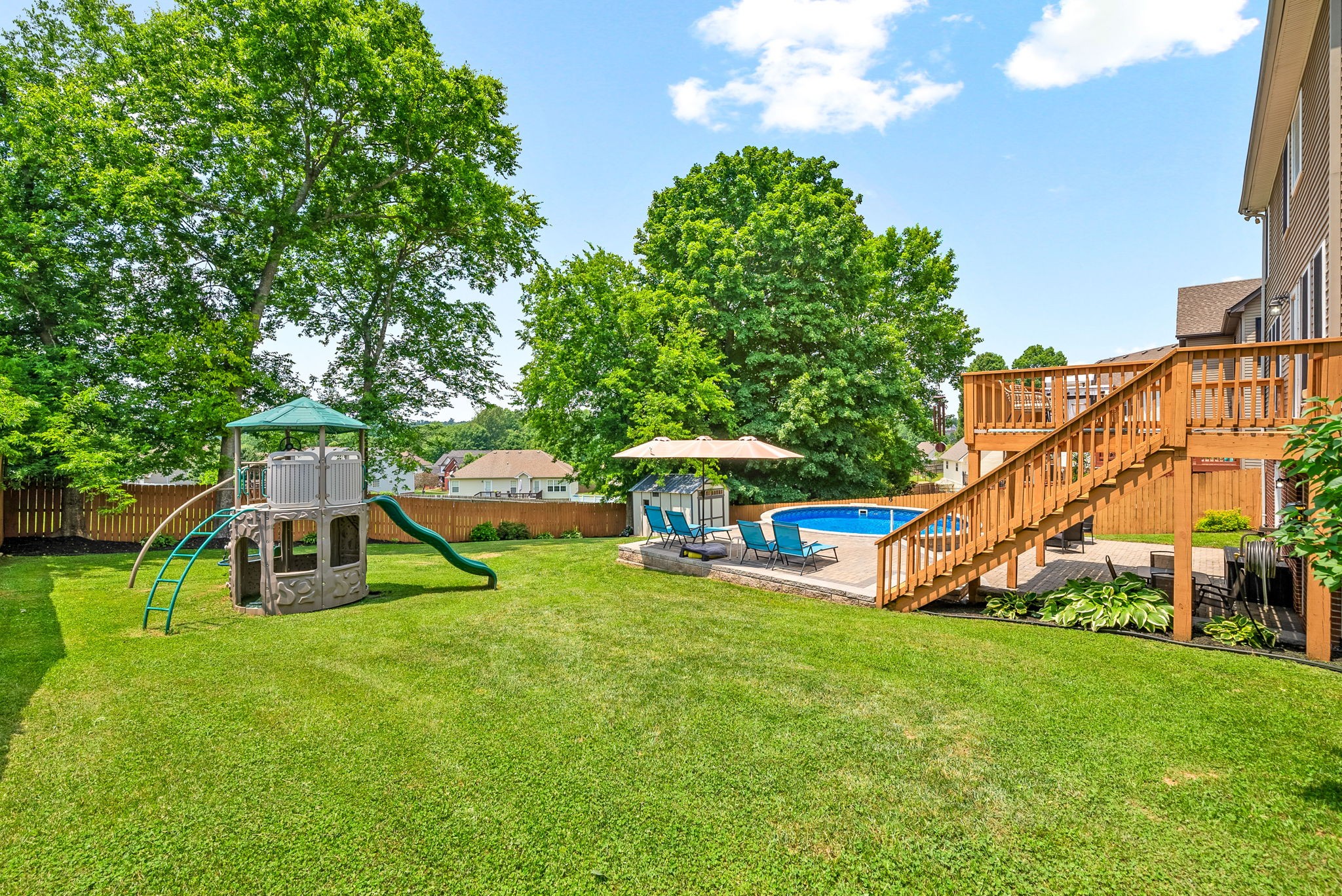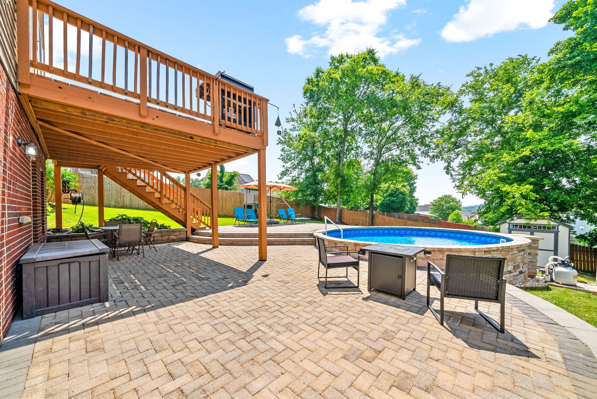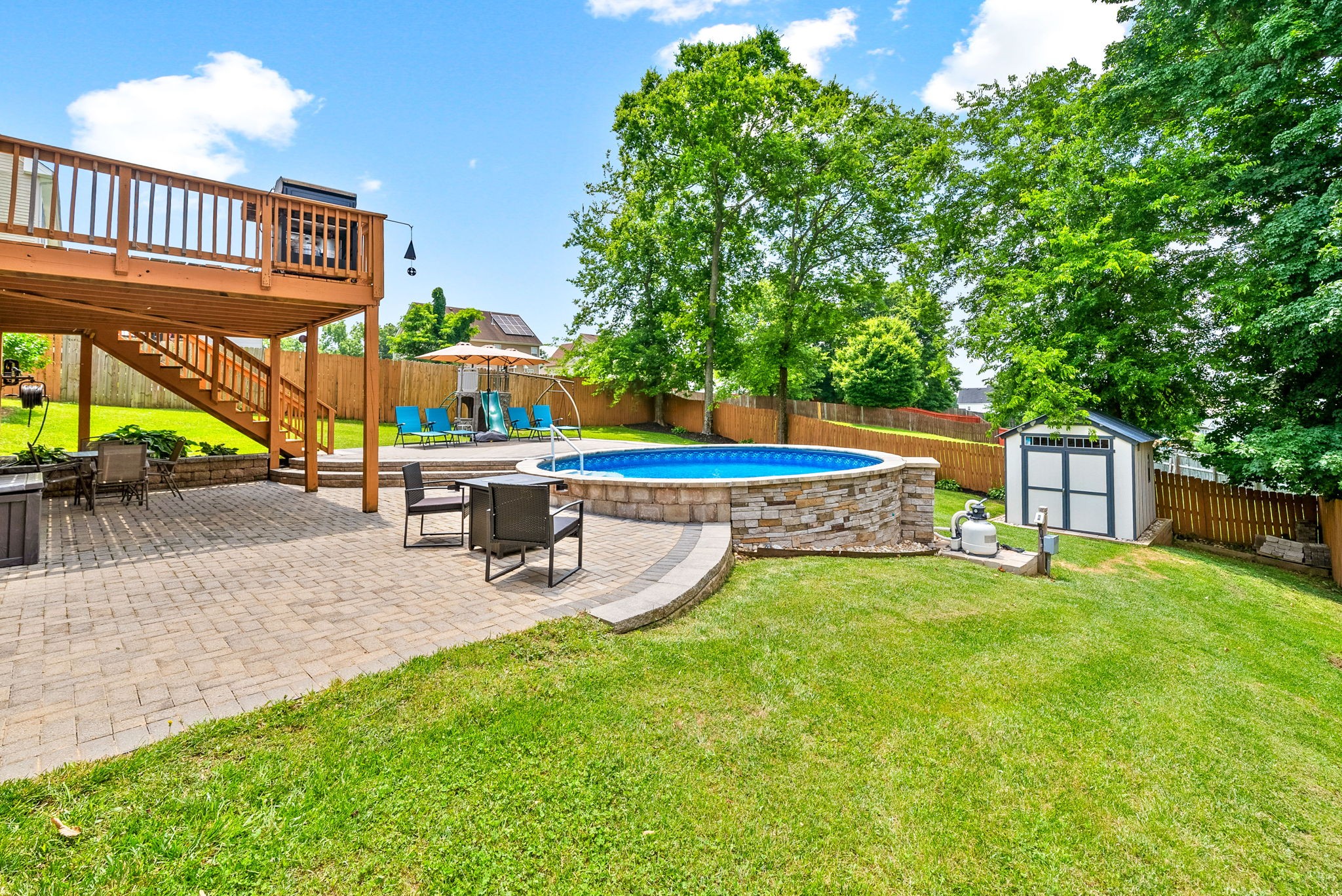 The fully finished walk-out basement opens to a fully fenced beautifully landscaped backyard oasis, complete with a custom paver patio, saltwater pool, shed and mature trees providing natural shade and privacy. Yes, the pool furniture and equipment convey! For added peace of mind, this home includes a 4x6 tornado shelter that comfortably fits 6–8 people—an invaluable feature for safety and security. Don’t miss your chance to make this turn key gem your own!