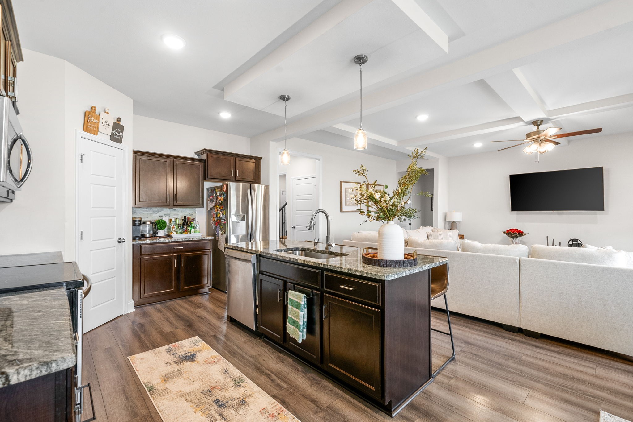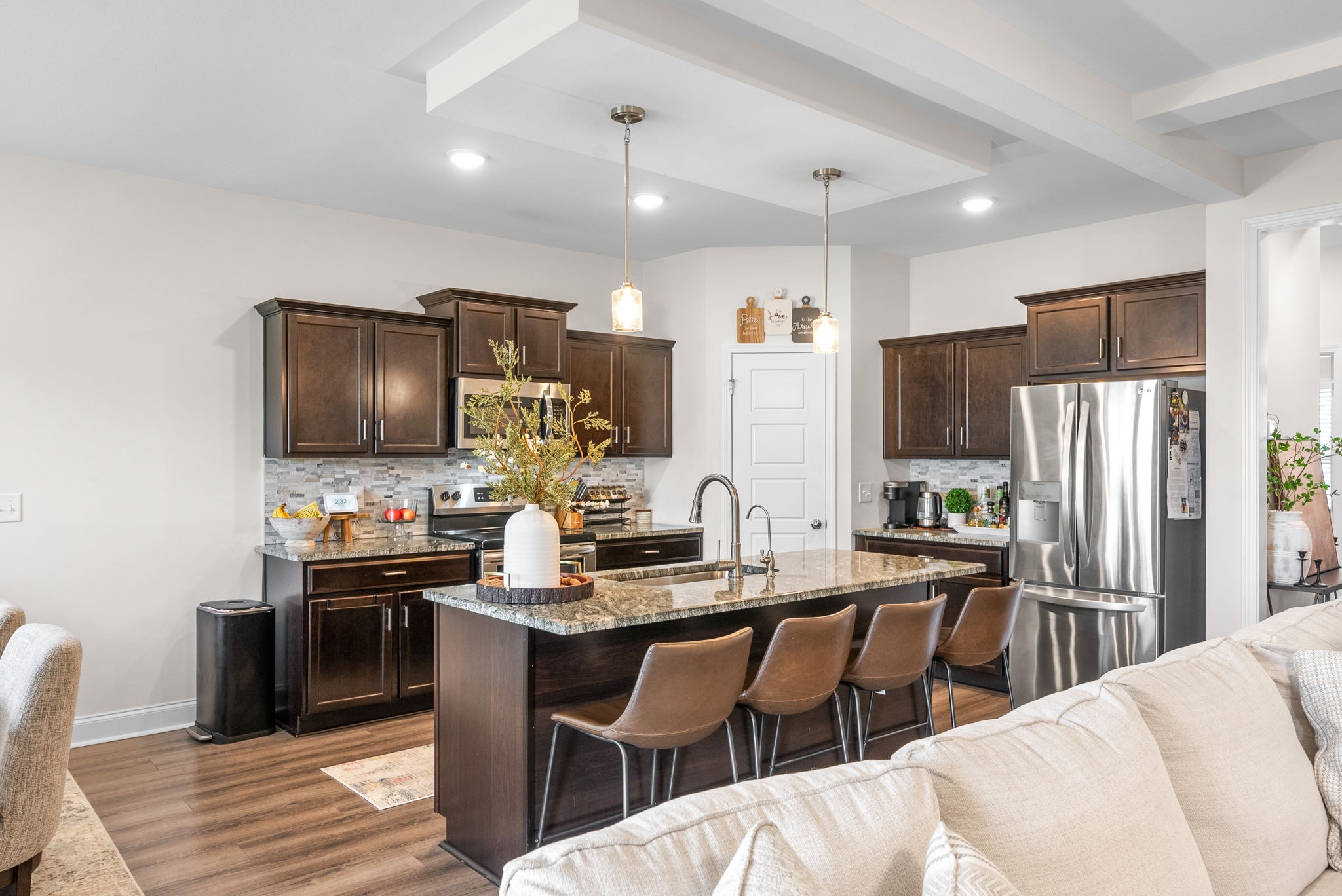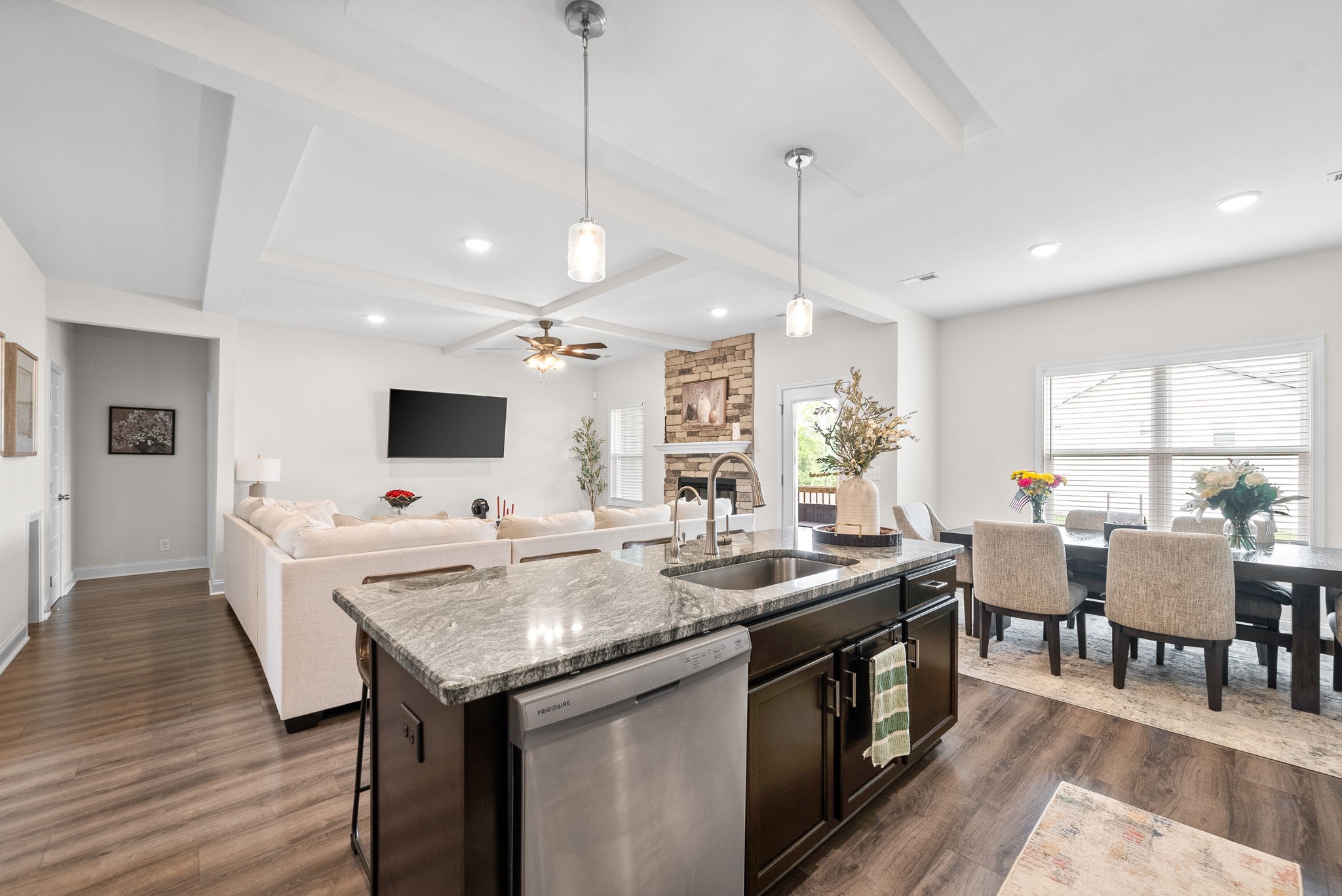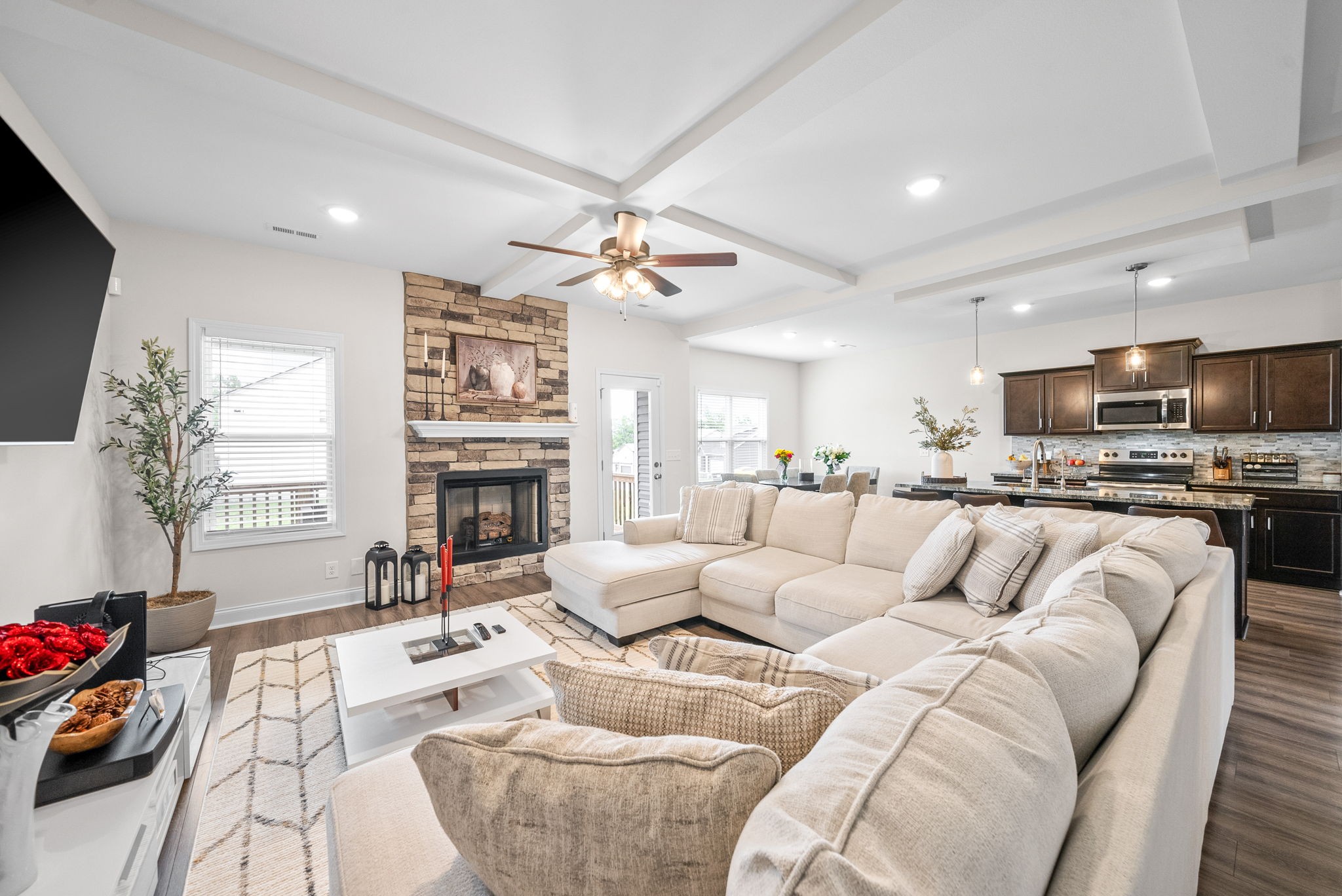 This stylish 4-bedroom, 3-bath home offers an open layout with a cozy fireplace, perfect for entertaining or relaxing. Enjoy the outdoors on the covered deck year-round. Built in 2022, it features modern finishes and spacious living throughout available January 7th.