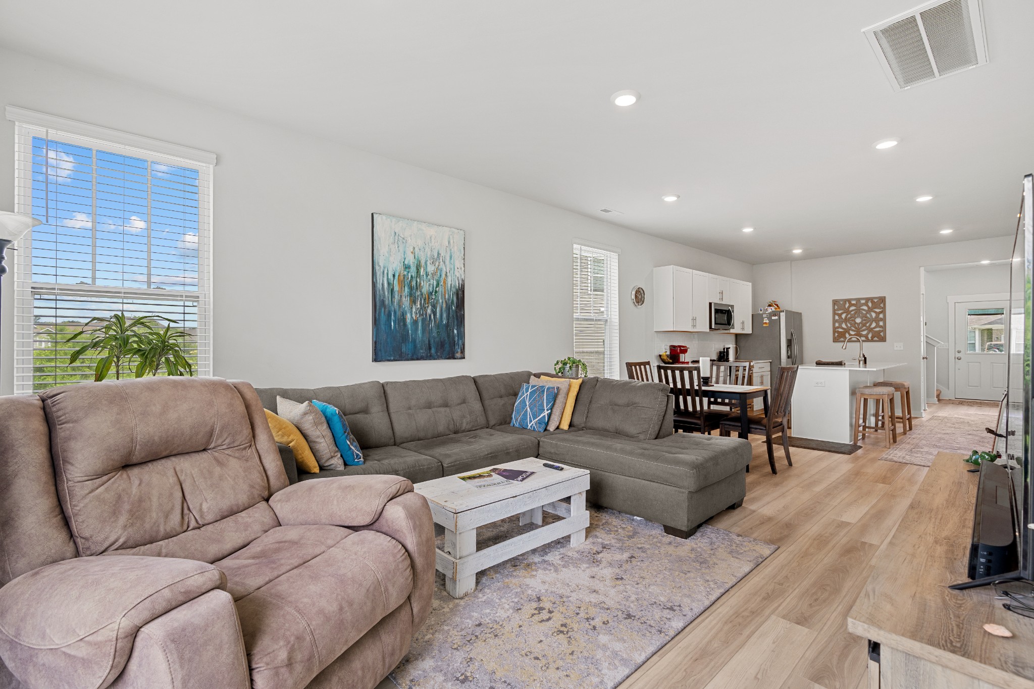 REDUCED! End unit! Primary suite on the main level! The open floor plan, good for entertaining. This 3 bed, 2.5 bath home also offers a bonus room. Conveniently located just minutes from the square, with shopping and dining close by. Neighborhood amenities include walking trails, a community pool, clubhouse, playground, and fishing ponds