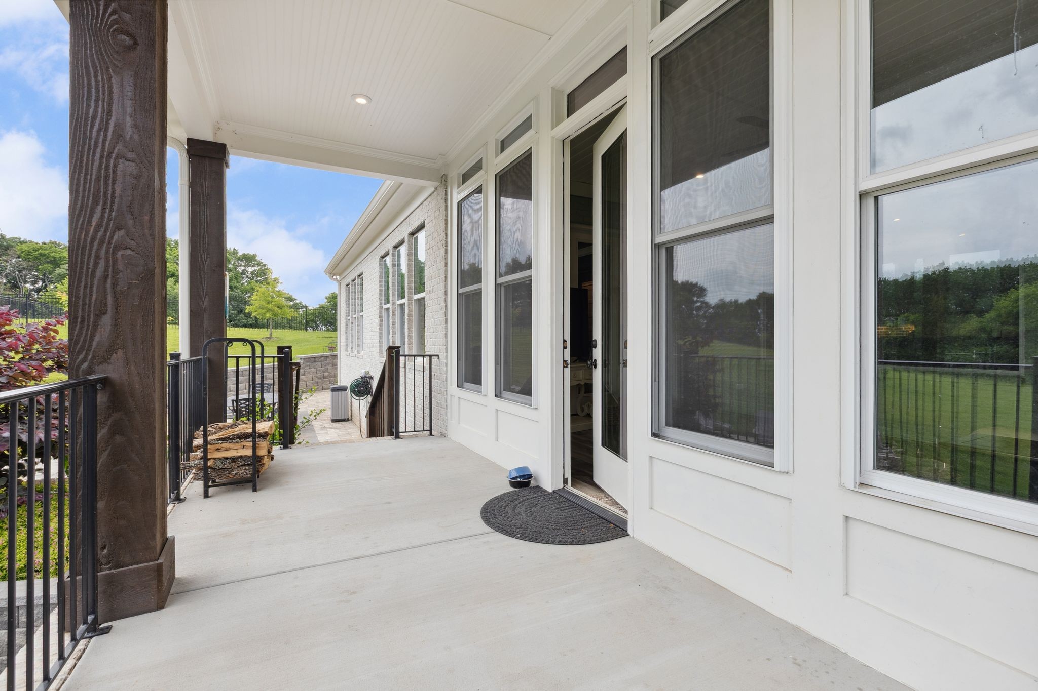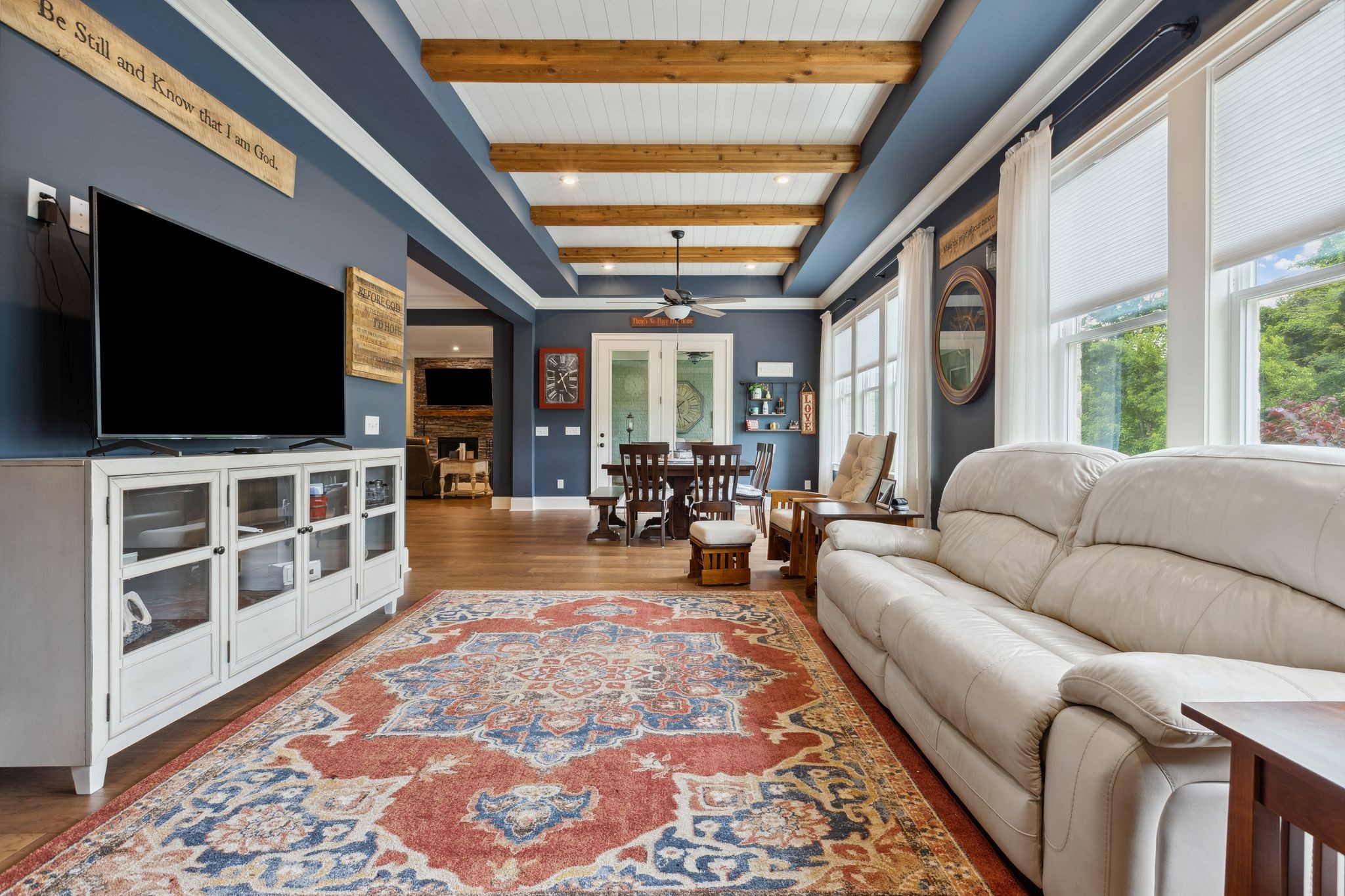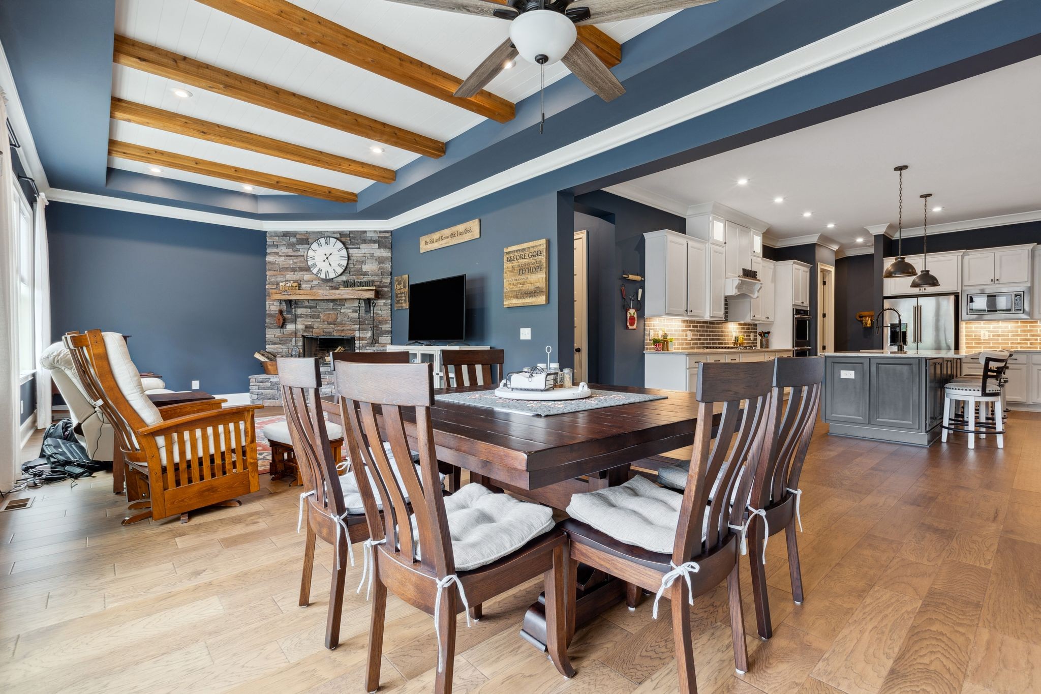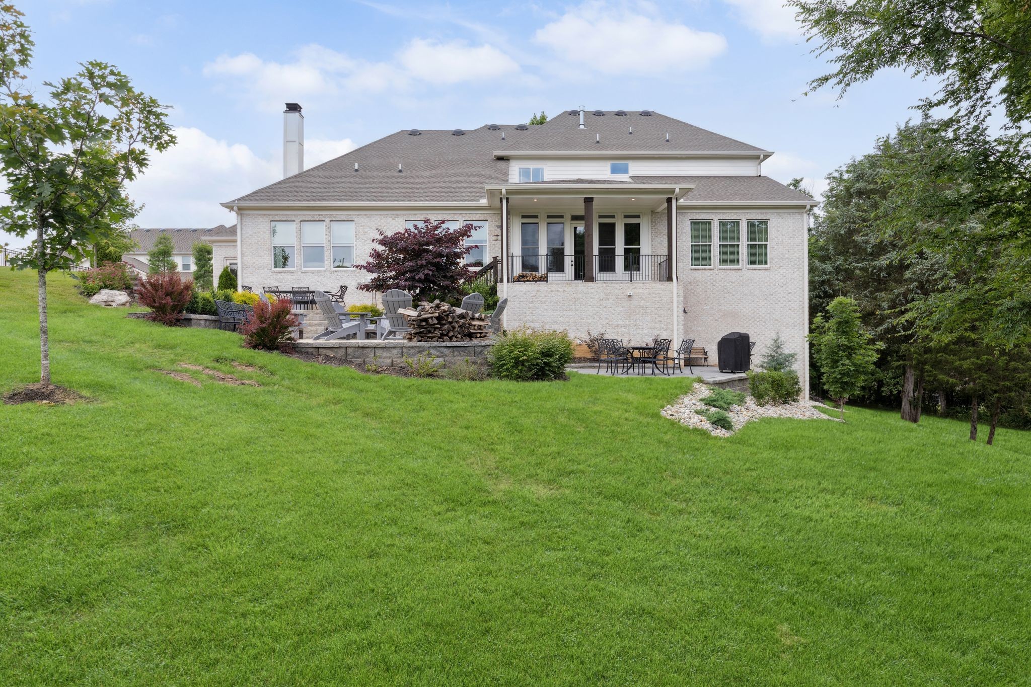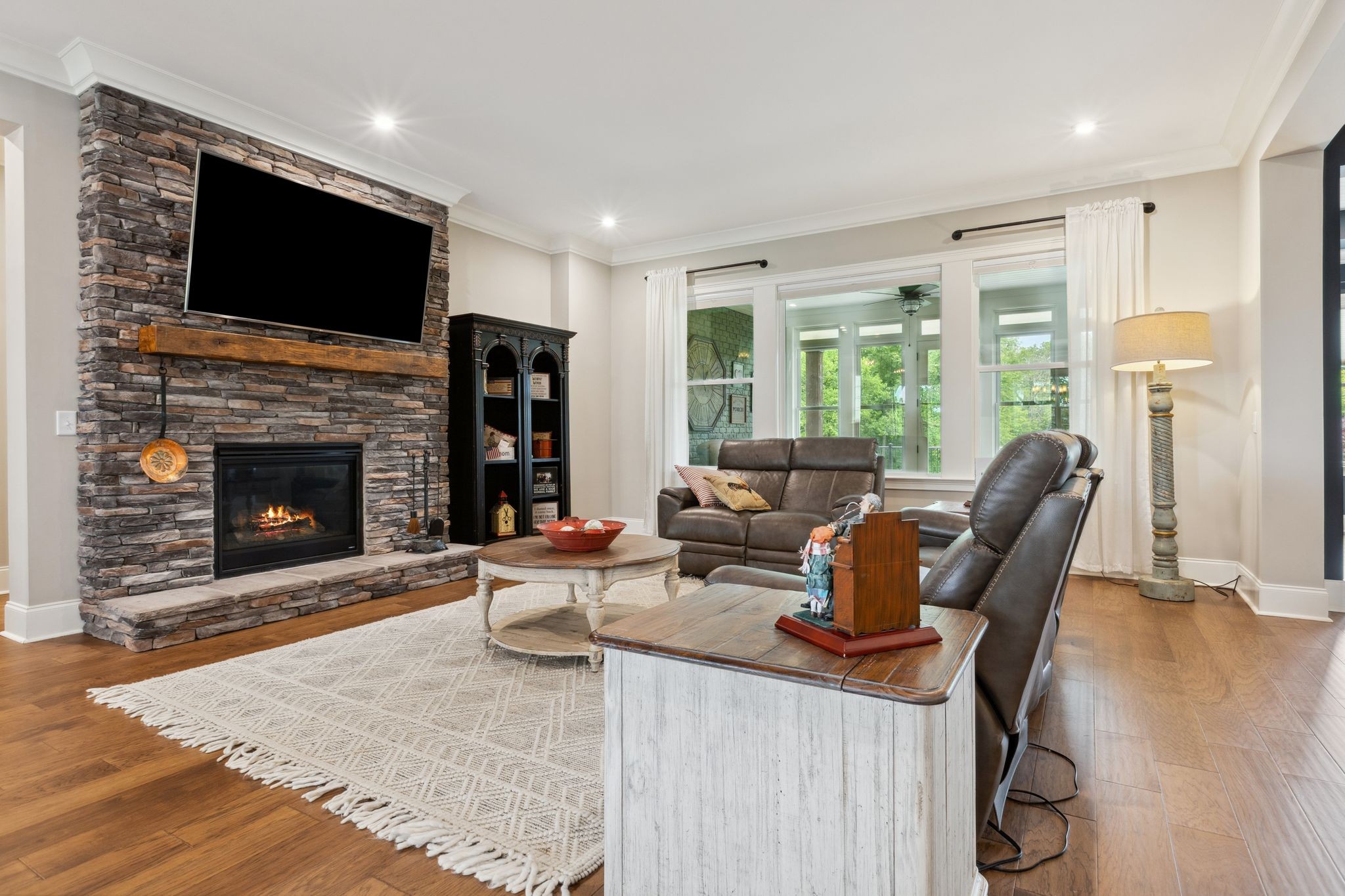 Designed with entertaining in mind, the stunning outdoor stone patio is ideal for morning sunrises and shaded, relaxing afternoons. Inside, you'll love the open-concept layout, including a cozy hearth room with a wood-burning fireplace and a gas fireplace in the main living area — perfect for creating a warm, inviting atmosphere year-round.