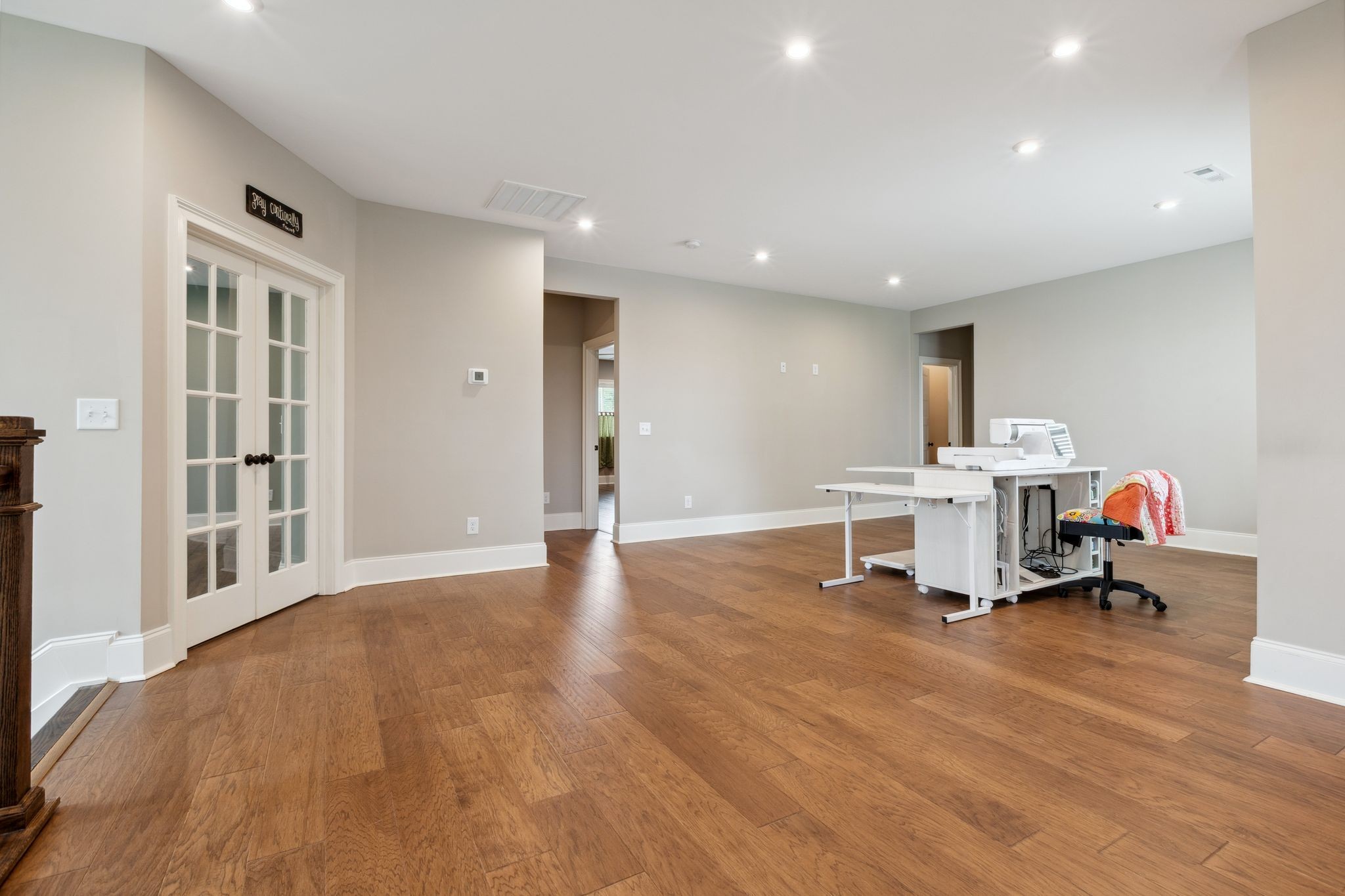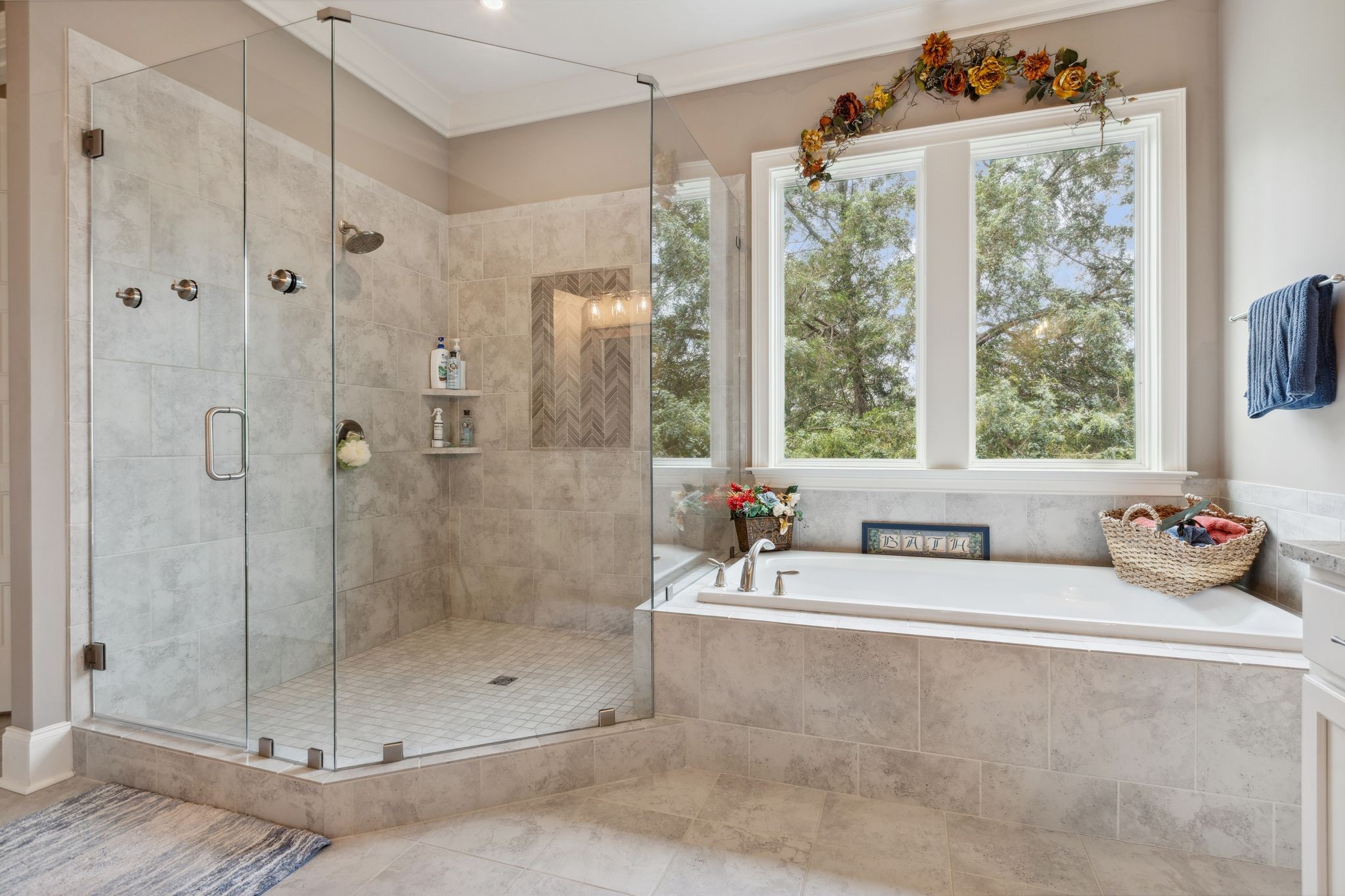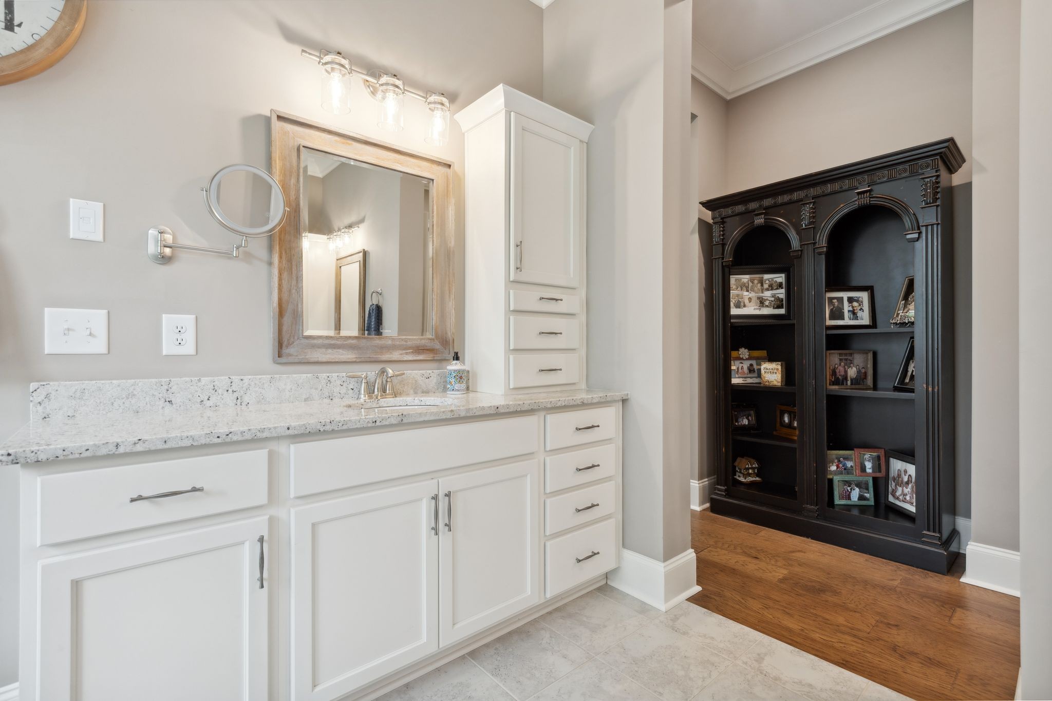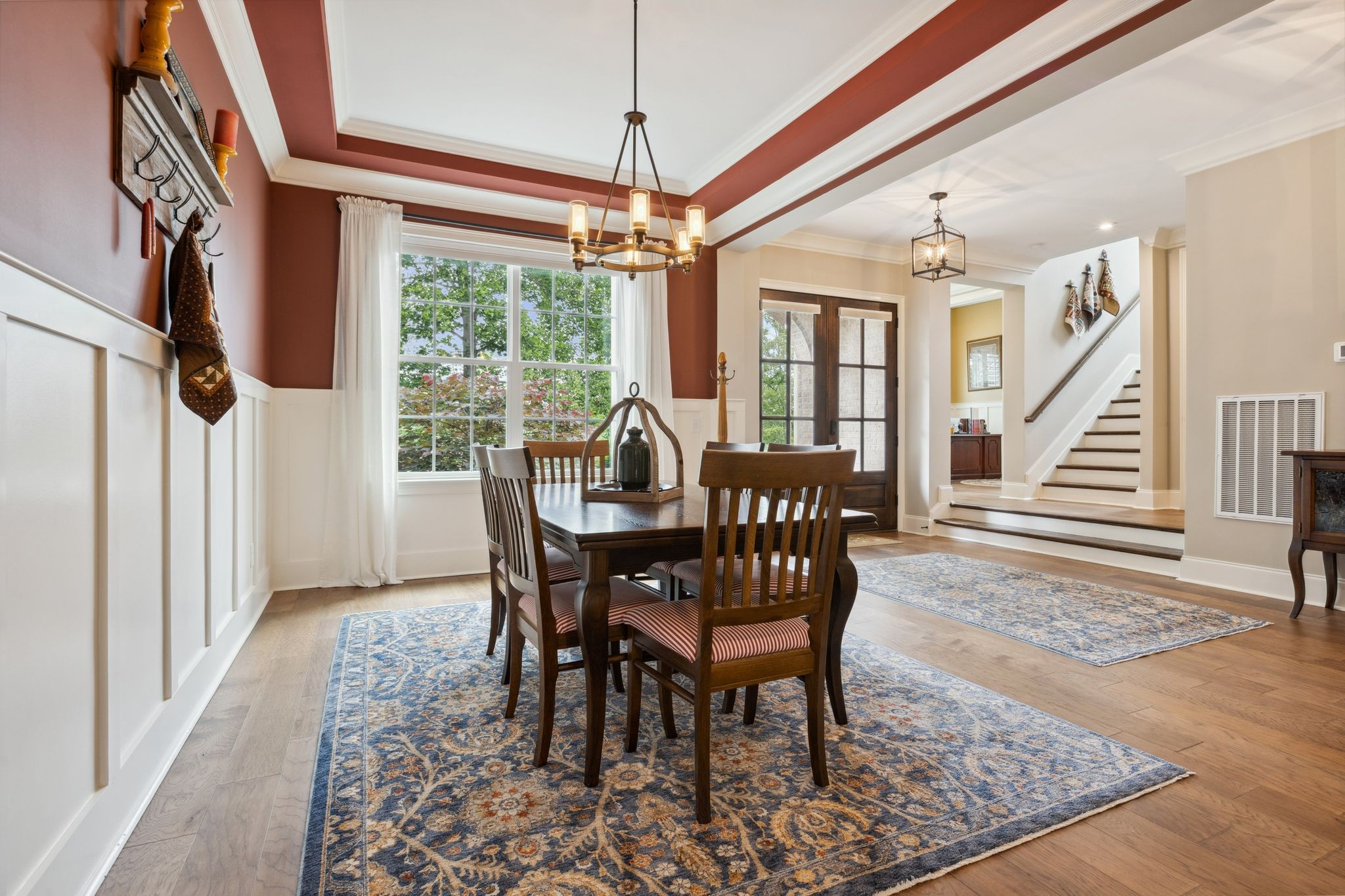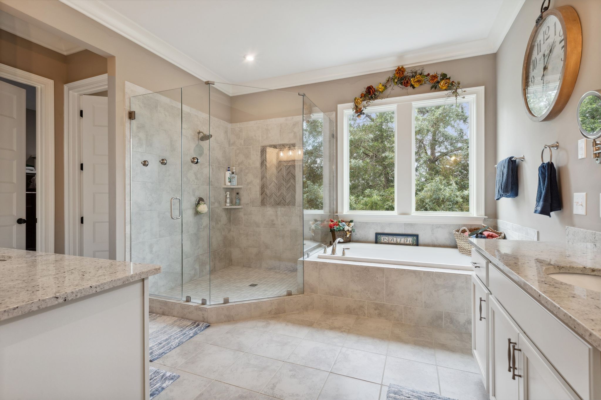 The main level offers true convenience and luxury with a spacious primary suite featuring an expansive en-suite bath and an oversized walk-in closet. A guest bedroom, private office, formal and casual dining areas, a gourmet kitchen with a large walk-in pantry, a laundry room, and a light-filled sunroom round out the main floor.