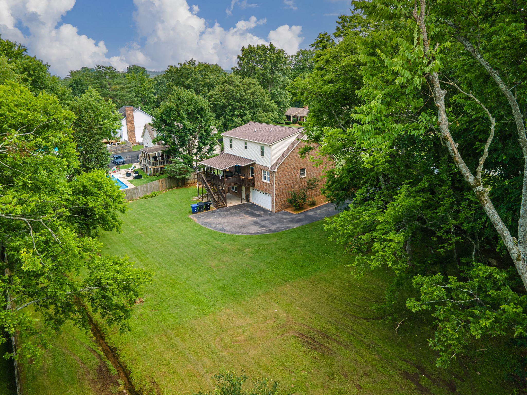 BASEMENT HOME ALERT! Are you looking for a home that you will feel confident in during storm season? Or maybe you need a walkout basement for your aging parent or adult children- this one is it! This Sunnyside home totals 4 bedrooms, 3.5 bathrooms, a formal dining, eat-in-kitchen, massive closets, & a covered back deck! Not to mention, it also sits on a double lot! "Park-like" setting is how it has been described by those who have visited. This home is large enough to grow, expand, host, & live out all of life's big moments. While it currently does not have a pool, there is plenty of space in the backyard to put one in should you choose. The Owner's Suite is on the main level with two large closets & adjoining laundry area. The upstairs has two very large bedrooms each with their own walkout attic spaces that could be finished out for extra living space should you desire. In between those bedrooms is a large full bathroom with massive linen closet & another storage closet in the hall. The finished basement space currently being utilized as a "fridge room" is plumbed for & once was a kitchenette. The bedroom area is large enough to have a secondary living space & hosts the 2nd gas fireplace with built in bookshelves. The garage is a double garage once again providing tons of storage & easily fits a standard car, lawn mower, & more fridges & freezers. It totals another 600+ sq ft of unfinished space not accounted for in the listing description. Home was built in 1993- so yes, some of the cosmetic features do feel like they popped straight out of an episode of Boy Meets World. However, 90's vibes are back & should that not be your thing, you could always swap things up & update as you see fit! What's not from the 90's is the roof! That baby is brand spanking new- May 2025! The shutters & 4 light fixtures too! The water heater is 2 years old, dishwasher 2 years old, some deck boards replaced approximately 2 years ago as well. Come see it for yourself today!