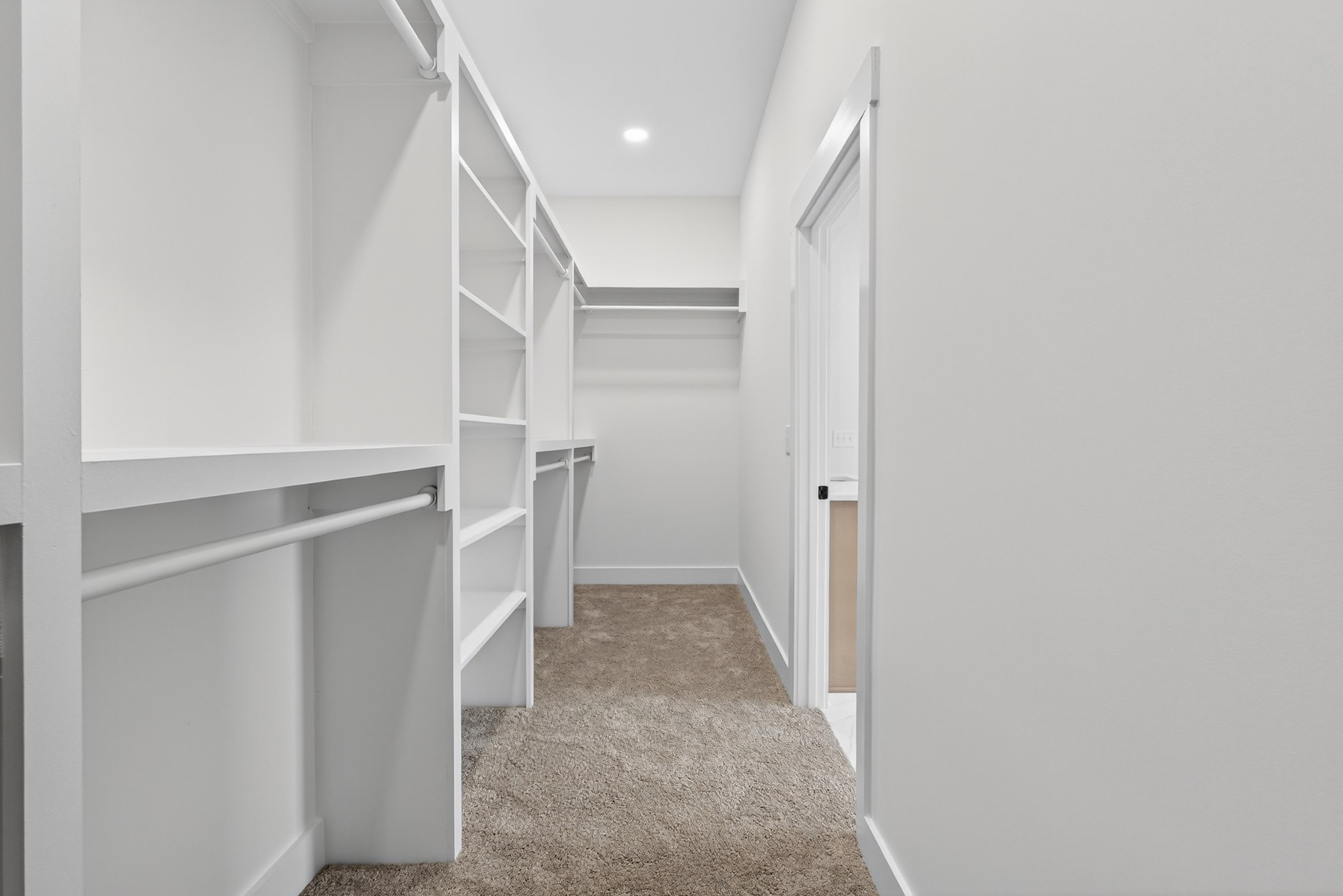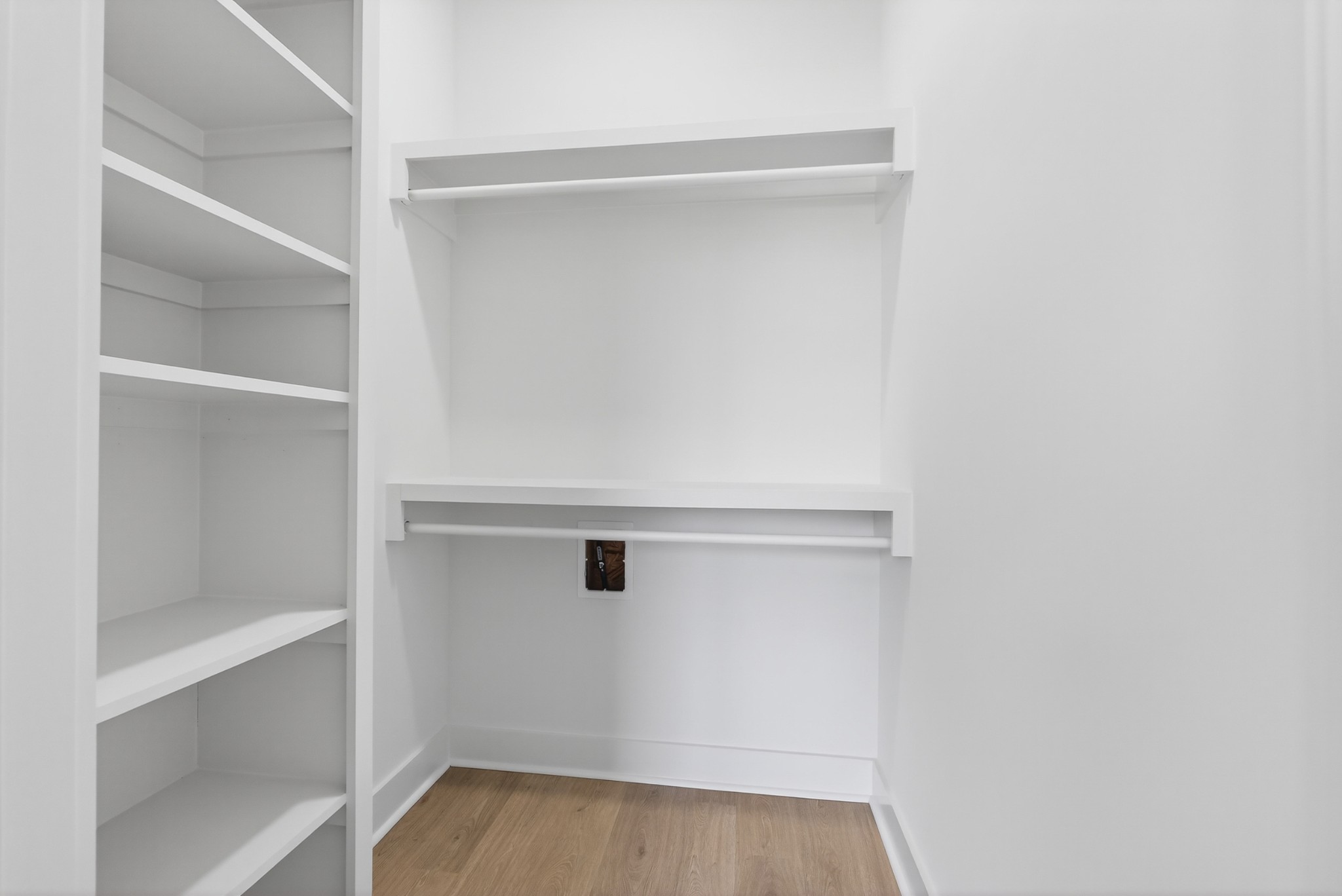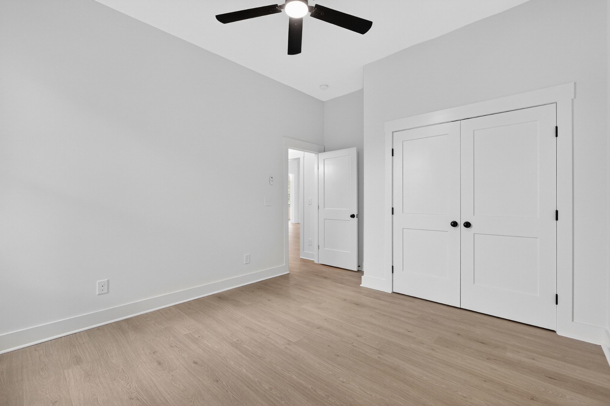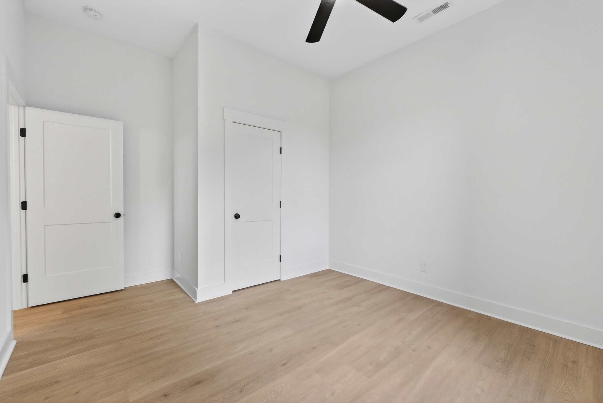 The heart of the home? The dream-worthy primary bathroom—a true spa retreat. Enjoy a freestanding soaking tub framed by a large frosted window, a huge walk-in shower with dual rainfall heads and marble-look tile, and dual vanities with soft-close cabinetry, quartz countertops, and matte black fixtures. Gorgeous oversized tile floors, warm honey-toned wood finishes, and luxe lighting elevate the space with timeless sophistication.