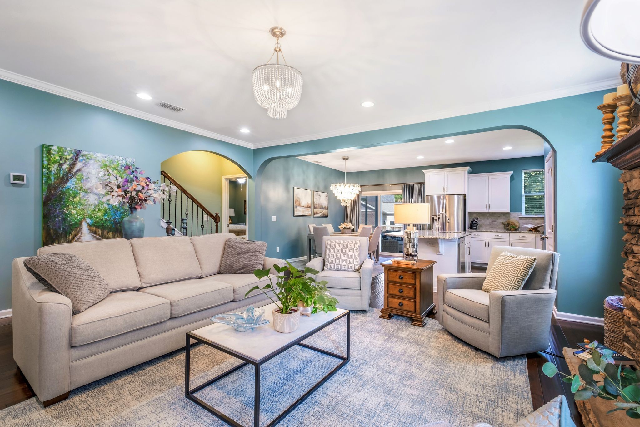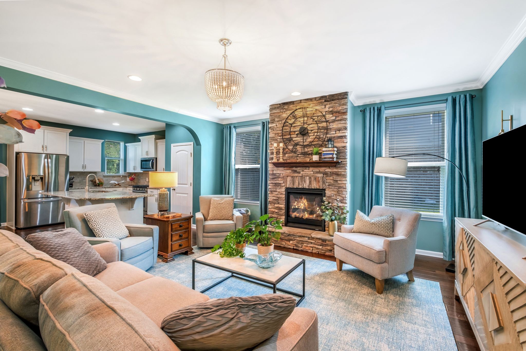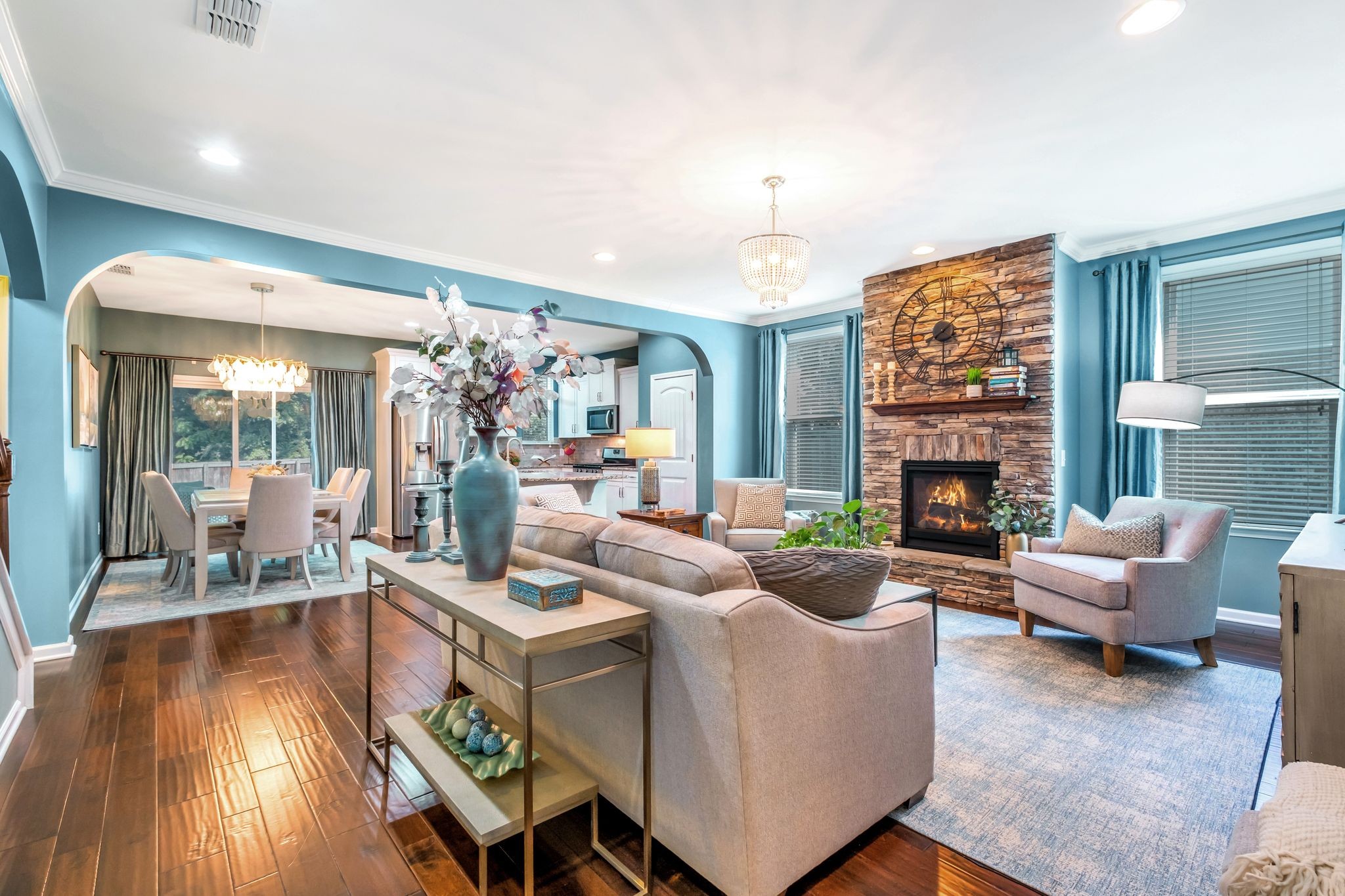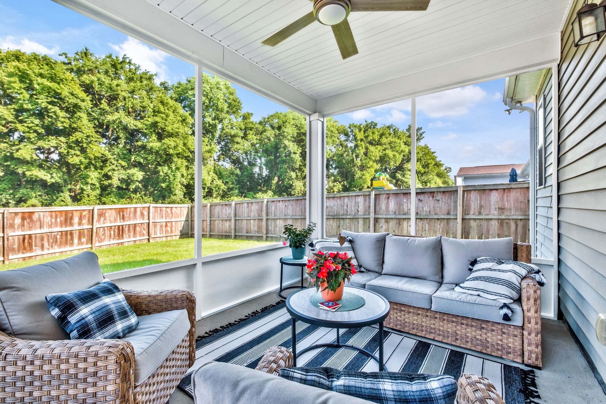 REDUCED! This Elegant Providence Landing Beauty Has It All! From the moment you arrive, this home impresses with its sophisticated design and thoughtful upgrades throughout. It features an open floor plan with 3 spacious bedrooms on the main level, a large bonus room upstairs, and a walk-in attic with generous storage—plus the option to create a 4th bedroom from the finished storage room. The upscale kitchen showcases an extended island, stainless steel appliances, gas range, and stylish backsplash. Architectural details like arched openings, custom drapes, and a stunning stacked stone fireplace add warmth and refined character. The primary suite offers his-and-her closets and a serene retreat. Enjoy the screened in patio overlooking a fully fenced backyard with extended pad, ideal for entertaining or relaxing. The finished garage includes epoxy floors, a mud sink, and a storm shelter, while a tankless water heater and water softener system adds everyday comfort. Located minutes from Providence shopping and I-40, and zoned for top-rated Wilson County schools—this home truly checks every box!