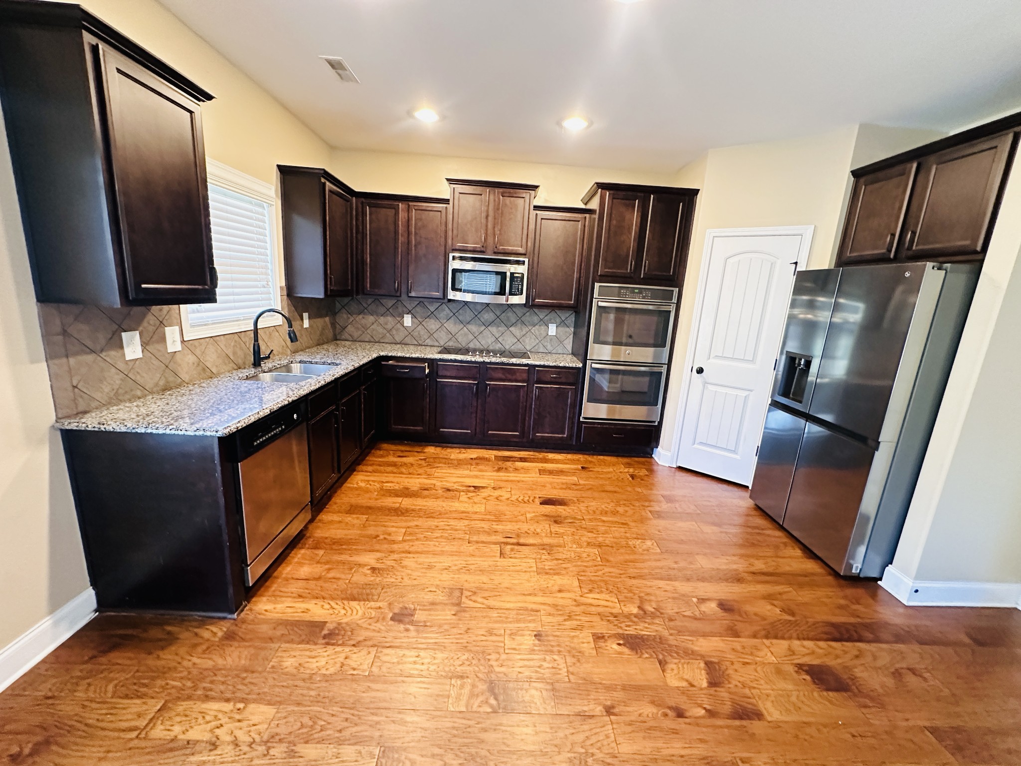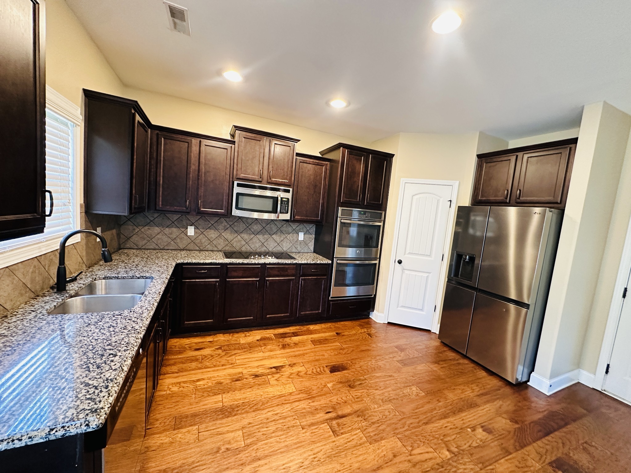 - AppliancesDouble Oven, Electric Oven, Cooktop, Dishwasher, Disposal, Microwave, Refrigerator