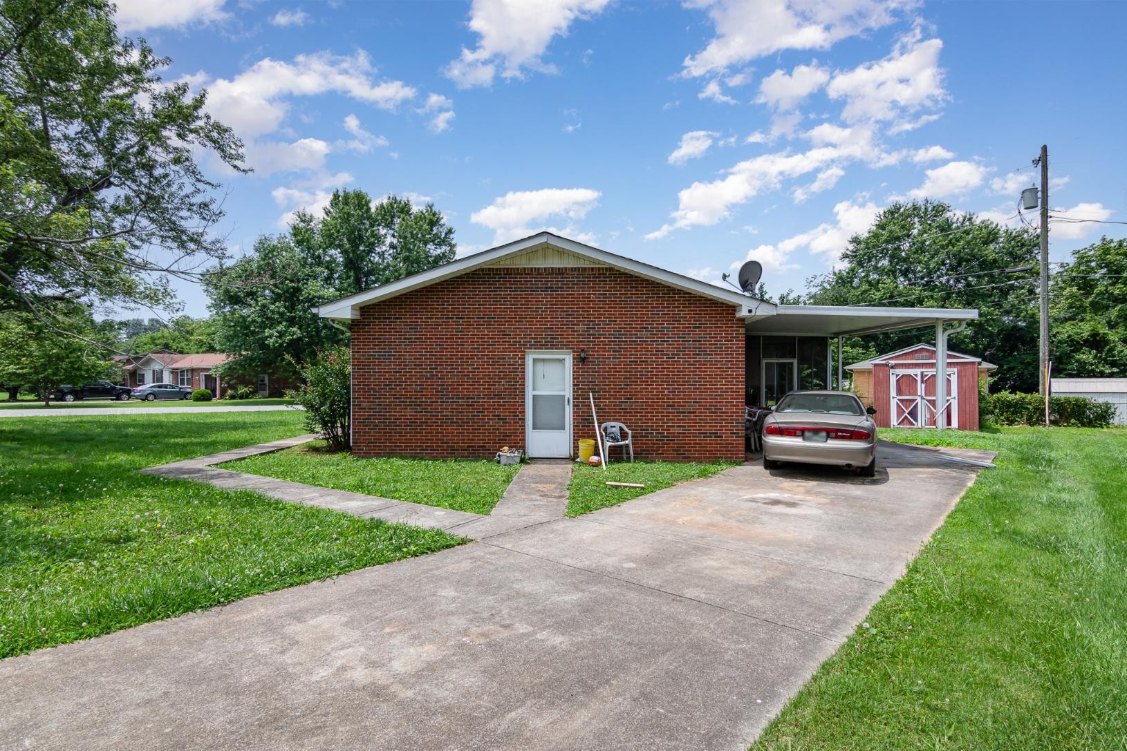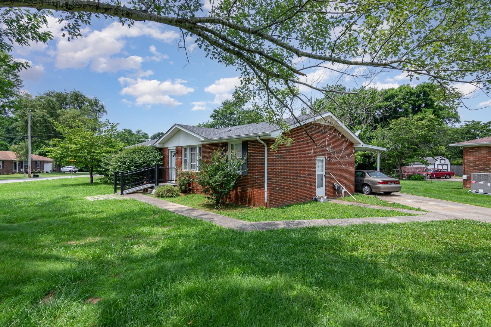 Move-in ready and full of charm, this all-brick home sits on a desirable corner lot and offers a comfortable, updated living space close to schools and shopping. Inside, you'll find beautiful hardwood floors, new plumbing, and a recently remodeled kitchen with new vinyl flooring for easy maintenance and a fresh, modern look. The bathroom has been remodeled as well, featuring a convenient stand-in shower. Elegant crown molding adds a touch of sophistication throughout the home.