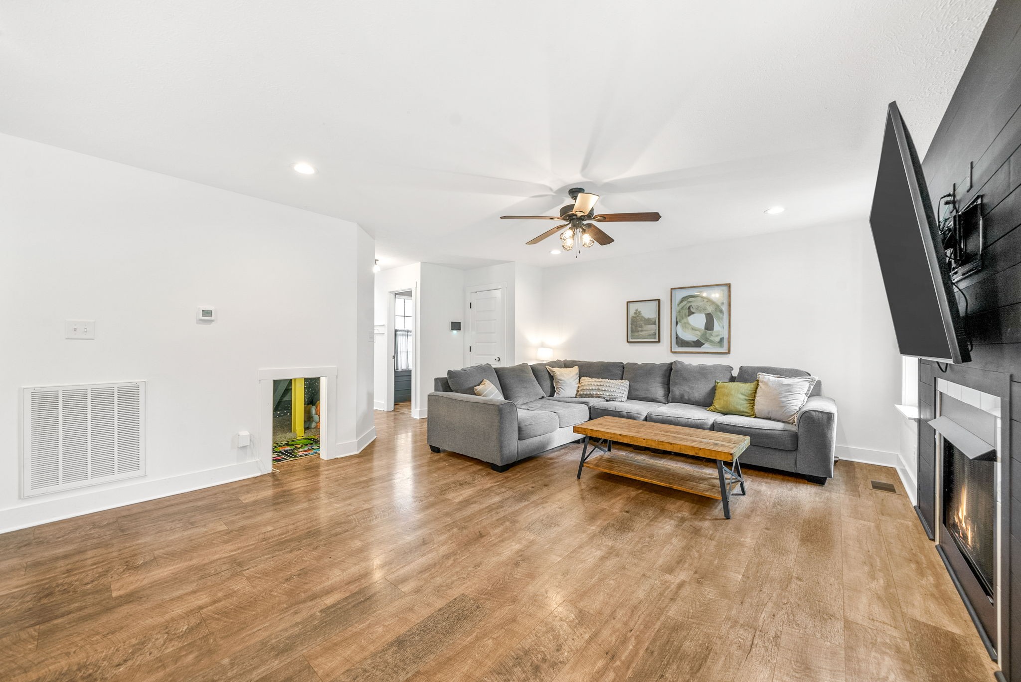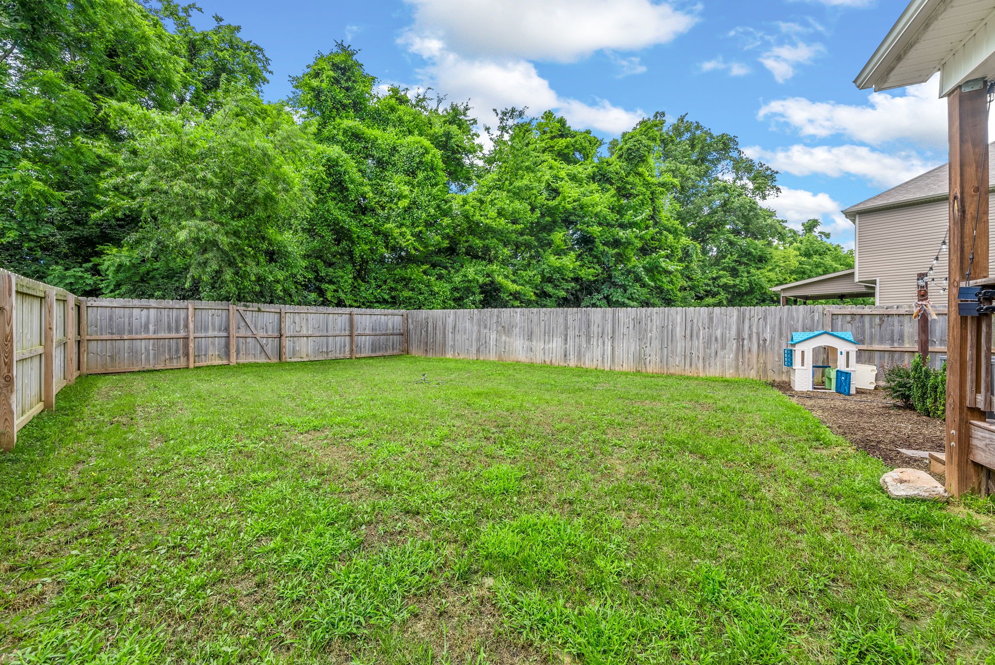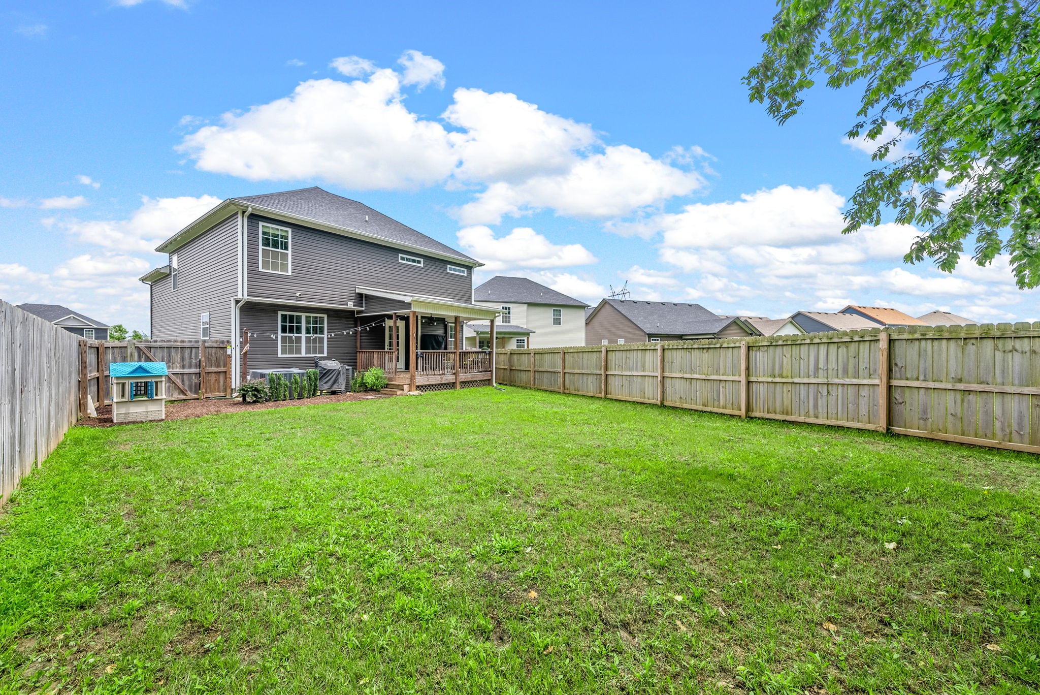 Welcome to this beautifully maintained 4-bedroom, 2.5-bath home located in a peaceful cul-de-sac with no backyard neighbors! Enjoy the privacy of a fully fenced backyard with a covered porch, perfect for relaxing or entertaining year-round. The open floor plan features spacious living areas and a large kitchen island, ideal for gatherings and family meals. The cozy living room with fireplace creates a warm, inviting space for relaxing. Upstairs, you'll find generously sized bedrooms and ample storage throughout. Conveniently located just minutes from shopping, dining, and Ft. Campbell, this home offers both comfort and accessibility. Don’t miss out on this move-in ready gem!