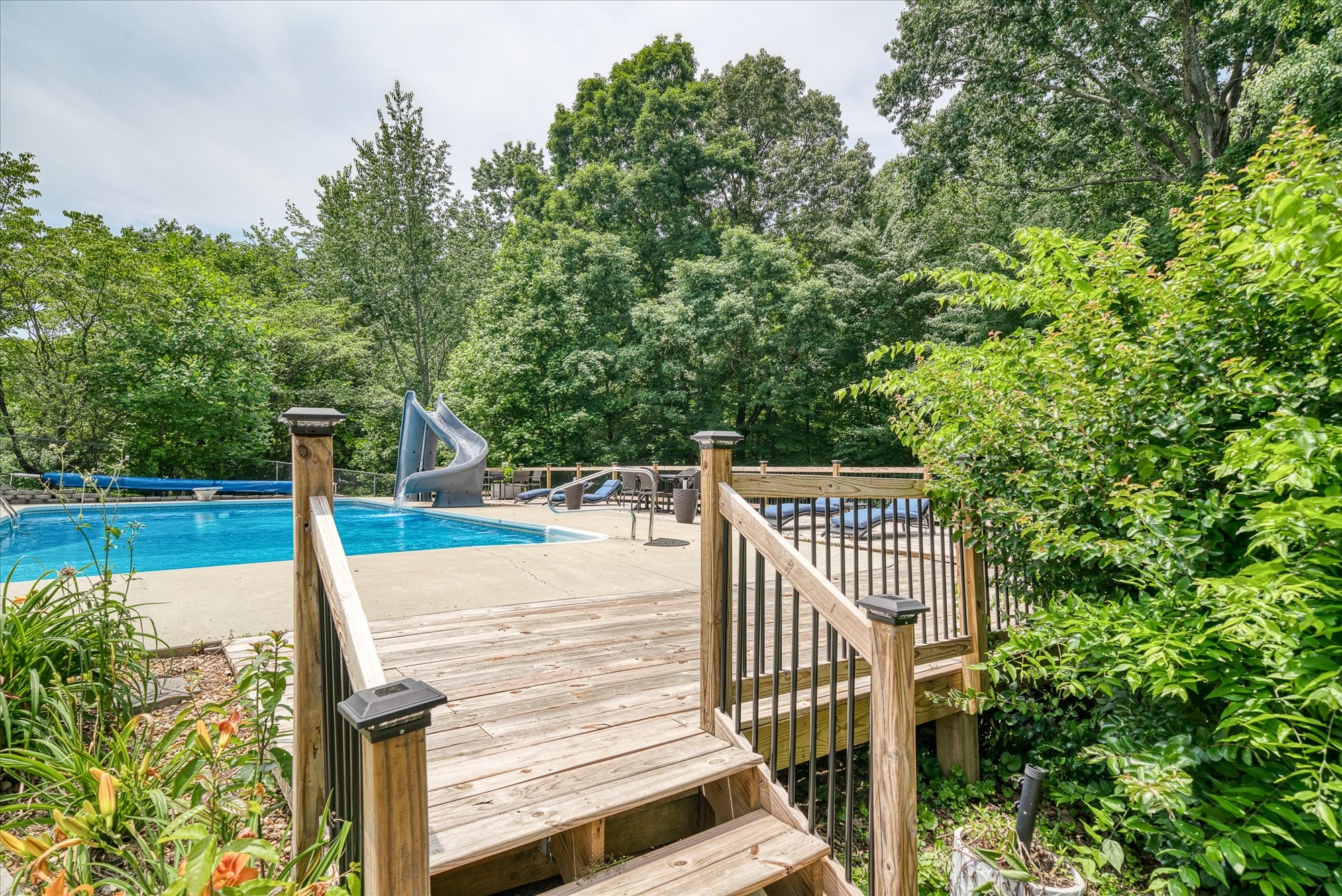 Looking for a home where comfort, fun, and functionality come together effortlessly? This spacious 3-bed, 3-bath retreat is designed for both everyday living and unforgettable gatherings. Set on a private lot with mature trees, this home offers peace and privacy just minutes from town & the new Home Depot and Target! Inside, you'll find generously sized rooms, an open-concept living area, & a full basement that's perfect for a game room, gym, or guest space. Storage is never an issue with ample closets and utility spaces throughout. Step out back and let the fun begin—your backyard oasis features a shimmering pool complete with a water slide, perfect for cooling off or entertaining all summer long. Whether you're hosting weekend BBQs or unwinding in the quiet after a long day, this property is ready to match your lifestyle. New deck, pool equipment, HVAC, triple-pane windows, dishwasher, refrigerator, light fixtures, faux wood blinds, smart switches, and patio in the last 1-3 years!