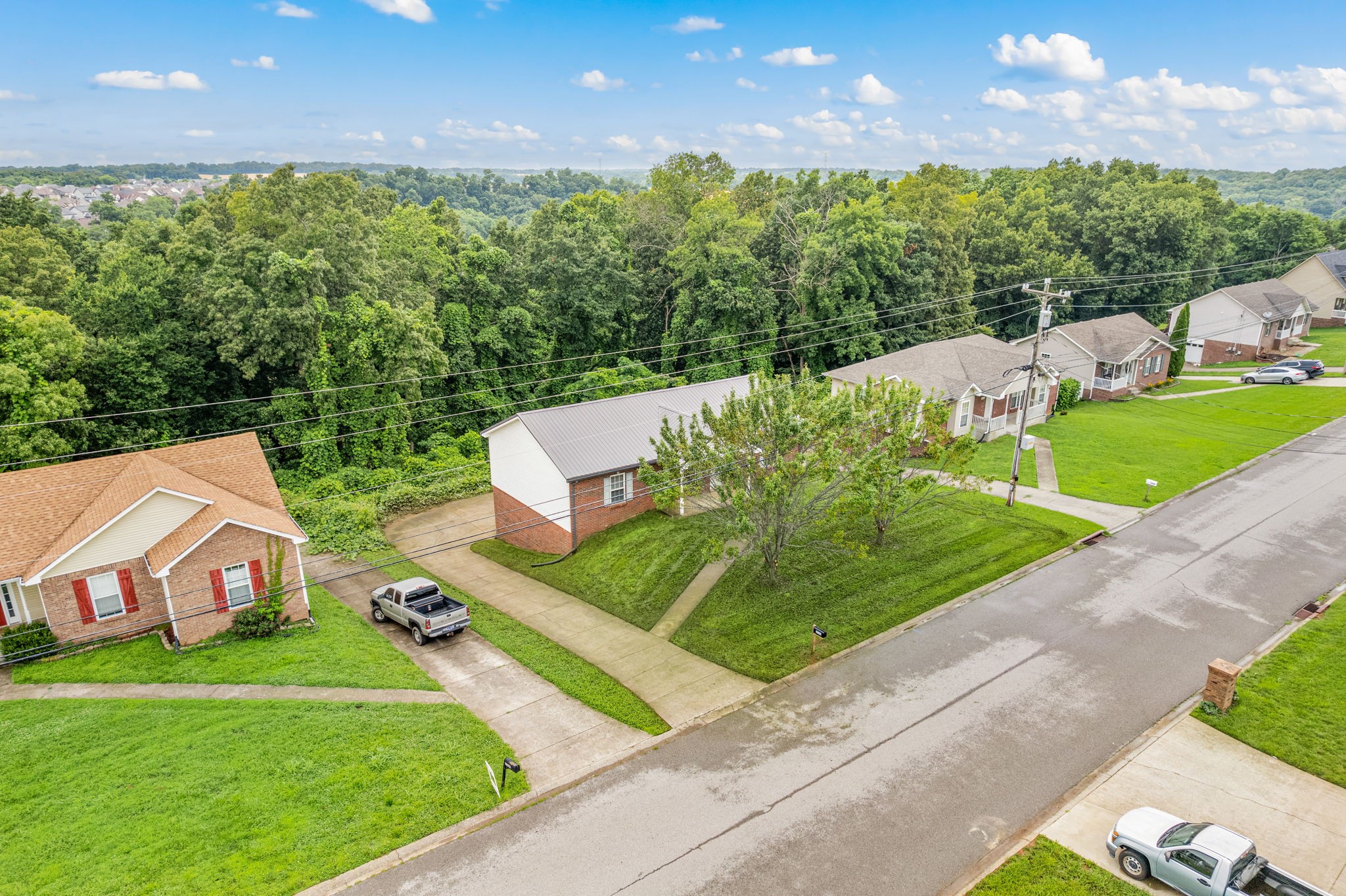 Charming Ranch with Huge Unfinished Basement, Split Bedroom Plan & No Backyard Neighbors! Welcome home to this beautifully maintained ranch-style home featuring a smart split-bedroom layout and peaceful privacy with no backyard neighbors. Enjoy brand new carpet in the bedrooms, gleaming hardwood floors in the living room, and stylish ceramic tile in the wet areas. The spacious kitchen offers stainless steel appliances, ample cabinetry, and a generous eat-in dining area perfect for both daily living and entertaining. Cozy up in the living room with its inviting gas fireplace and hardwood flooring. The oversized primary suite boasts its own private bath and is tucked away from the secondary bedrooms for added privacy. The 2nd and 3rd bedrooms each feature walk-in closets and are located on the opposite side of the home. You’ll also love the separate utility room with additional storage space, plus multiple closets throughout the home. Downstairs, the giant unfinished basement offers endless possibilities with high ceilings, a 2-car garage, a large storage closet, and built-in shelving. Exterior features include partial brick and vinyl siding, a durable metal roof, and a spacious 12' x 14' back deck that is ideal for outdoor entertaining. Conveniently located just minutes from Fort Campbell and I-24, this home combines comfort, space, and accessibility. Don’t miss this one!