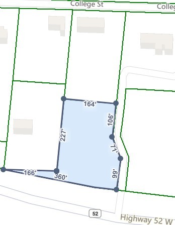 Corrected address: 1171 Highway 52 W (formerly 1171 College Street), Tax ID 035 015.01. For GPS, enter 1171 College Street. Property entrance is located just to the right of the For Sale sign and adjacent to a private road. Driveway will connect directly to Hwy 52. Seller concessions available.