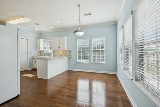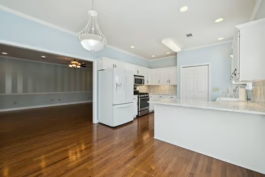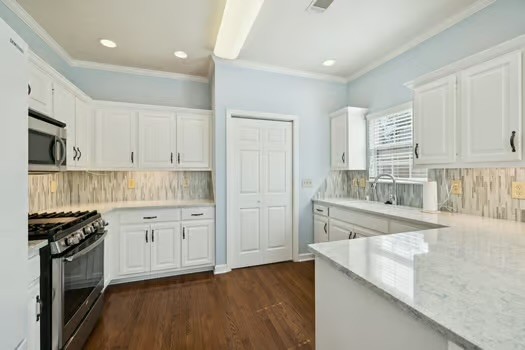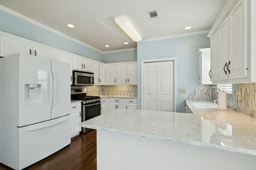 The main level also boasts a large living room with gleaming hardwood floors and a light-filled Florida room with gorgeous tile and an abundance of windows — perfect for relaxing or entertaining. The renovated kitchen is a chef’s dream with quartz countertops, a gas stove, new stainless appliances, a stylish tile backsplash, and a pantry.